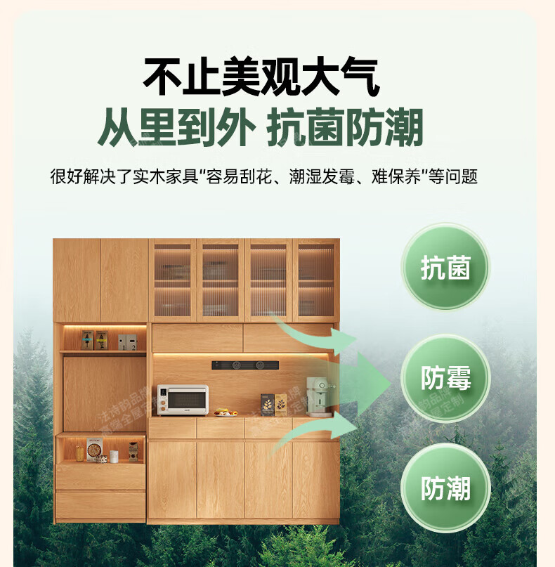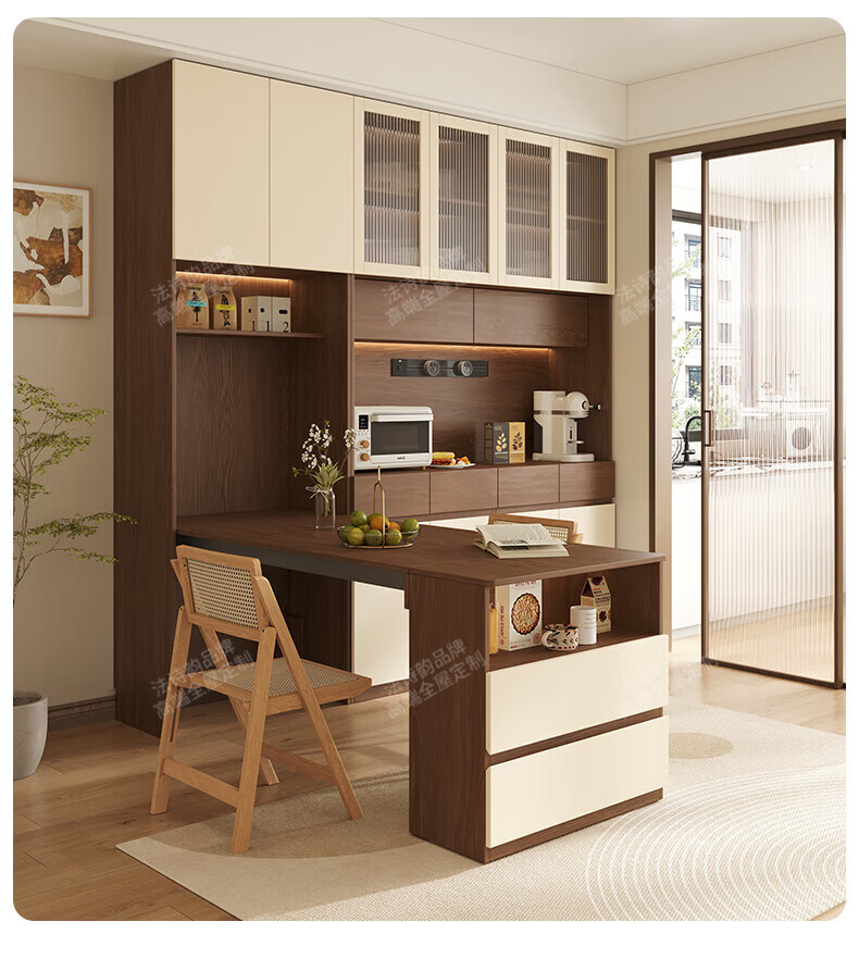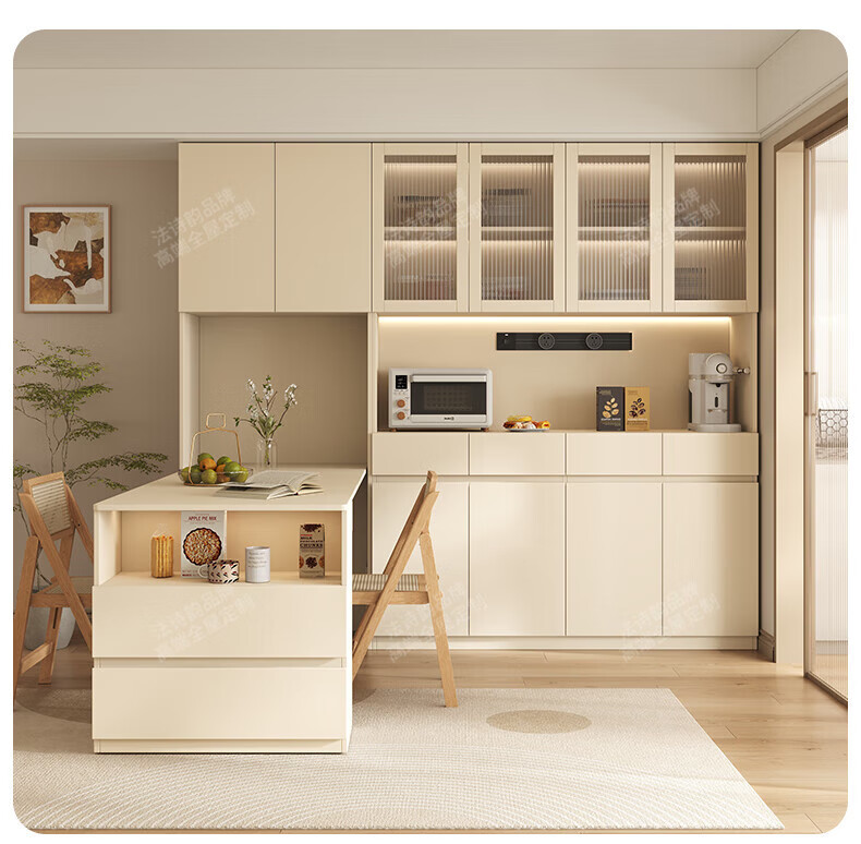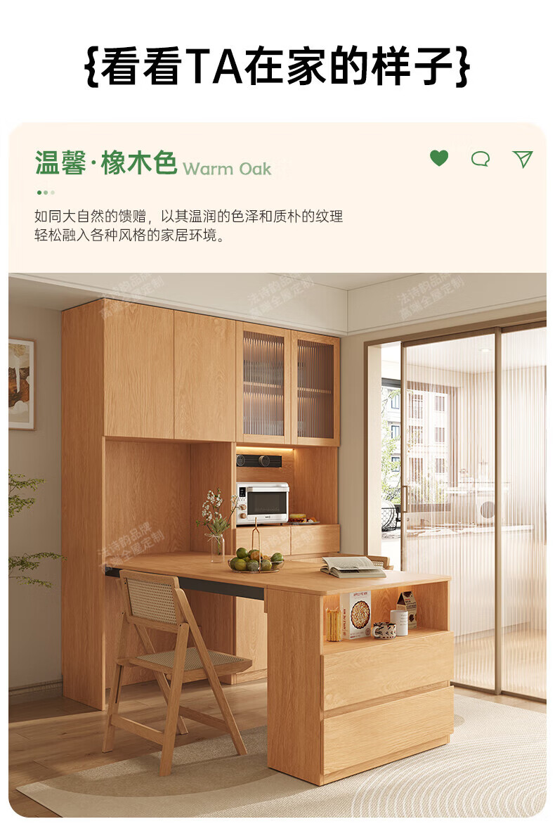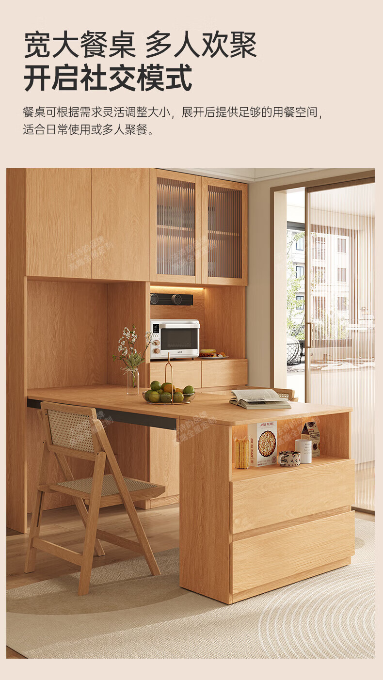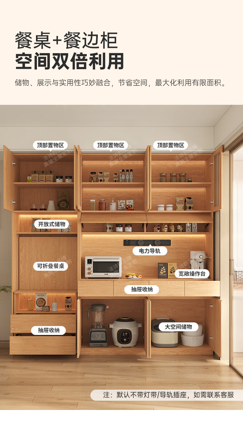 French poetry custom solid wood sideboard folding dining table integrated wall-to-top cabinet hidden oak glass bowl cabinet 1.6 long * 2.0 high (four-door sideboard) ENF maternal and child grade environmentally friendly antibacterial 18MM thickened oak