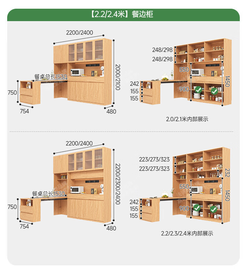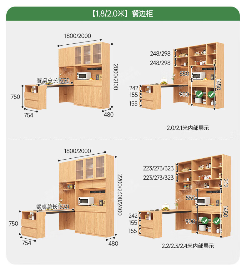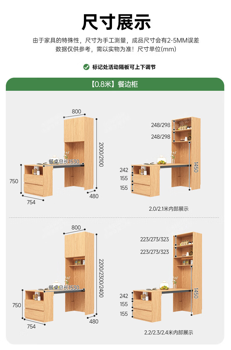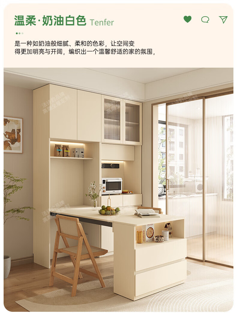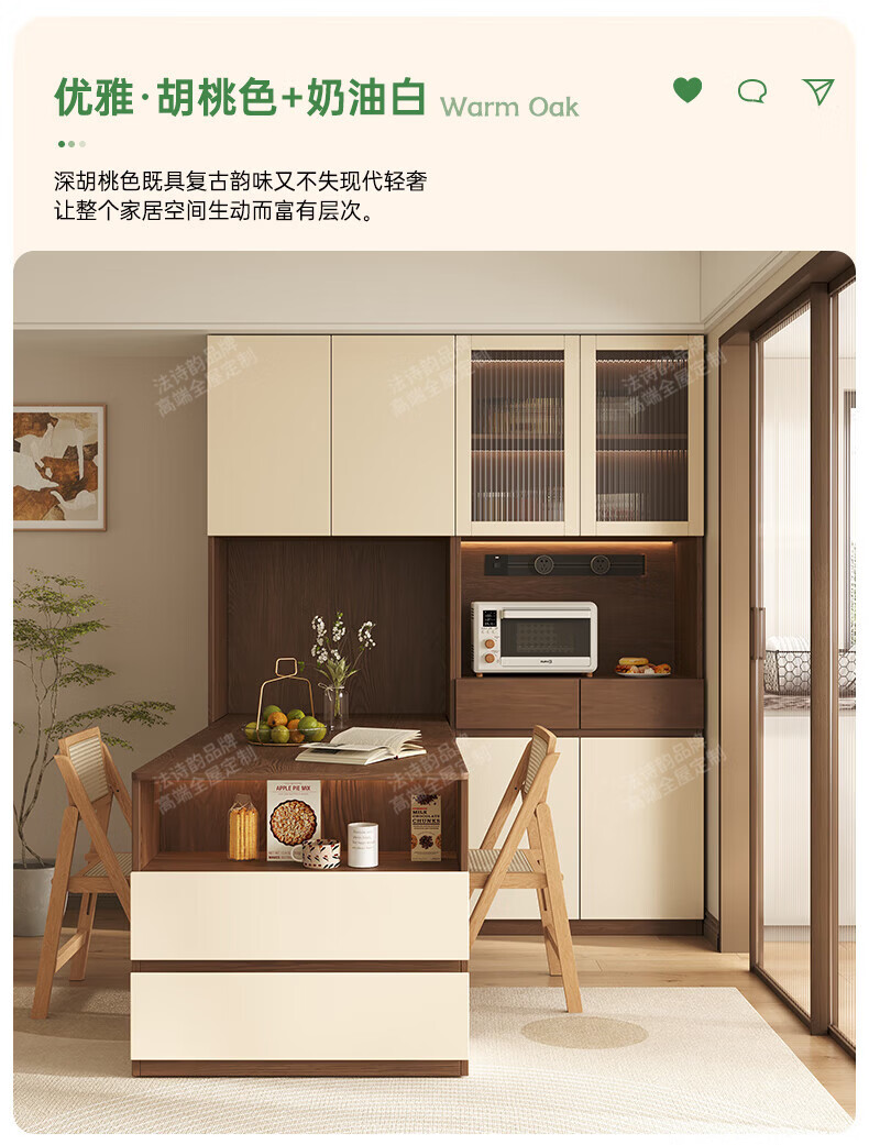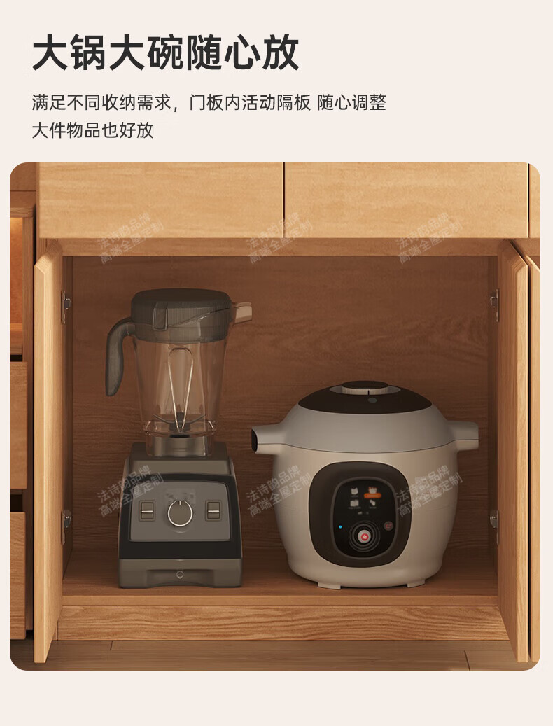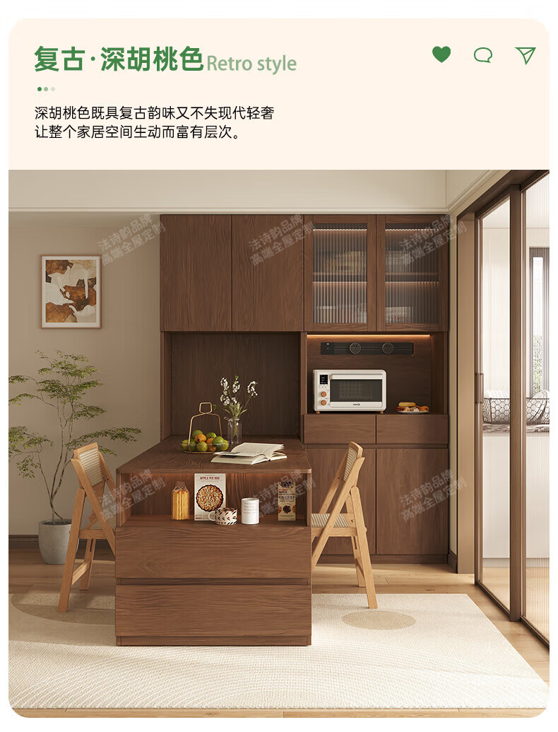 French poetry custom solid wood sideboard folding dining table integrated wall-to-top cabinet hidden oak glass bowl cabinet 1.6 long * 2.0 high (four-door sideboard) ENF maternal and child grade environmentally friendly antibacterial 18MM thickened oak