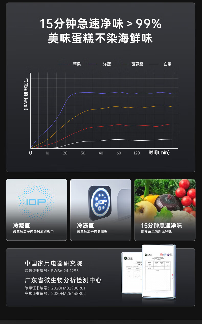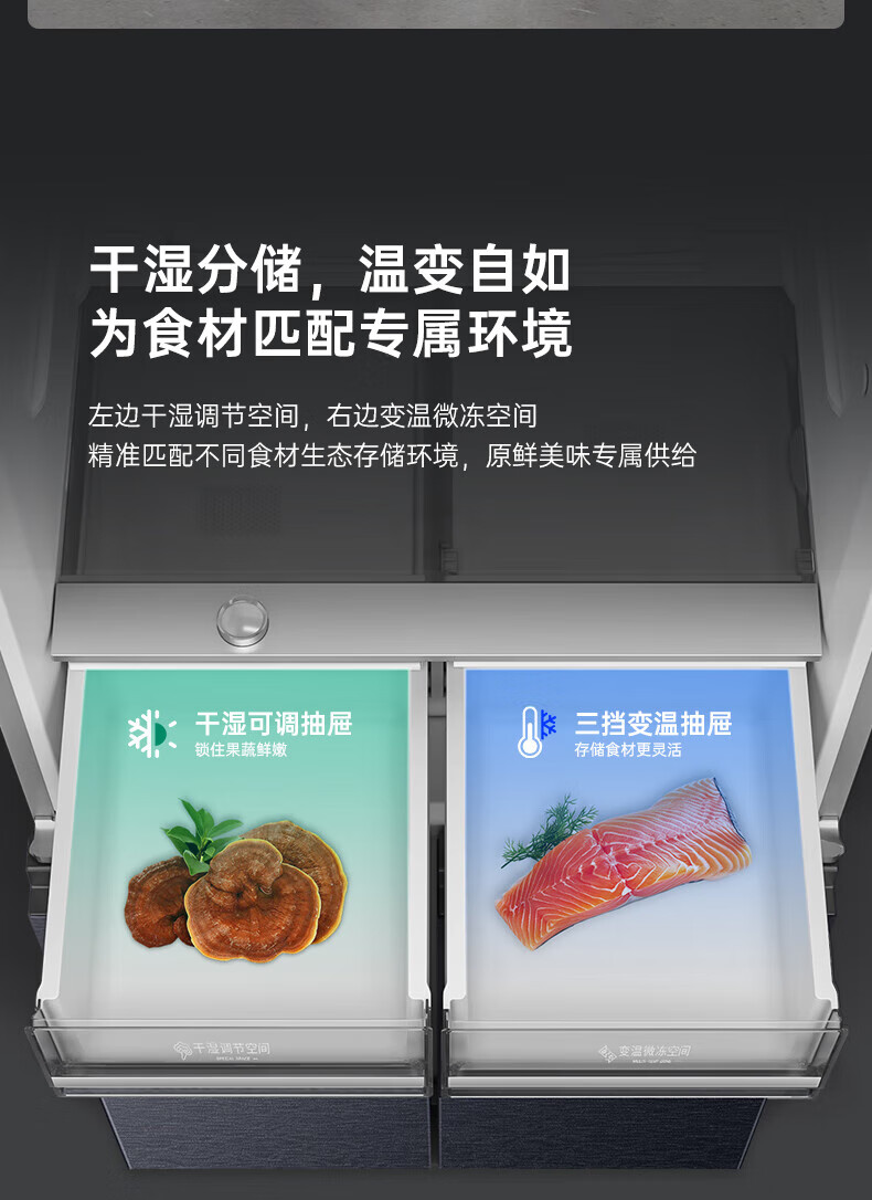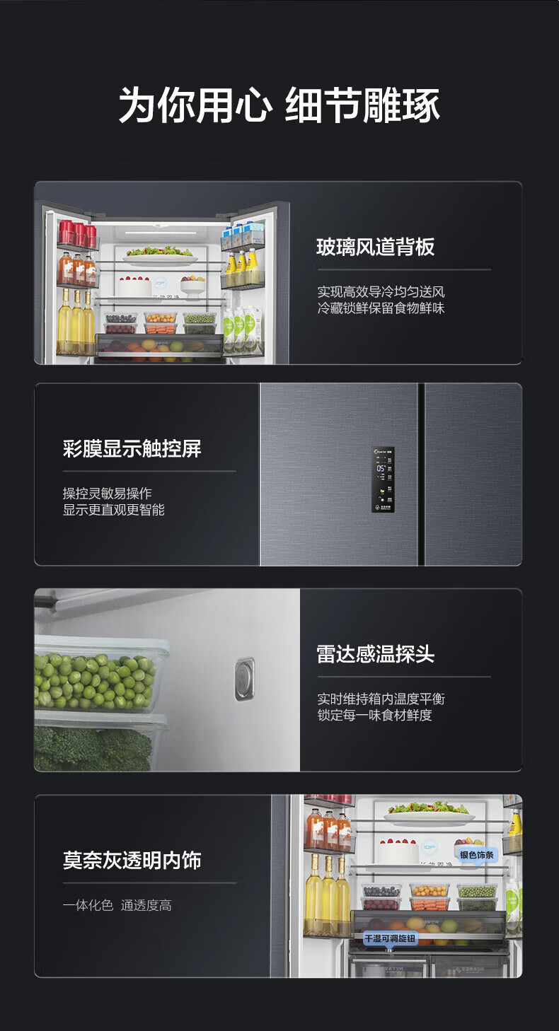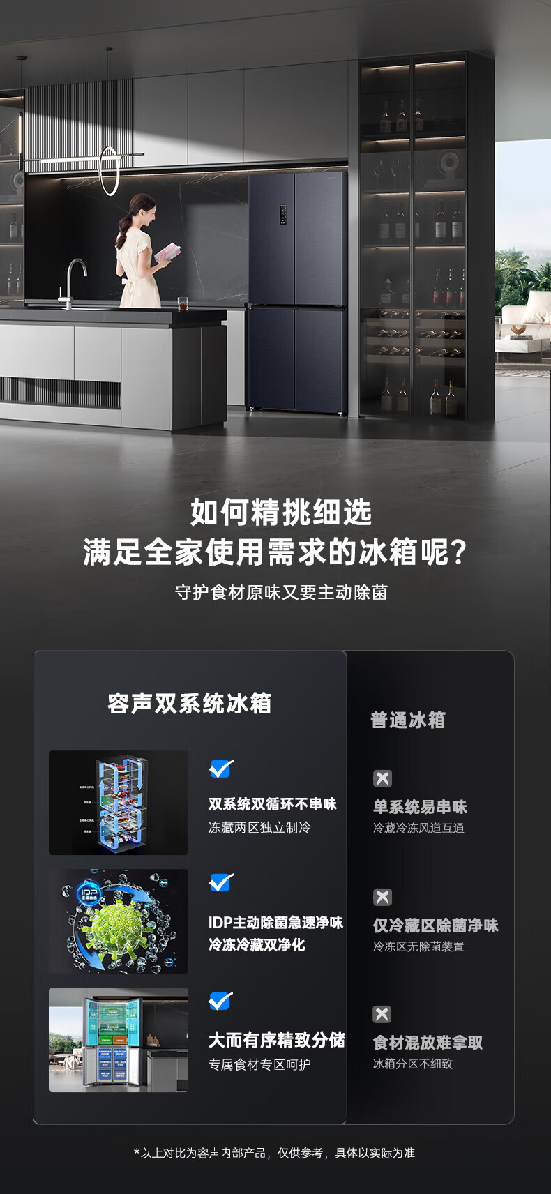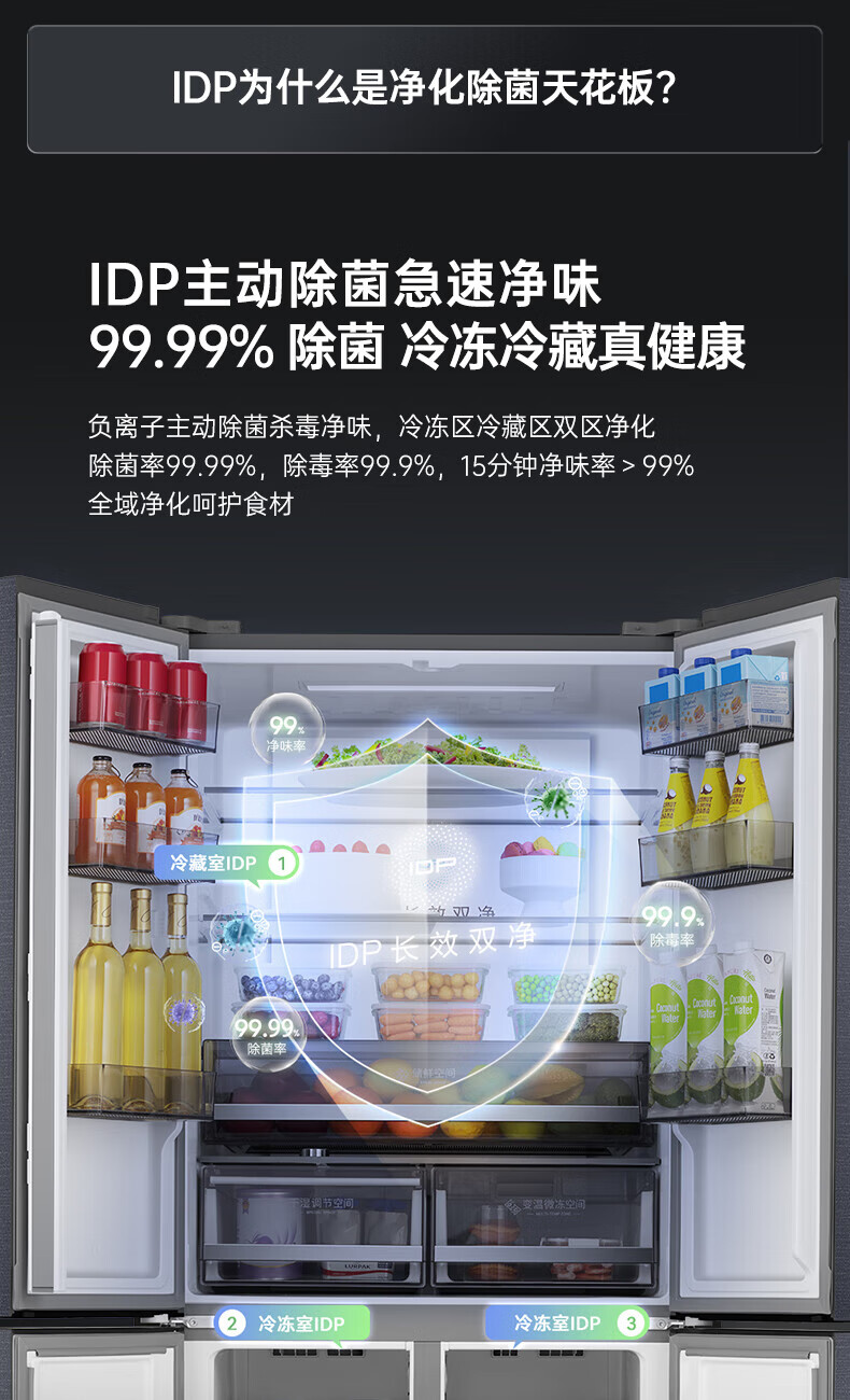 Rongsheng 516 liter double purifier dual system cross four-door refrigerator household first-class energy efficiency air-cooled frost-free large capacity BCD-516WD1FPA gray national subsidy 526 cross model IDP active sterilization and odor independent dual system