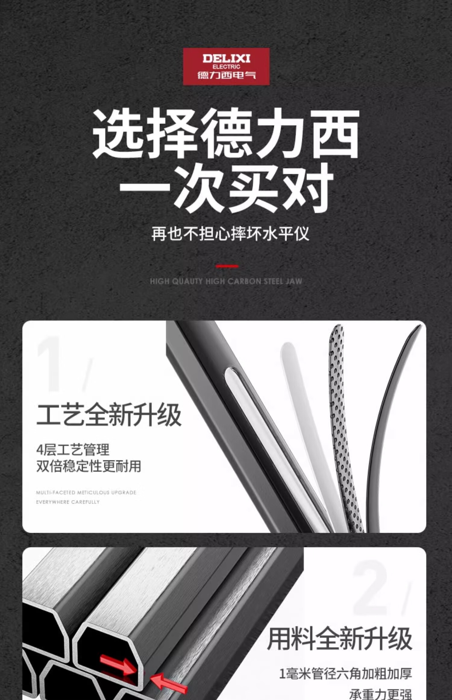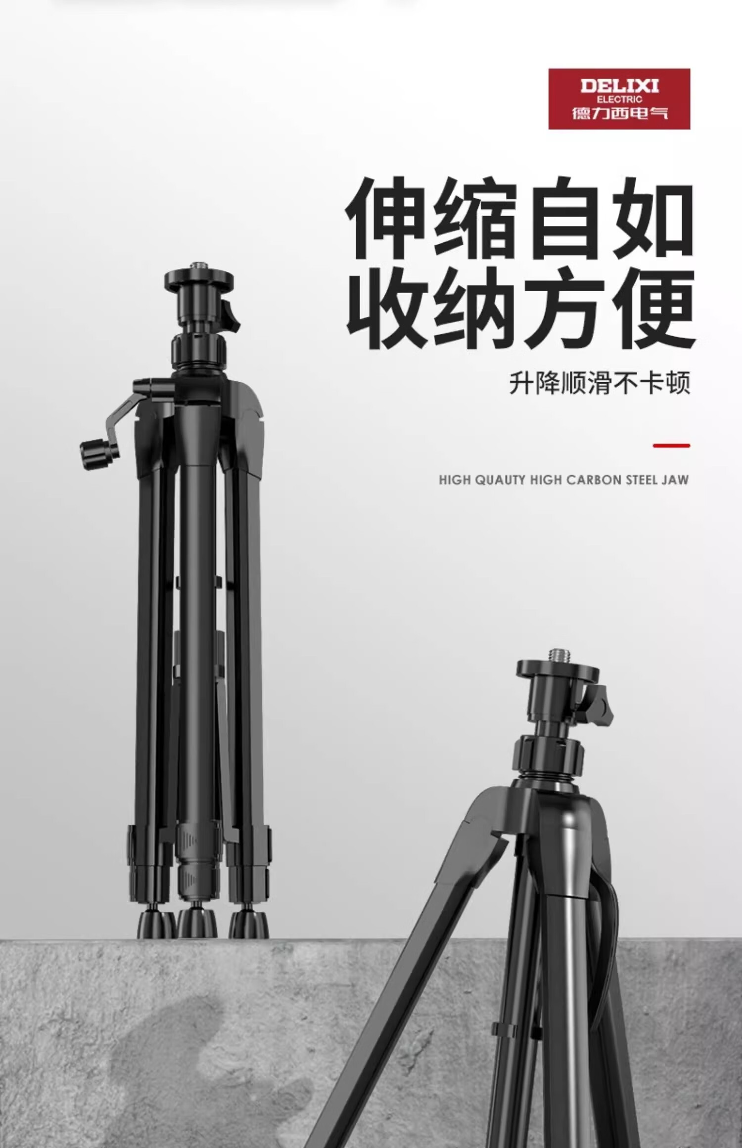 Delixi Electric infrared level meter bracket universal tripod telescopic lifting support rod upper wall clamp bracket upper beam clamp hanger thickened tripod 1.2m/minimum 45cm