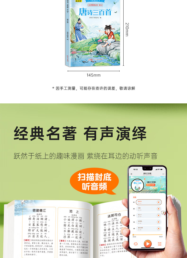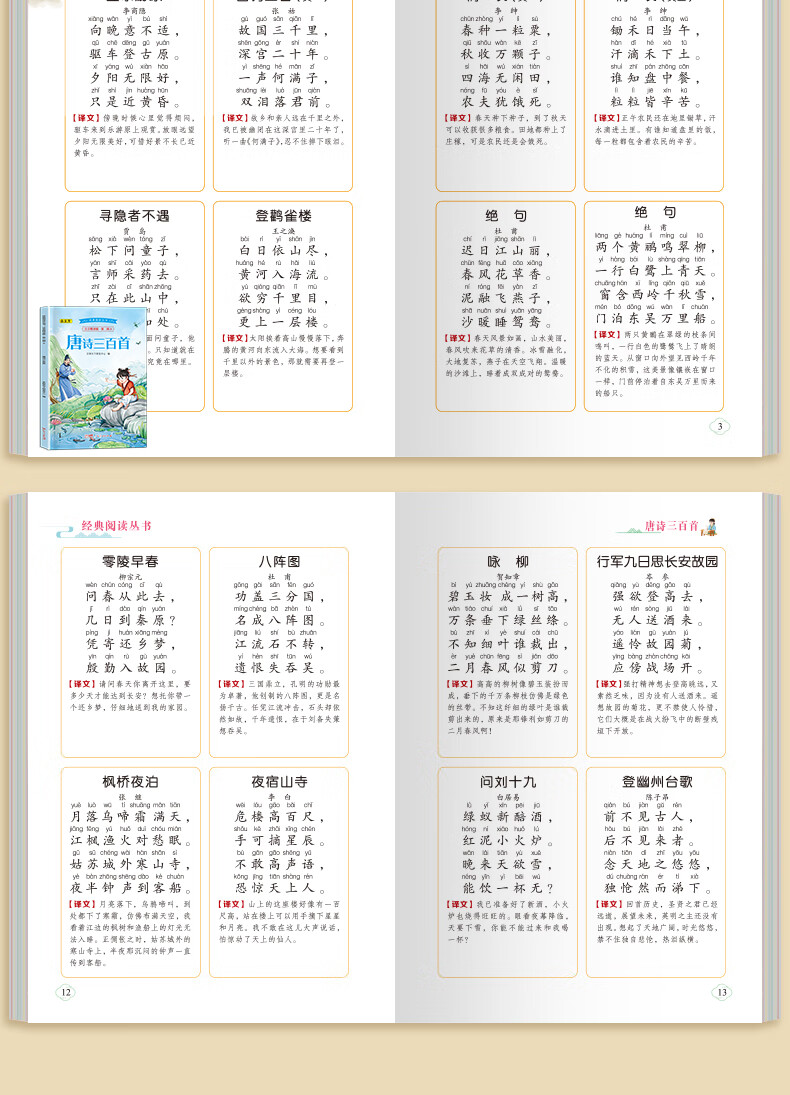 Dangdang genuine comic version of Shan Hai Jing primary school student version of the original work, a complete set of 6 volumes for 7-12 years old extracurricular reading phonetic phonetic pictures with pinyin color pictures, children's picture books that children can read, books for children, full version of teenagers Dou Banjiang, classic reading series phonetic intensive reading version. Second series. Three hundred Tang poems Three hundred Tang poems second series