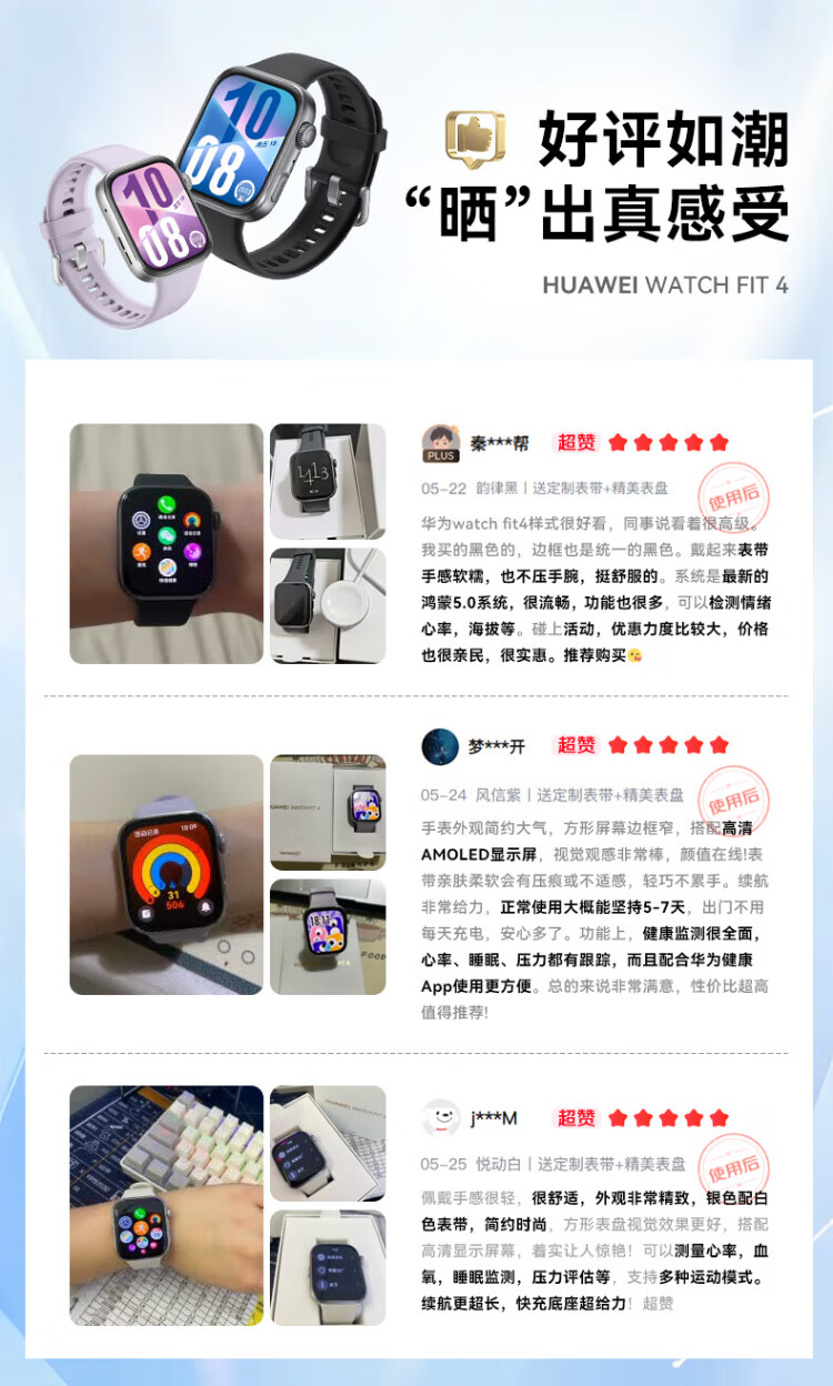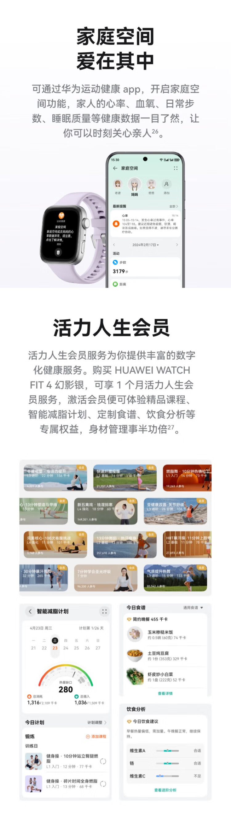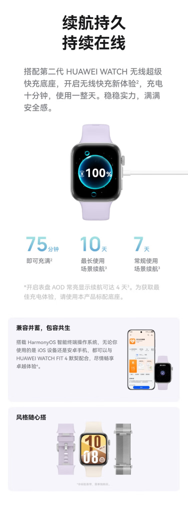 Huawei (HUAWEI) consultation enjoys discounts Huawei WATCH FIT 4 sports smart watch 100+ modes Bluetooth call atrial fibrillation premature beat reminder for men and women adults 3AX Smart Pro Yuedongbai丨Free customized watch strap + exquisite dial