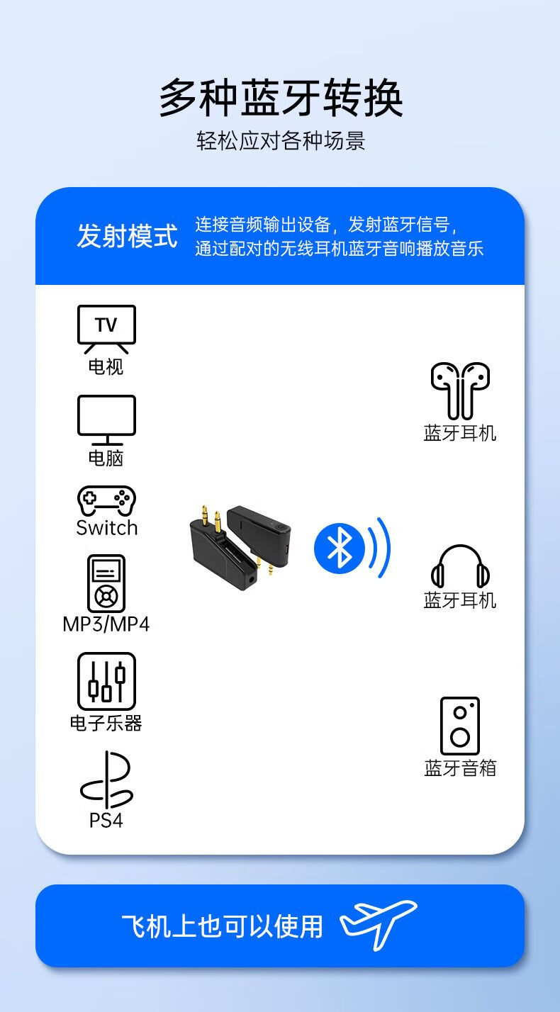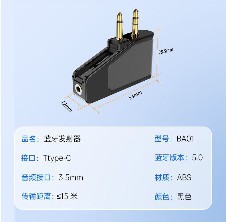 Dual 3.5mm plug aviation aircraft Bluetooth 5.3 audio conversion transmitter adapter two-in-one Bluetooth transceiver BA01 standard