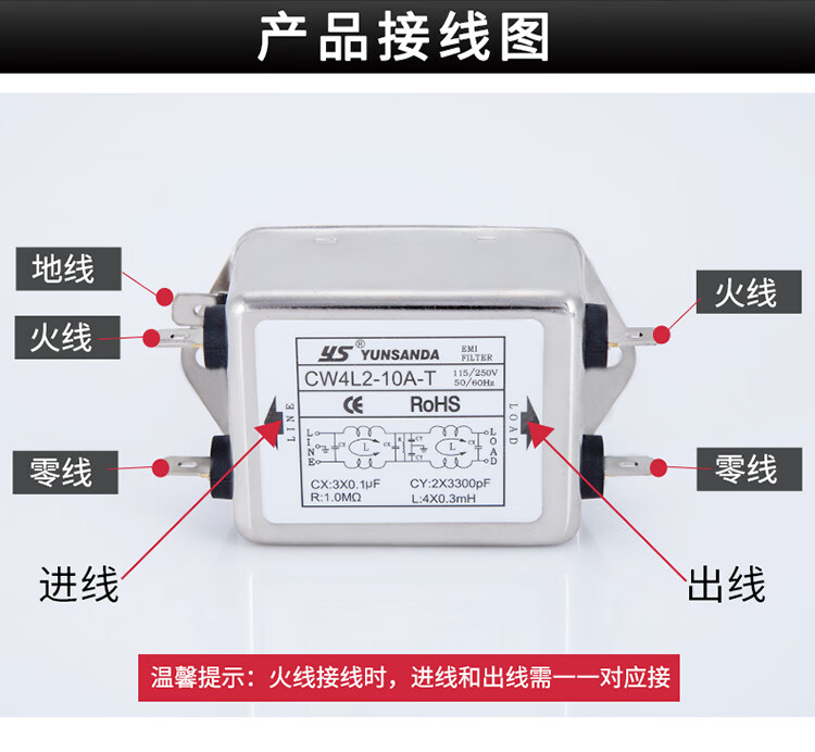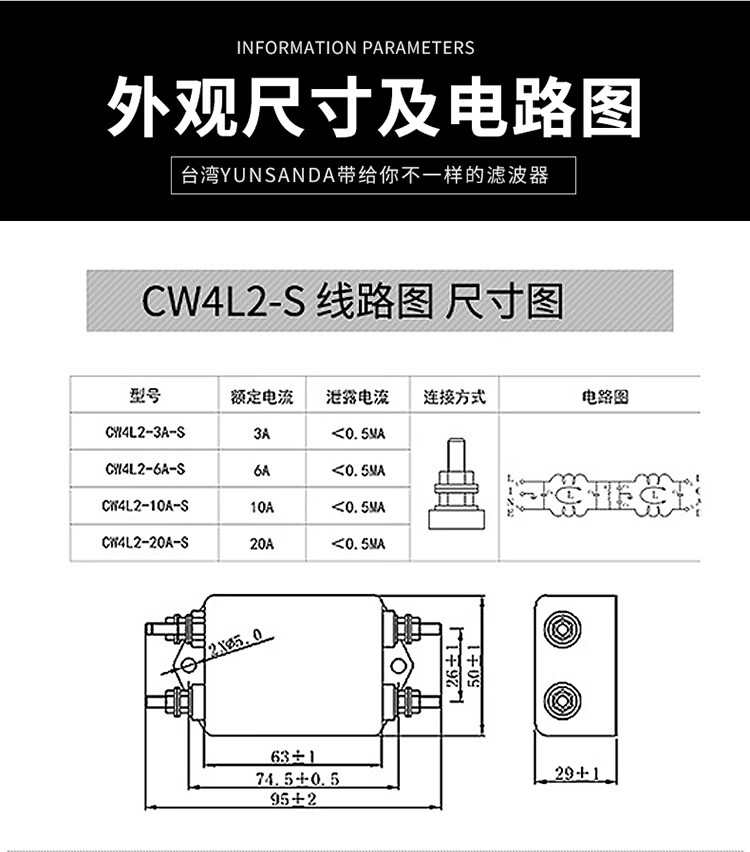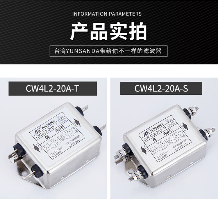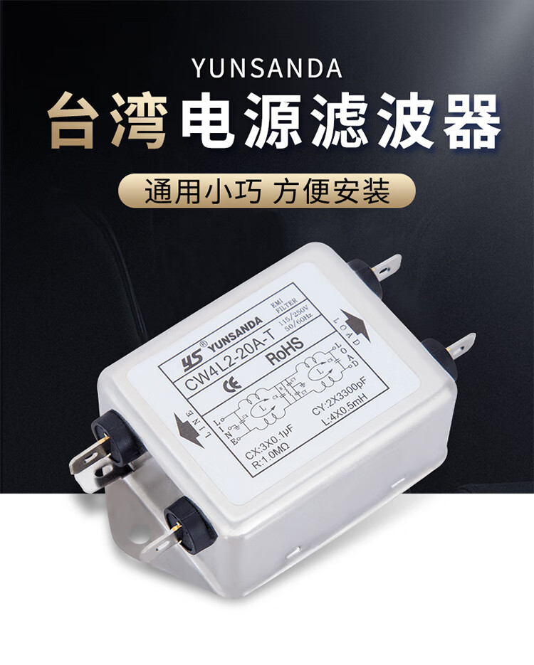 YUNSANDA filter 220v anti-interference CW4L2 single-phase AC audio power purifier EMI filter CW4L2-10A-T_single-phase_220v_insert