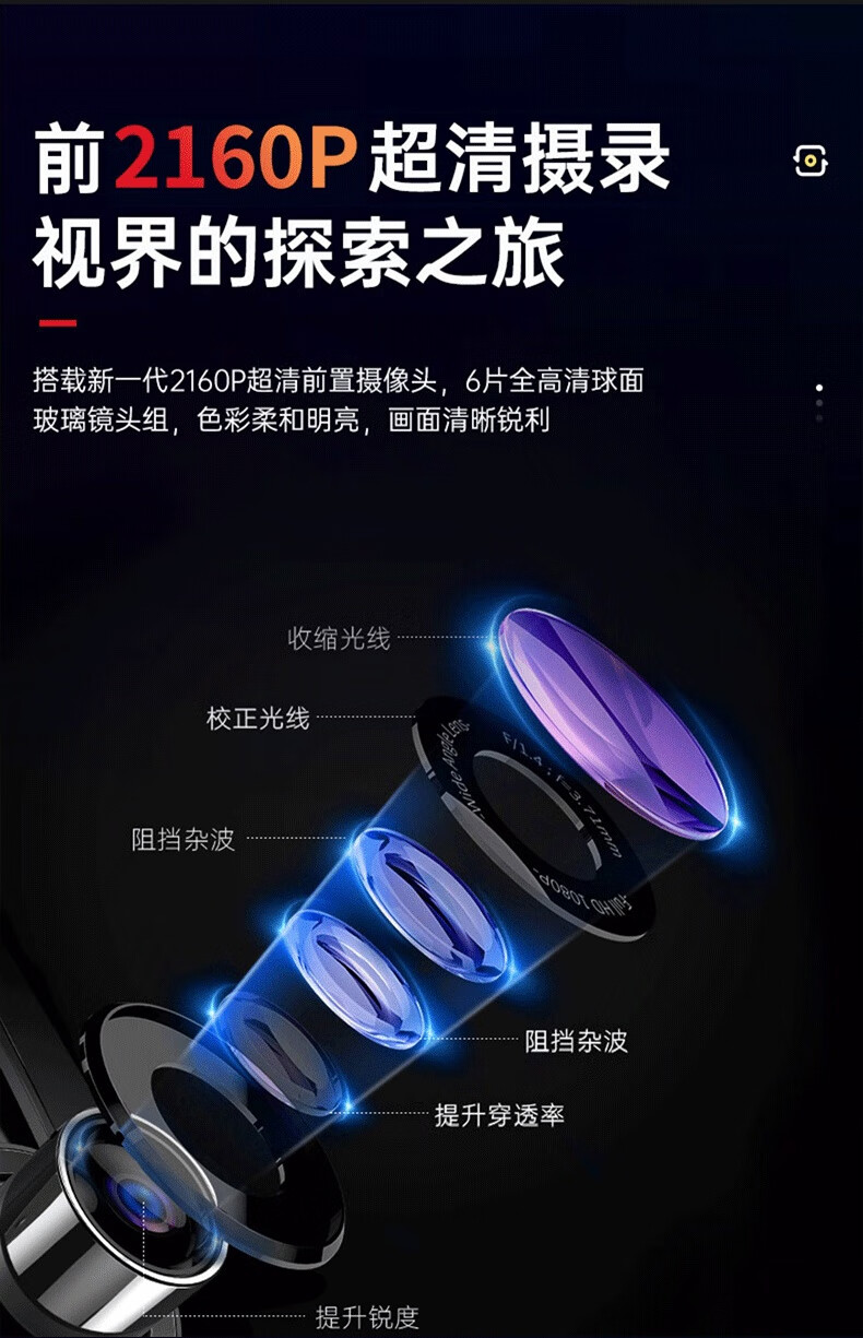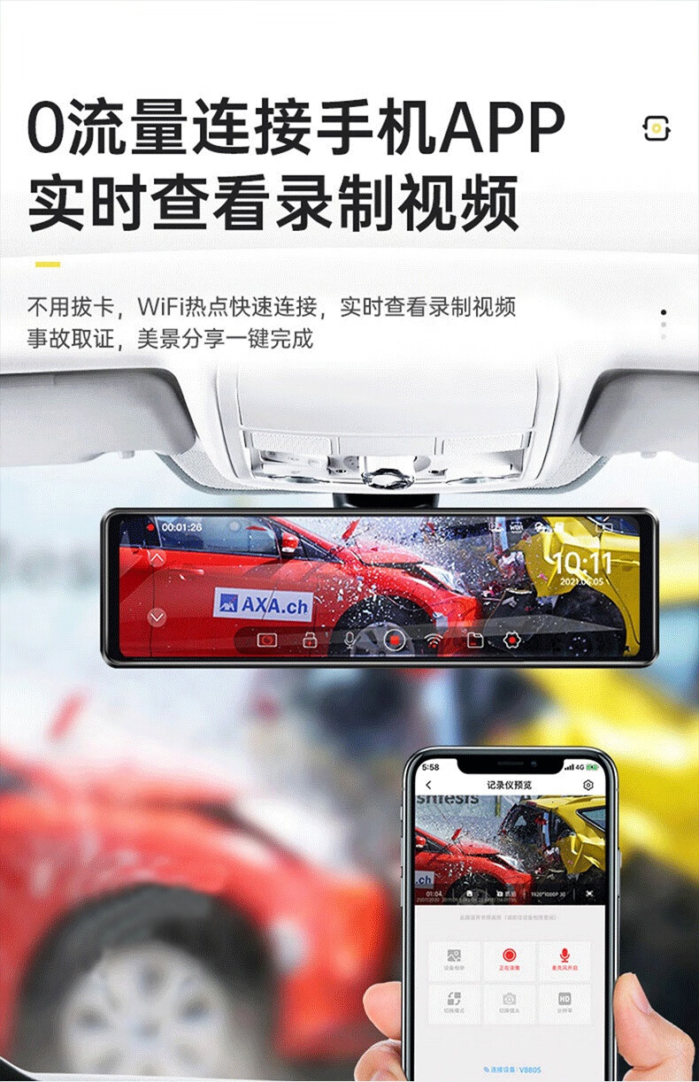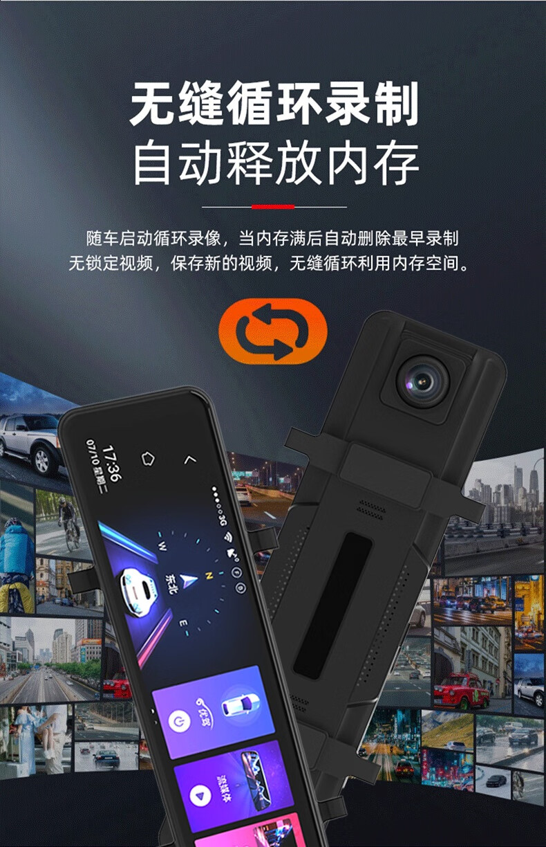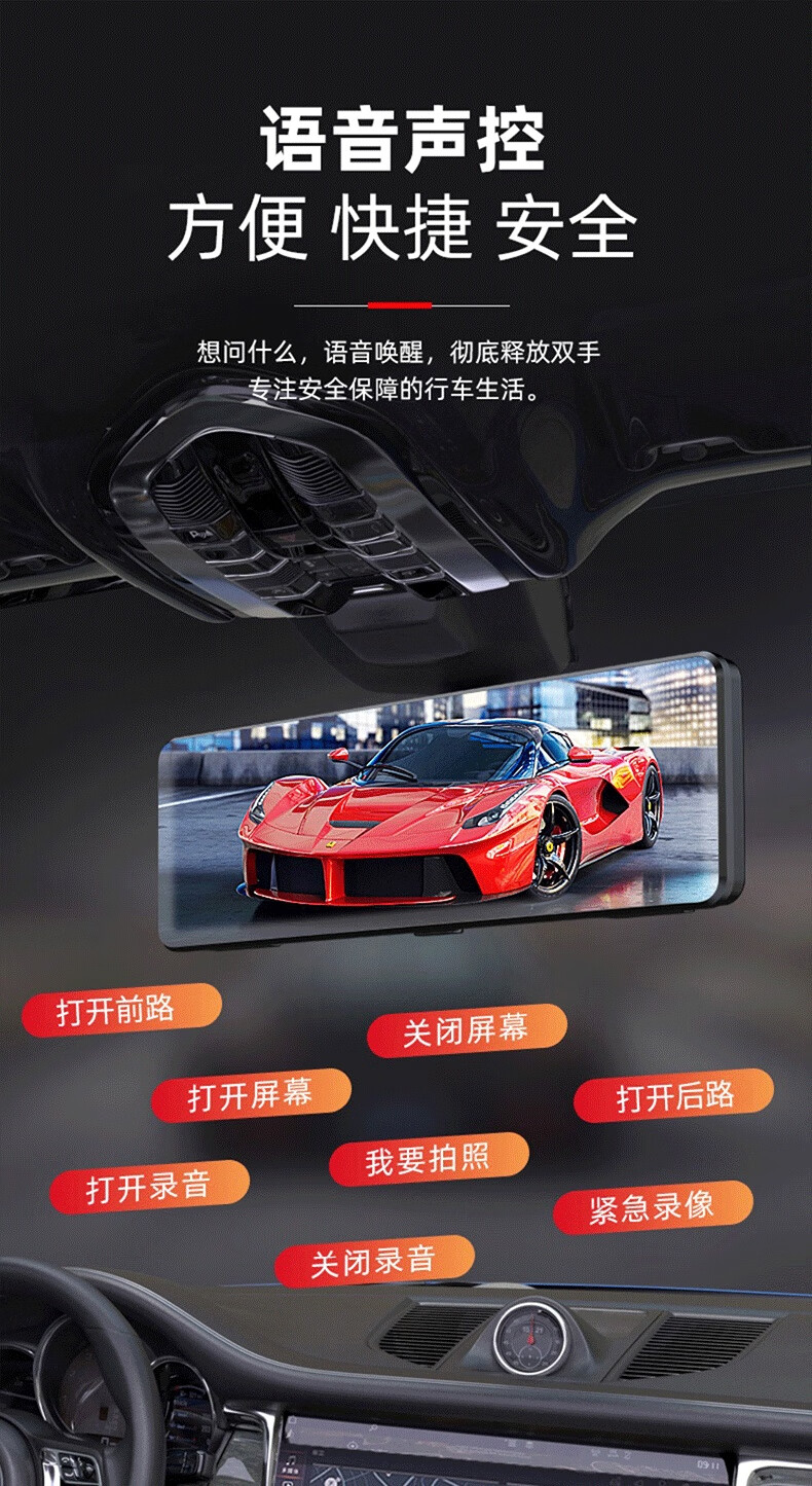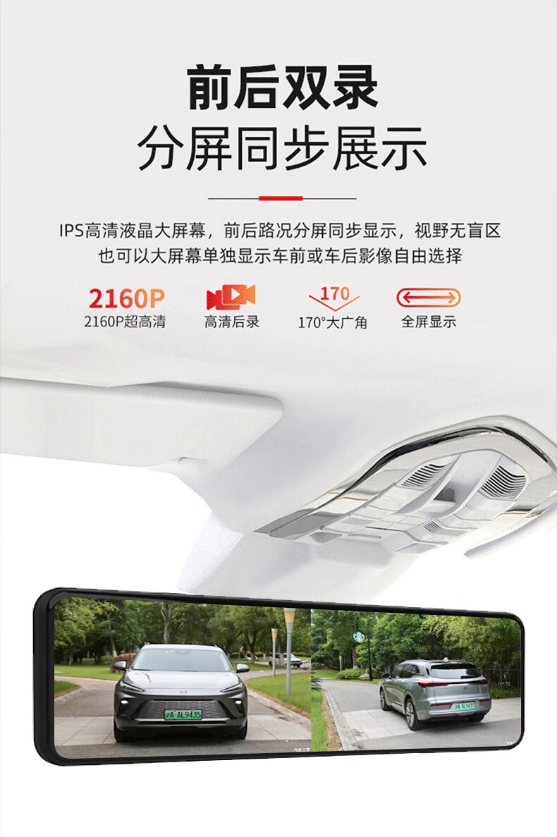 Zero-mirror three-lens 4K driving recorder high-definition front and rear dual recording 360 panoramic streaming rearview mirror reversing image 4K mobile APP-12-inch front and rear dual lenses 128G