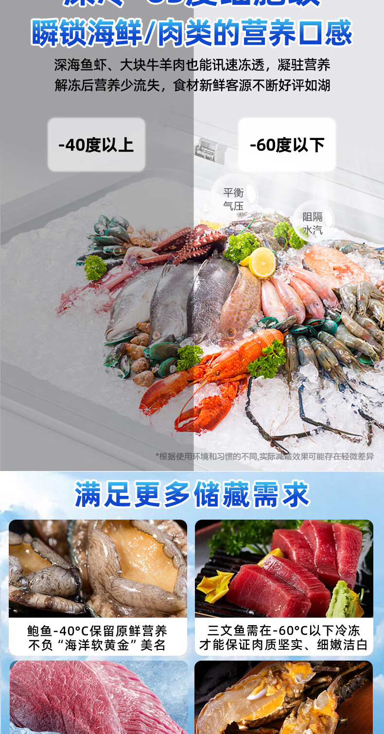 Avionics ultra-low temperature freezer - 60 degrees tuna seafood dry ice cryogenic minus 80 degrees refrigerator home commercial freezer stainless steel minus 40 degrees low temperature rapid freezing freezer household cabinet 350 liters (-45)