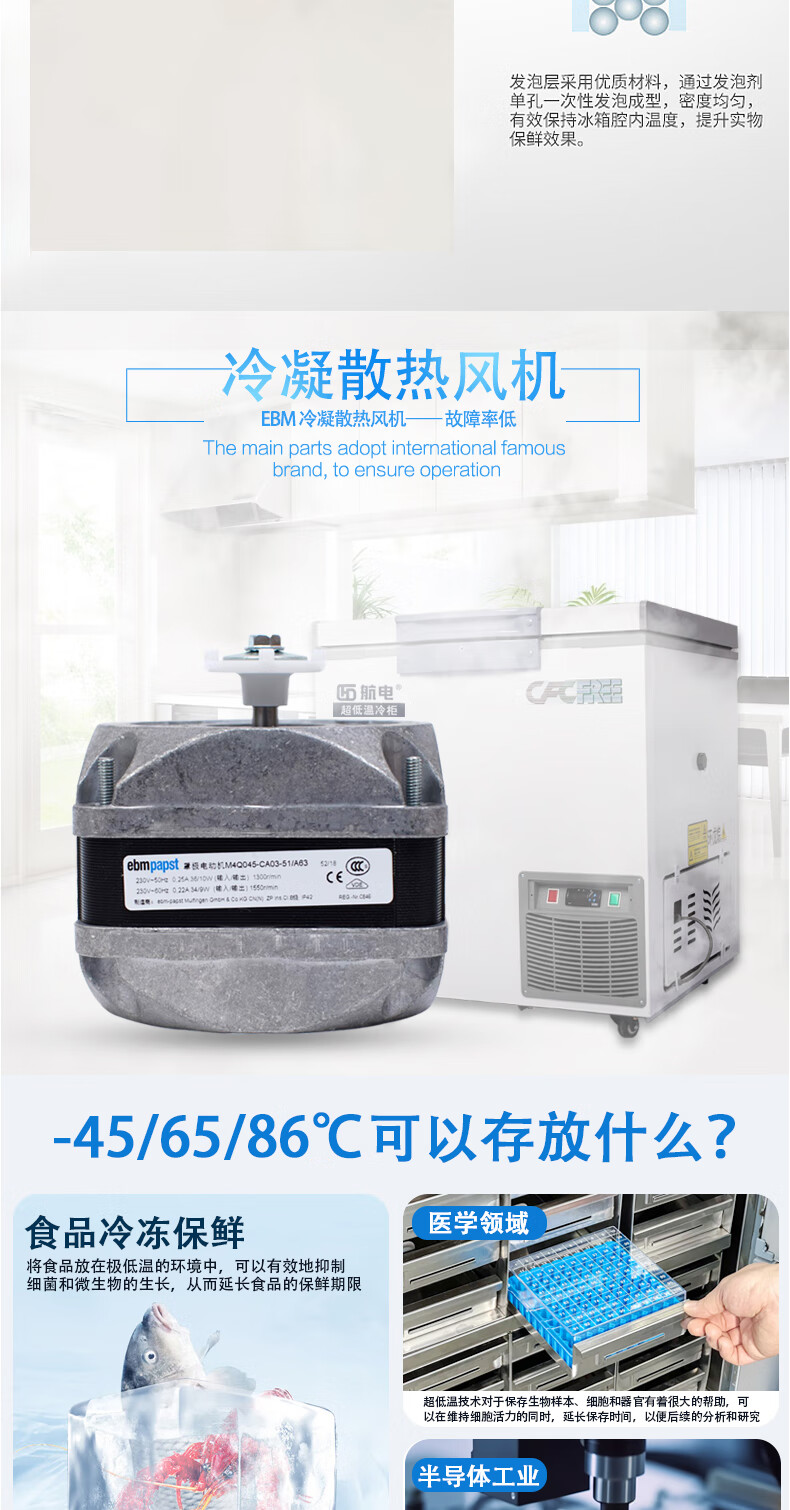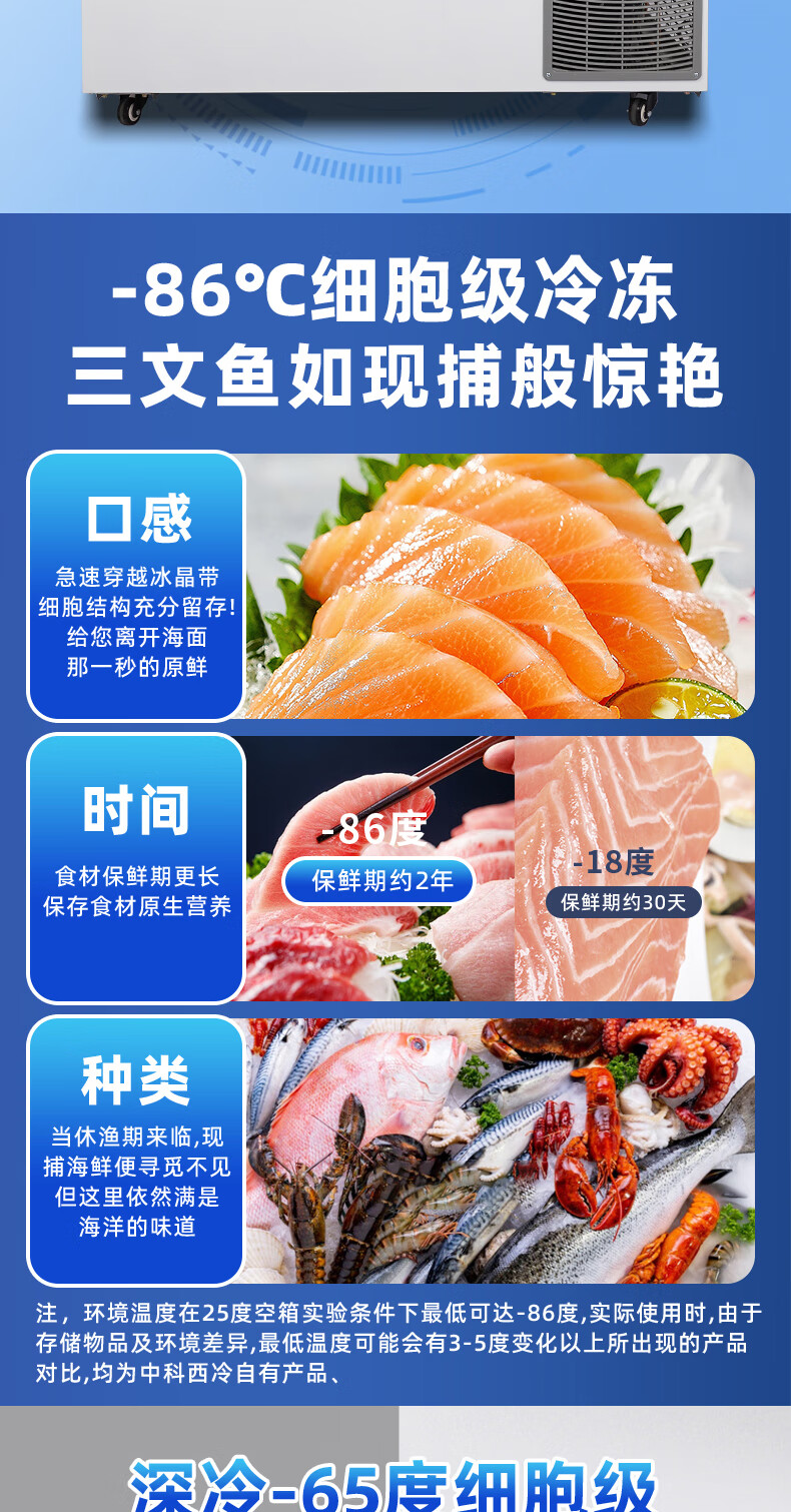 Avionics sub-zero-86 degree ultra-low temperature freezer-40 commercial large-capacity tuna quick-freezing refrigerator-60 degree horizontal freezer laboratory deep-freezing household seafood freezer industrial use 582 liters (-45)