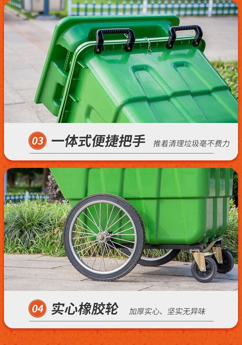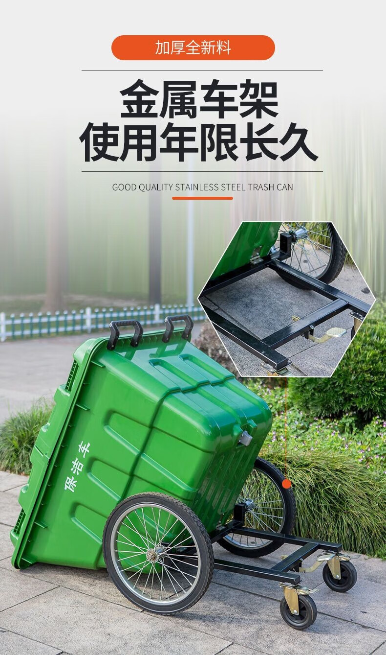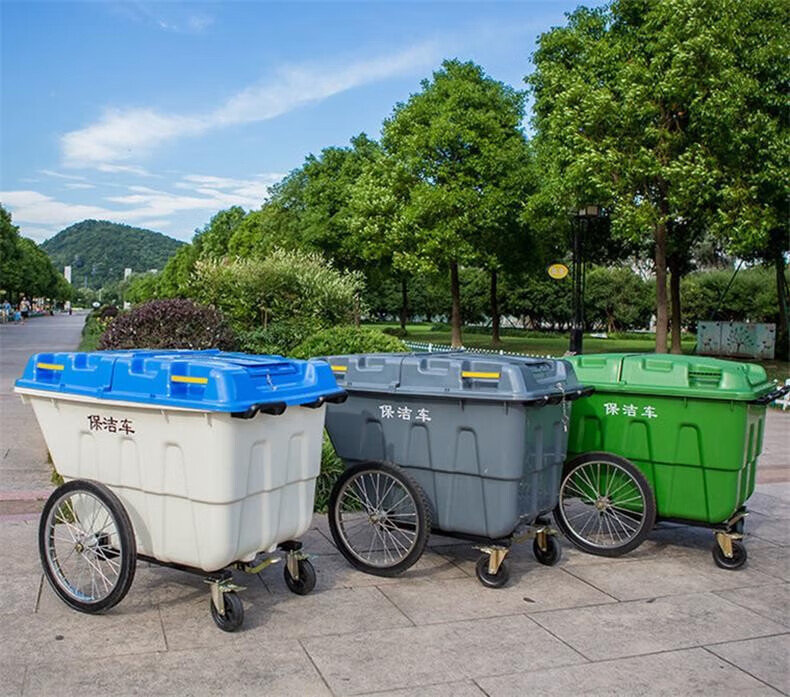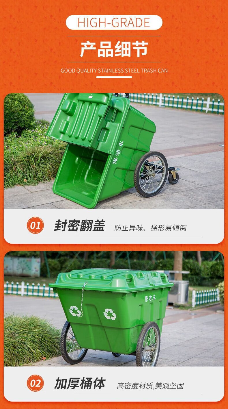 Big seaside cleaning truck, sanitation and cleaning truck, four-wheeled municipal property hand-pushed cleaning trolley, large outdoor garbage truck, 400L garbage truck, gray + covered + thickened + wheels