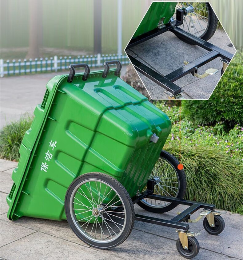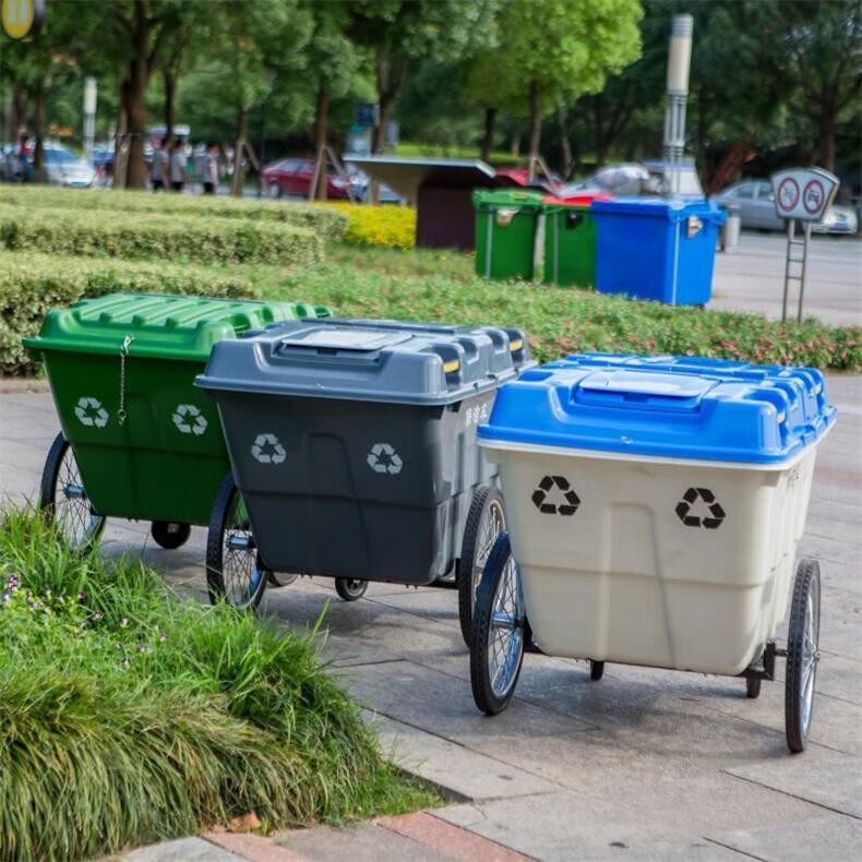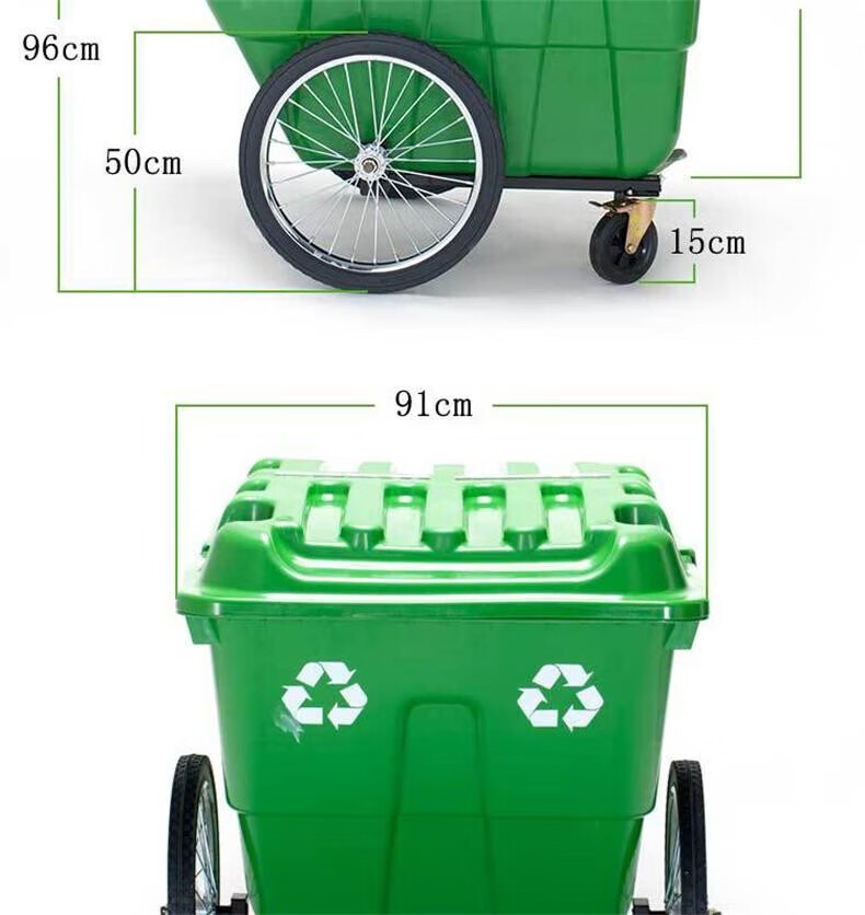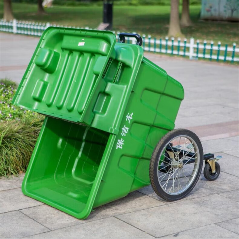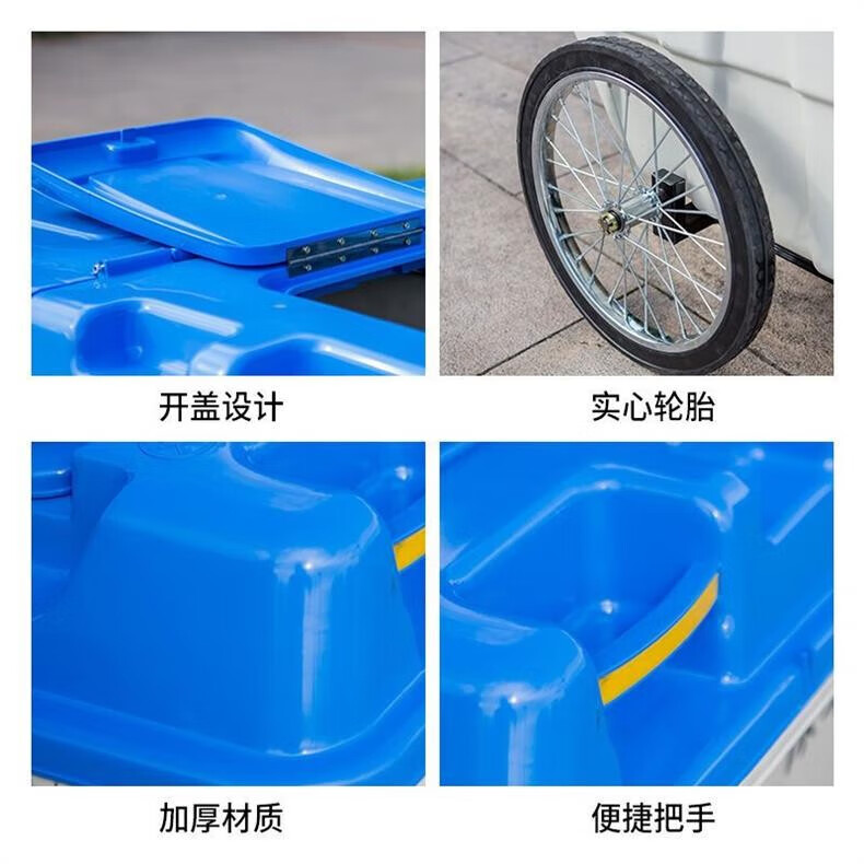 Big seaside cleaning truck, sanitation and cleaning truck, four-wheeled municipal property hand-pushed cleaning trolley, large outdoor garbage truck, 400L garbage truck, gray + covered + thickened + wheels