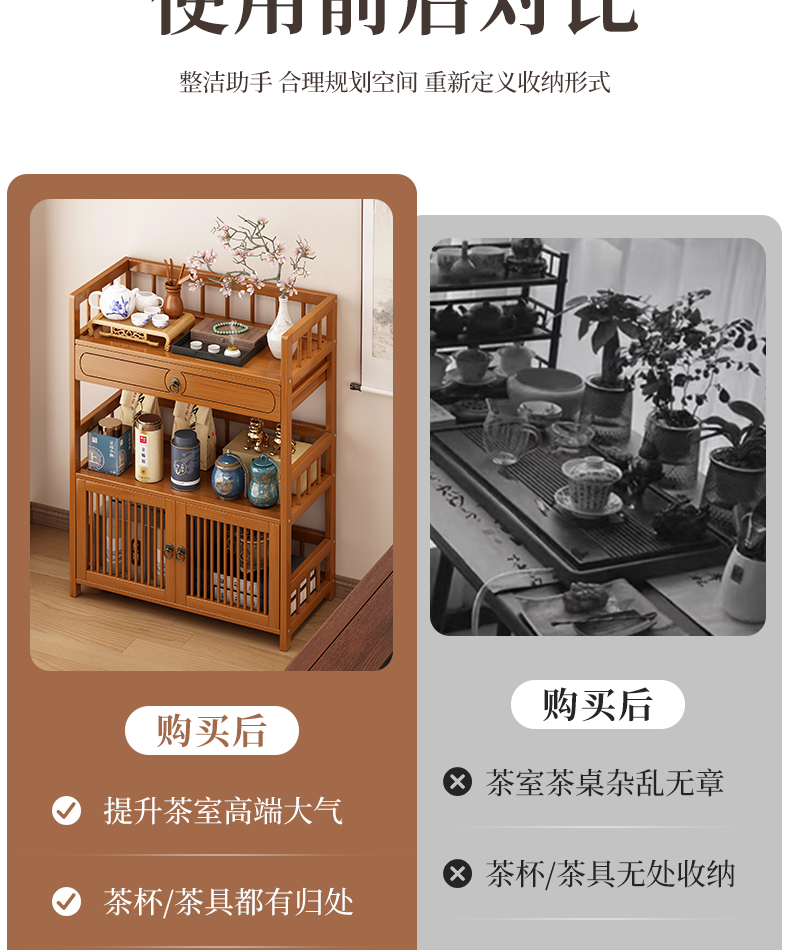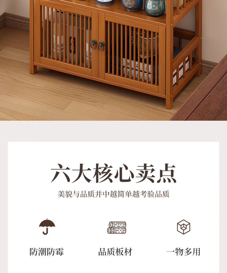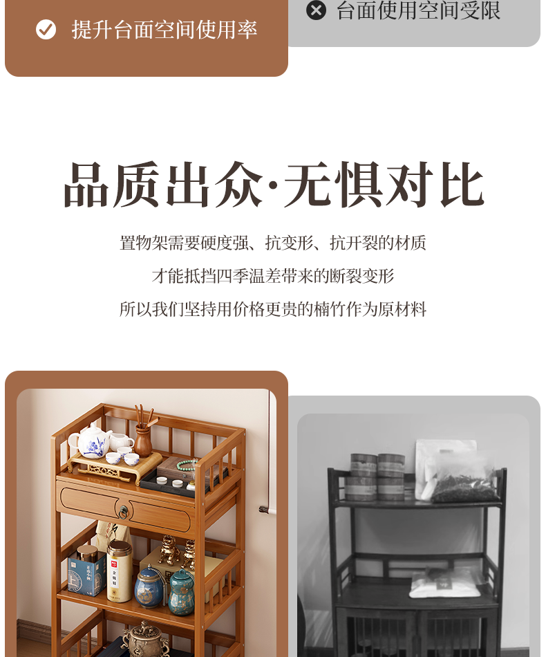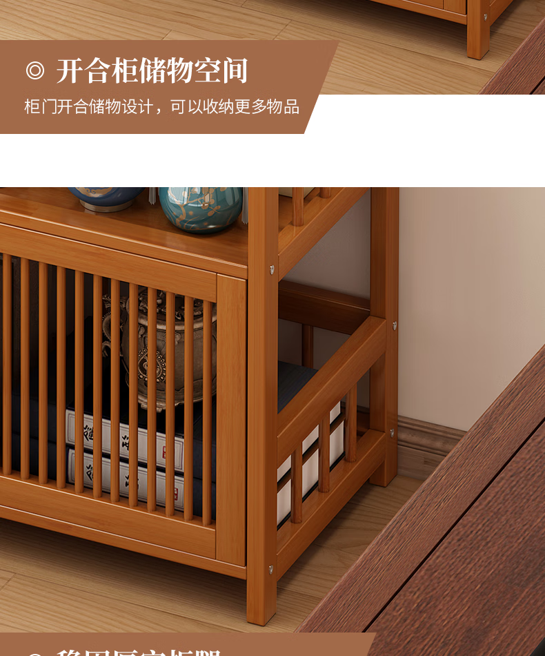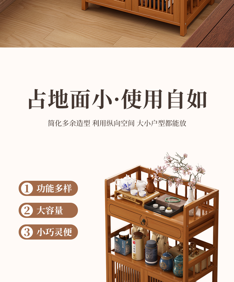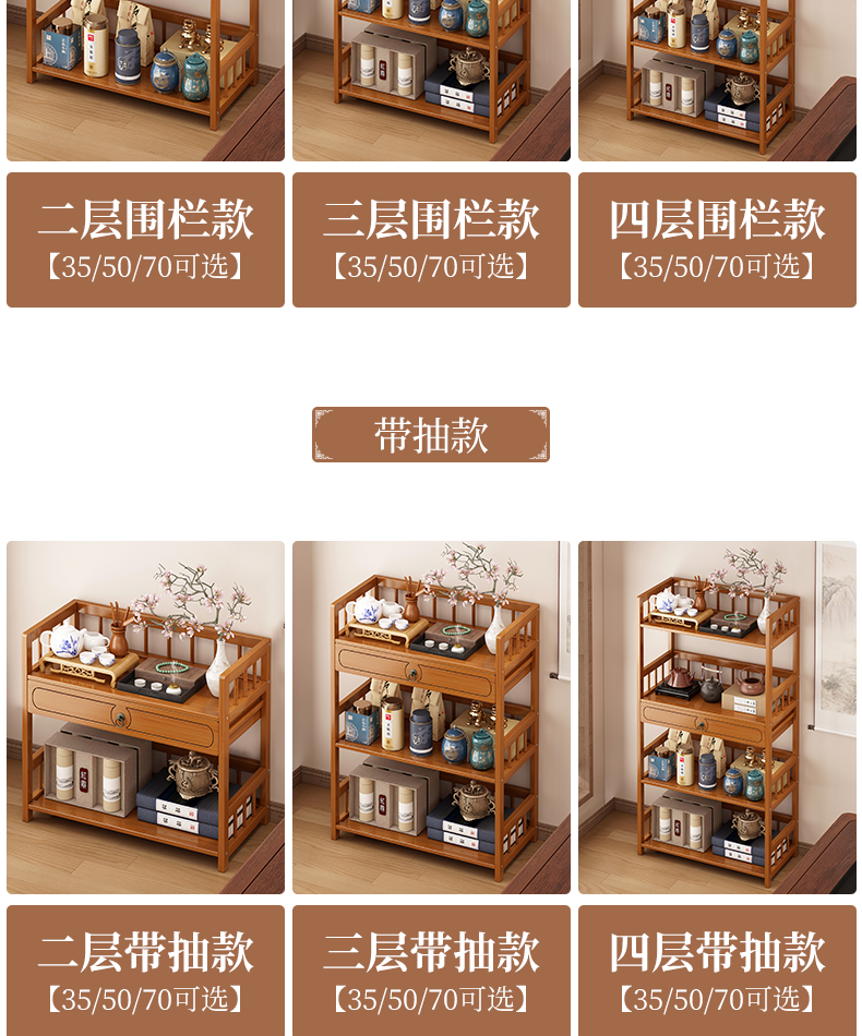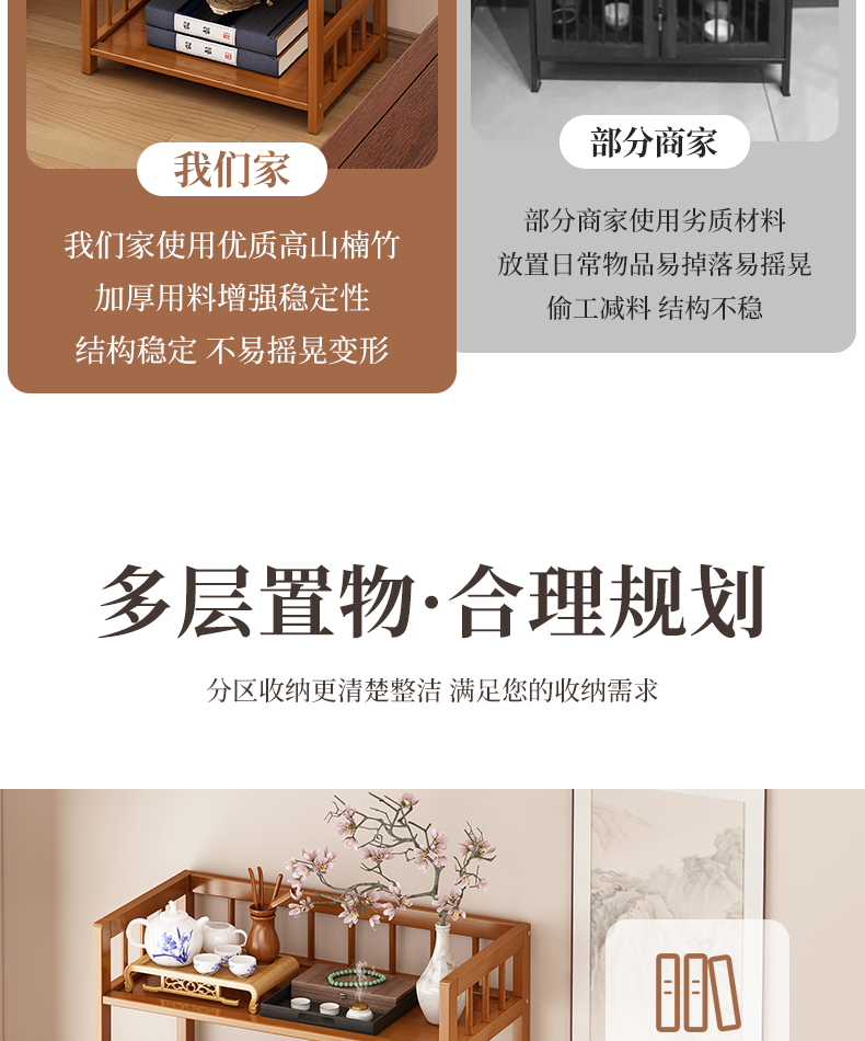 Baizhong tea rack storage rack bamboo non-solid wood tea rack storage cabinet living room small Bogu rack tea room multi-layer tea set rack three-layer simple style 50 long