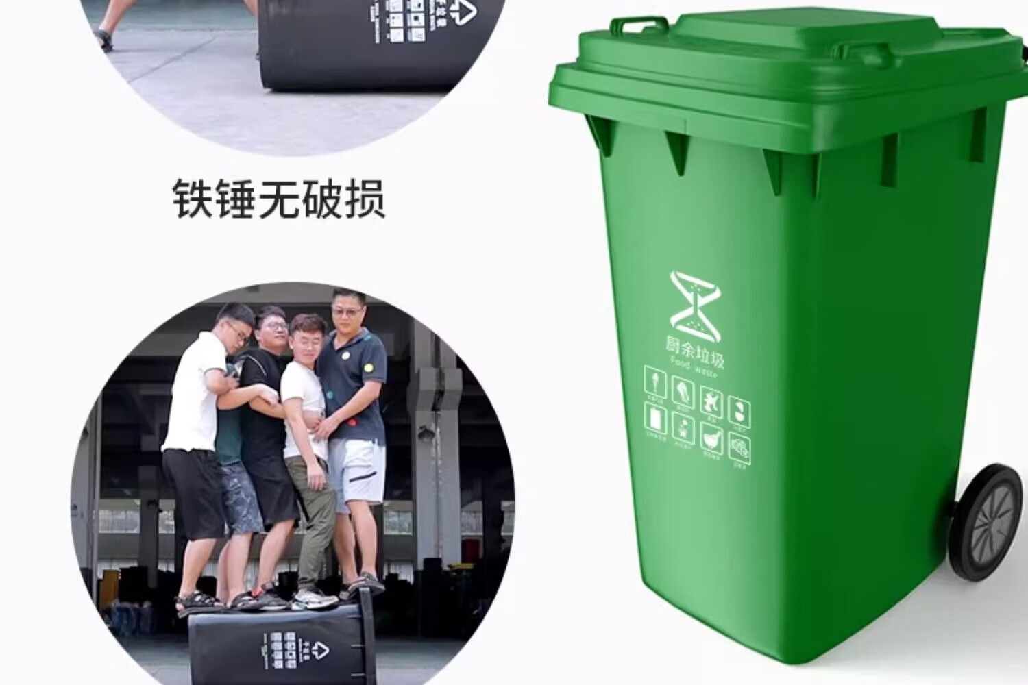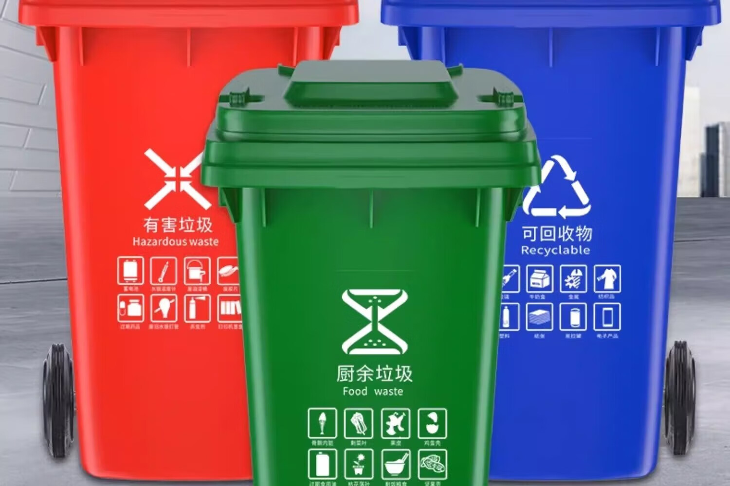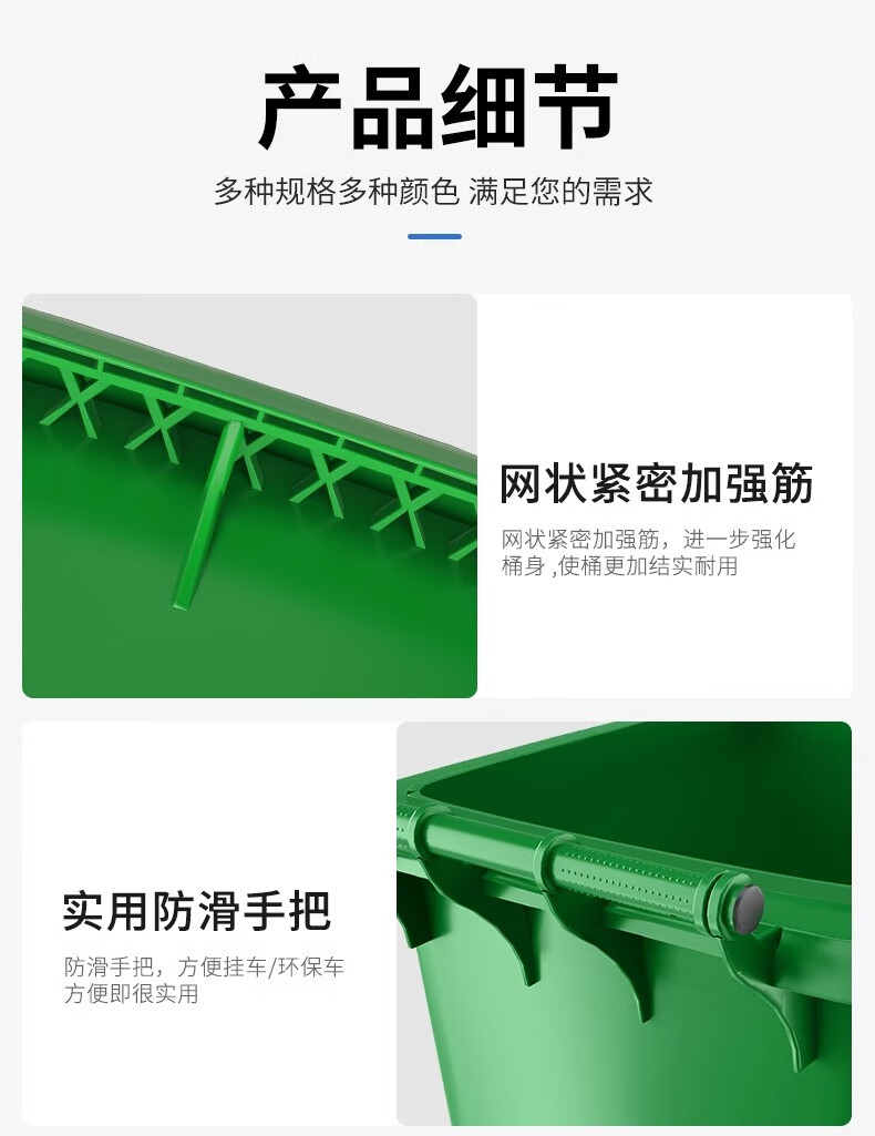 Kai Tak Outdoor Classified Trash Cans Community Property Sanitation Trash Cans Catering Kitchen Hotel Dry and Wet Separation Special Trash Cans 120L Extra Thick Green - Kitchen Waste