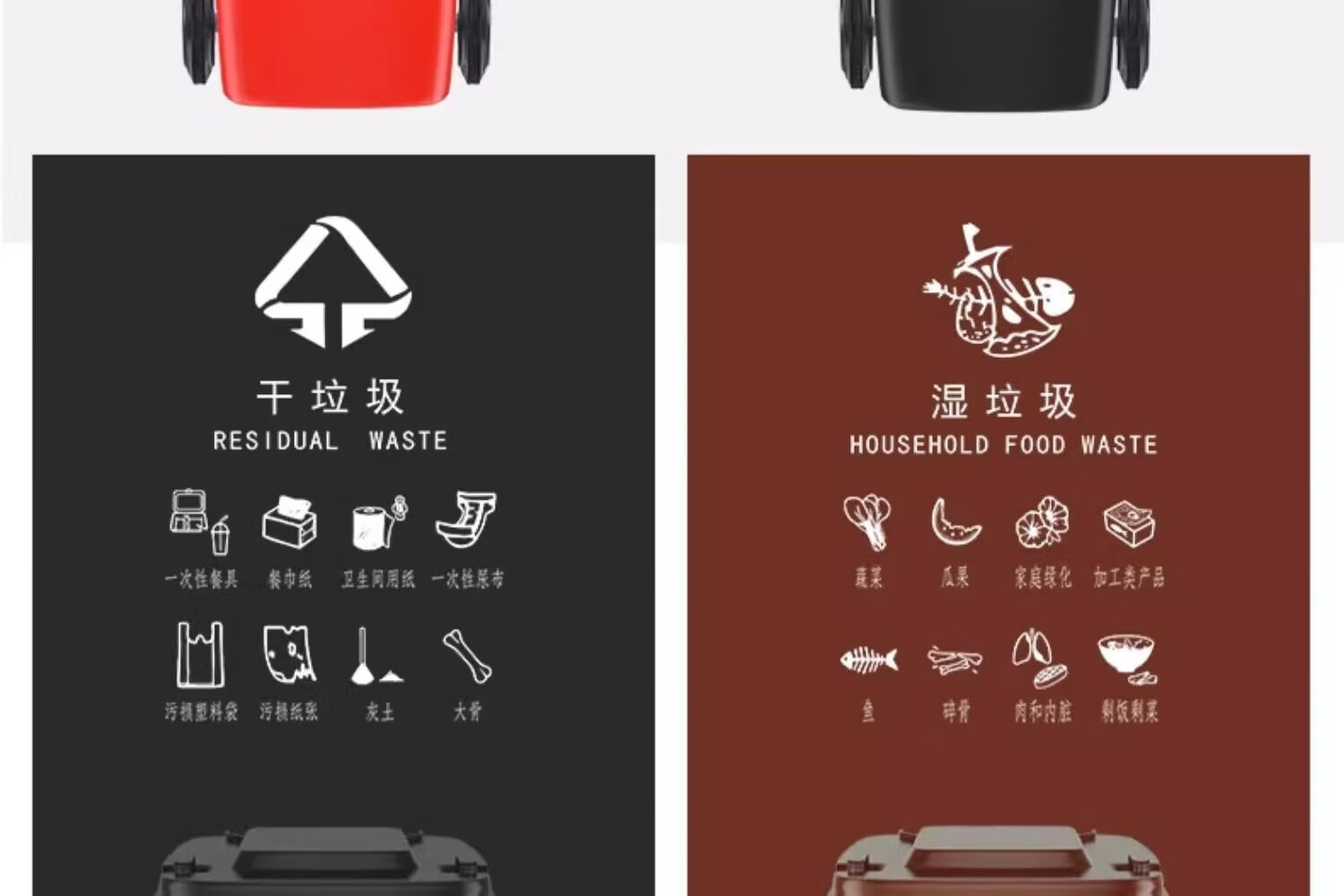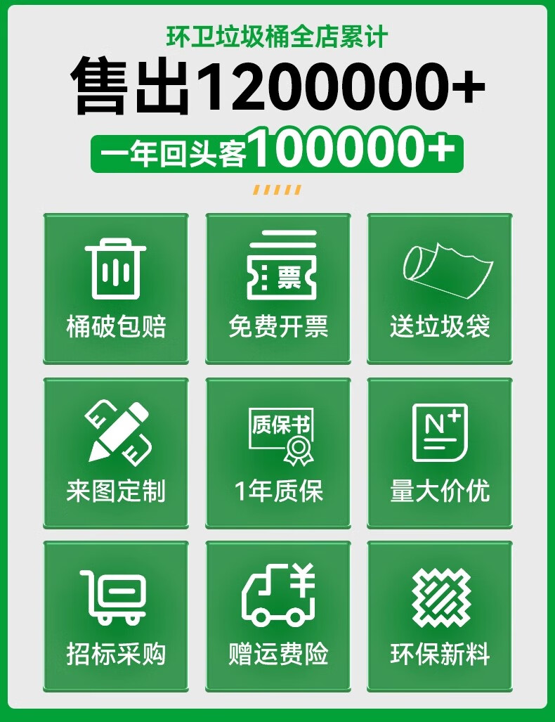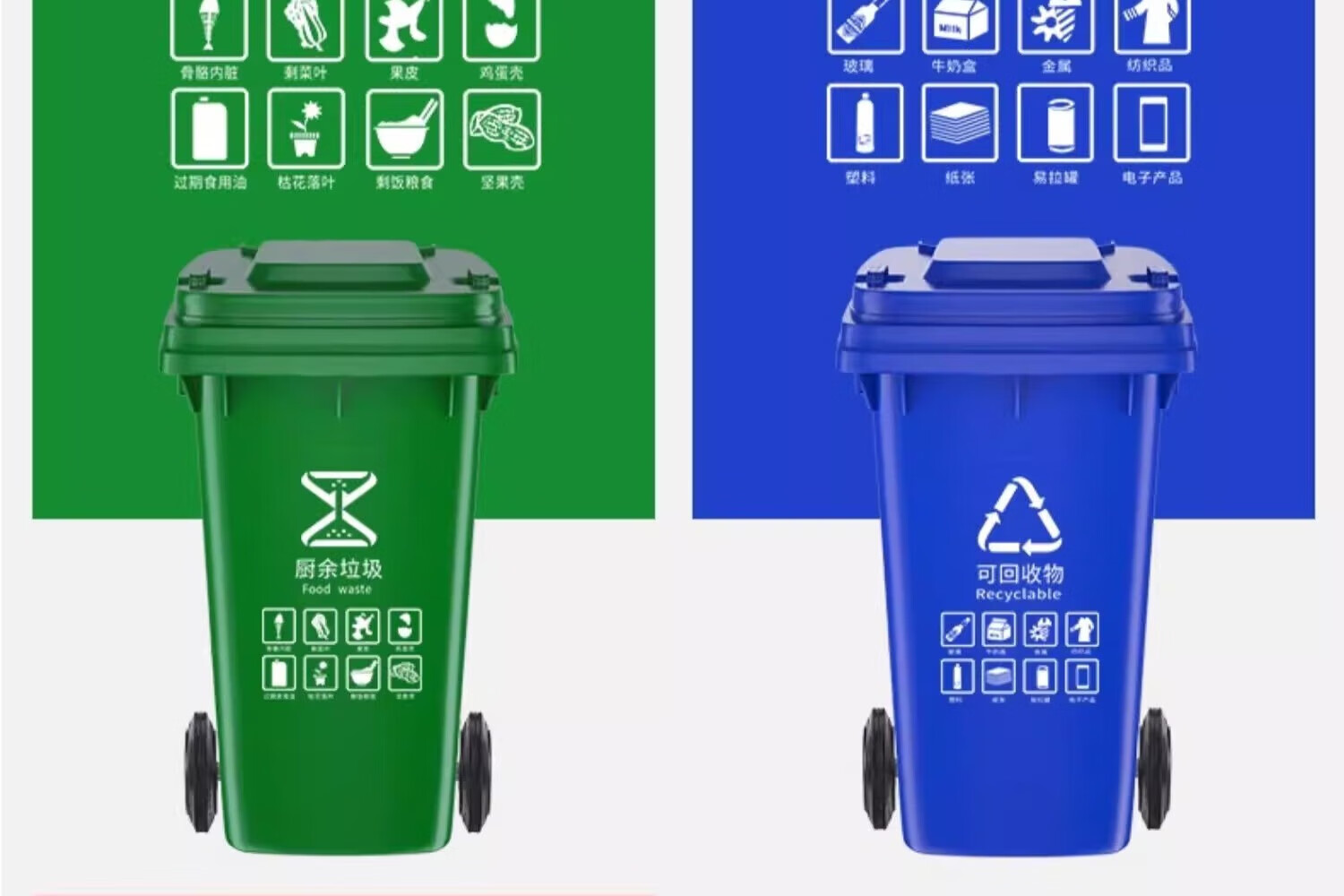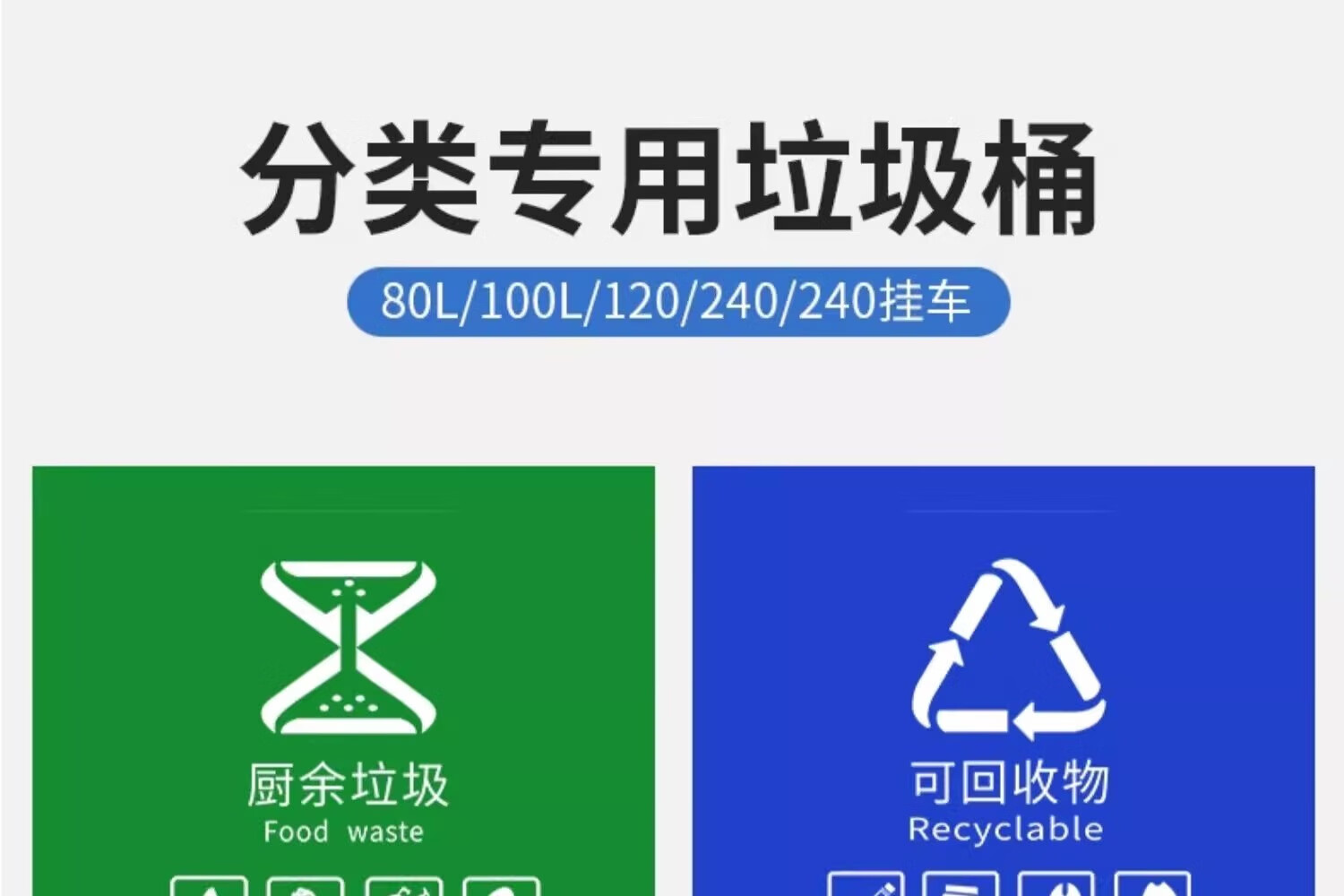 Kai Tak Outdoor Classified Trash Cans Community Property Sanitation Trash Cans Catering Kitchen Hotel Dry and Wet Separation Special Trash Cans 120L Extra Thick Green - Kitchen Waste