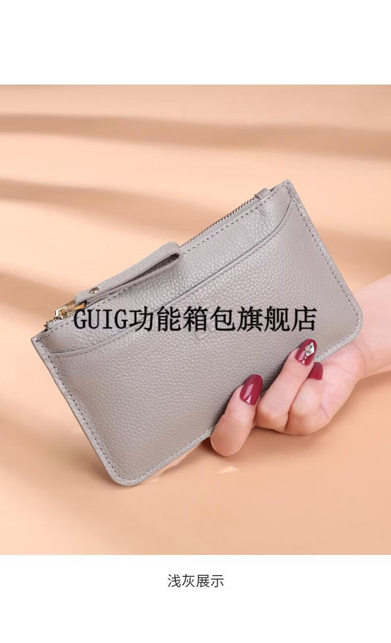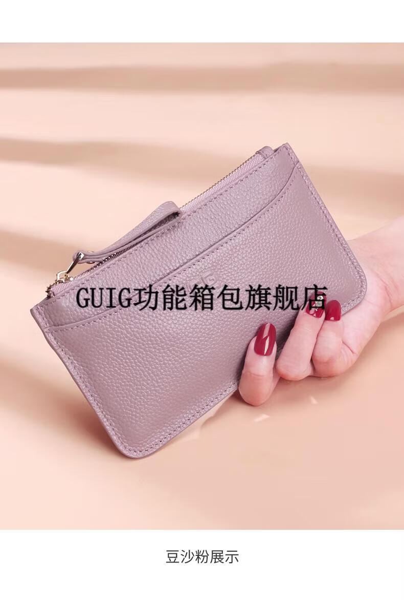 GUIG Germany imported quality genuine leather coin purse coin clutch for women 2025 new trendy first layer cowhide zipper wallet light blue
