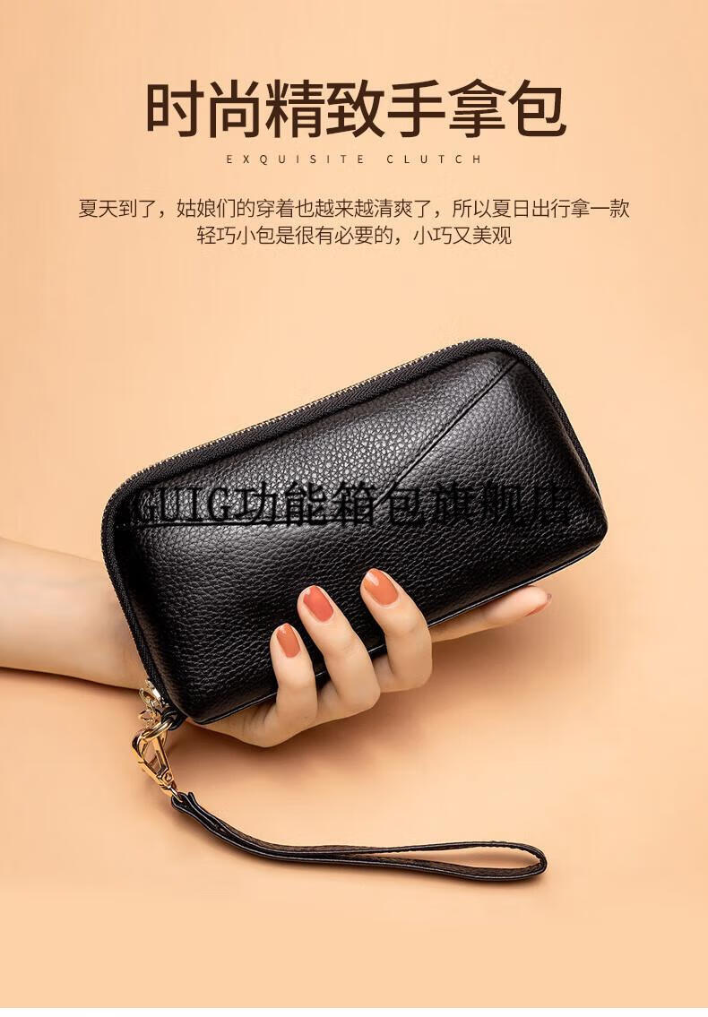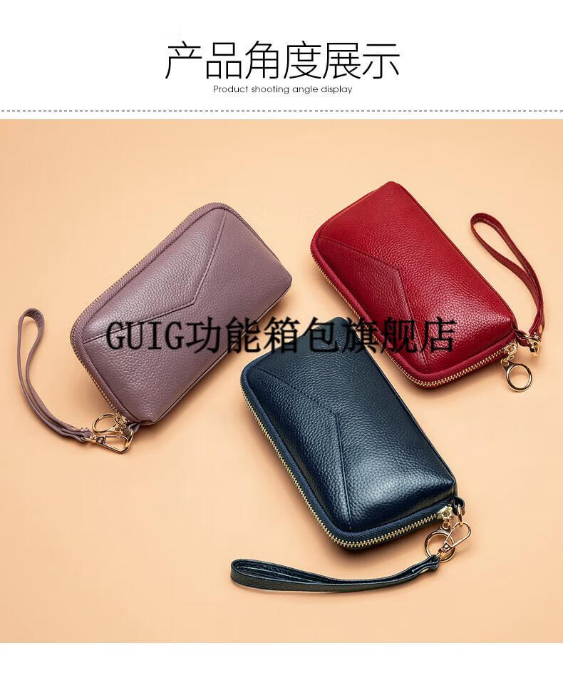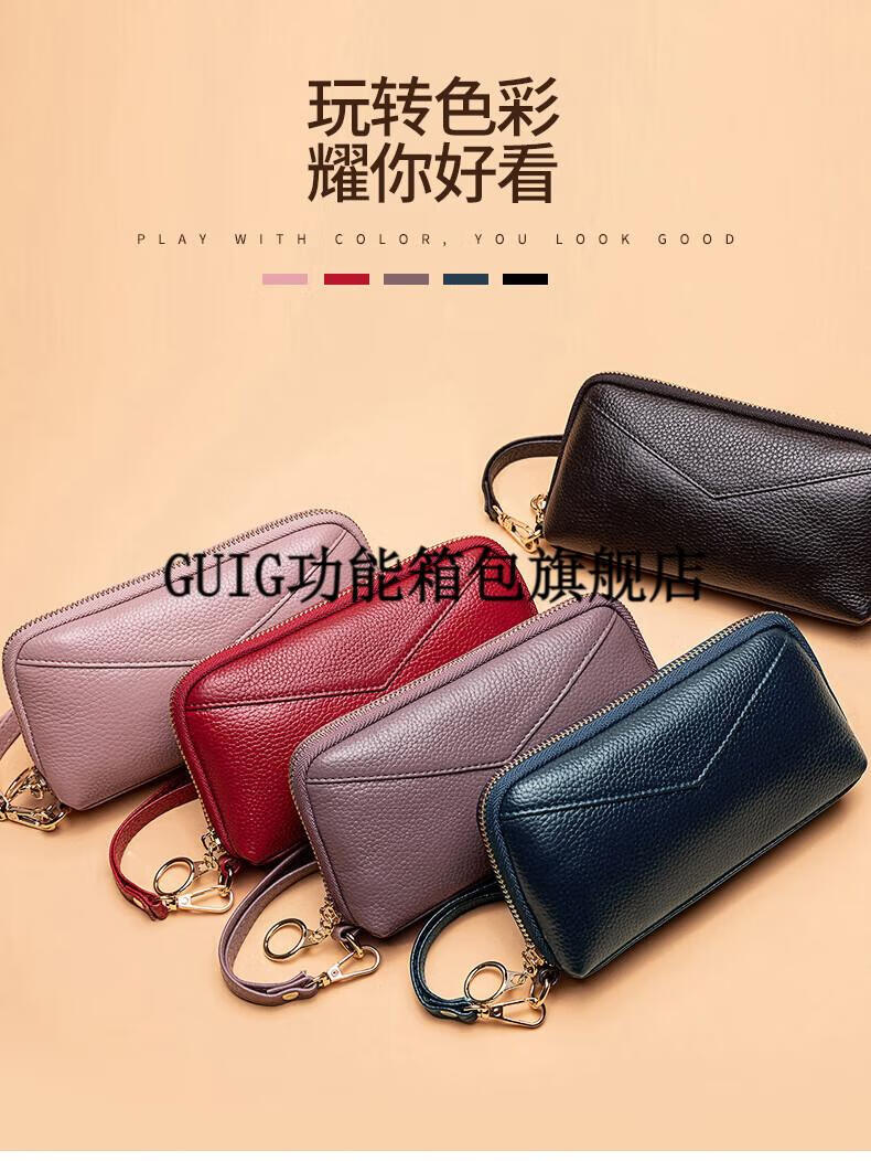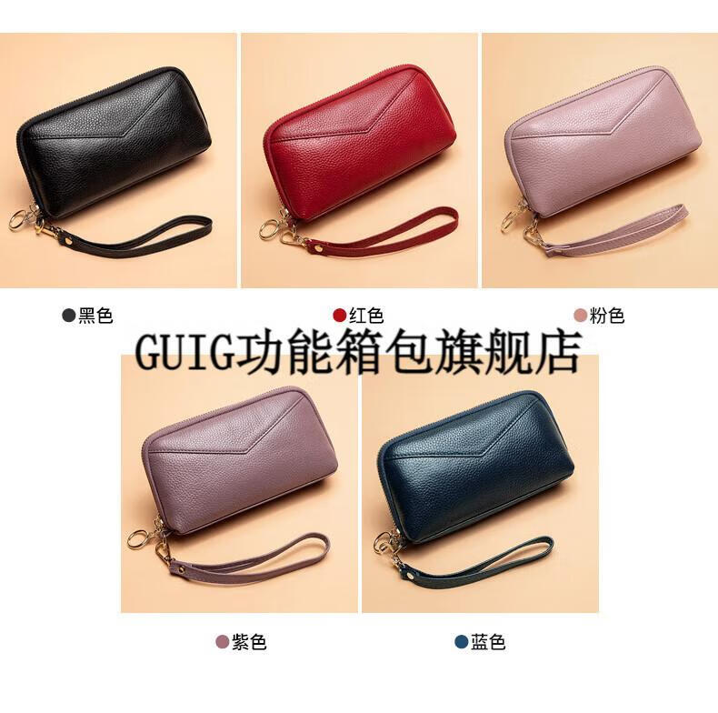 GUIG Germany imported quality genuine leather coin purse women's long 2025 new fashion simple patchwork clutch bag for women black