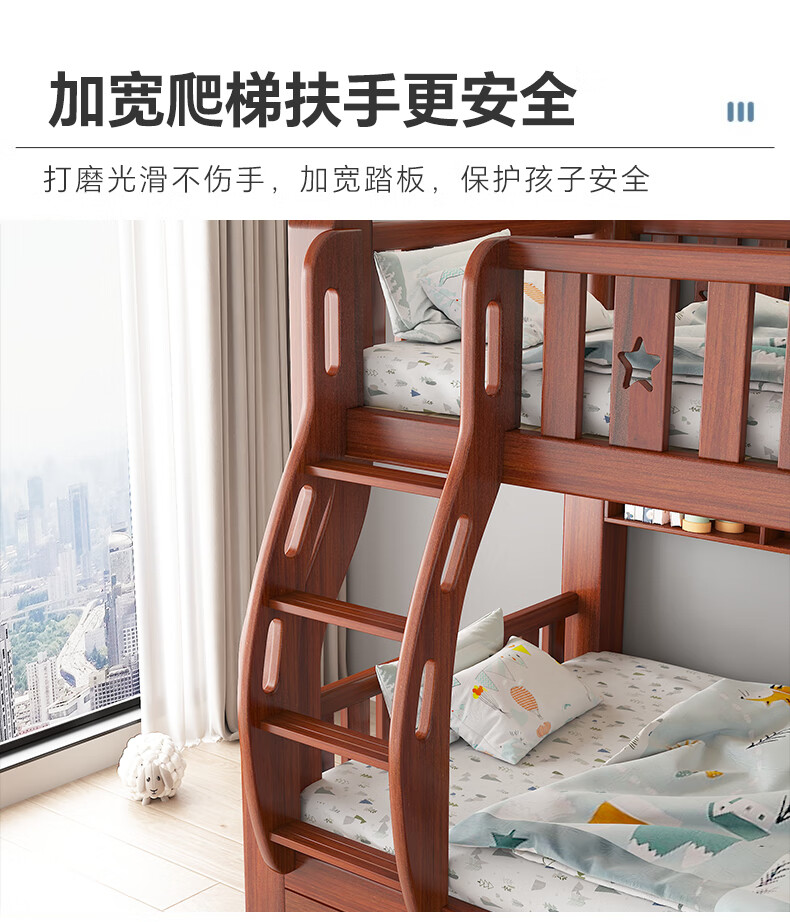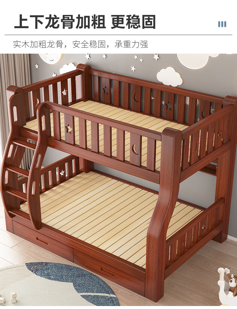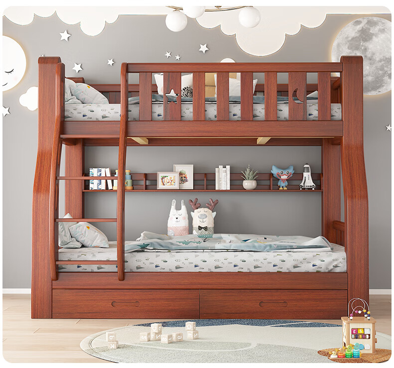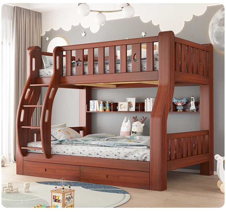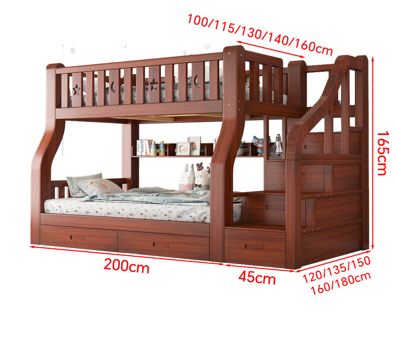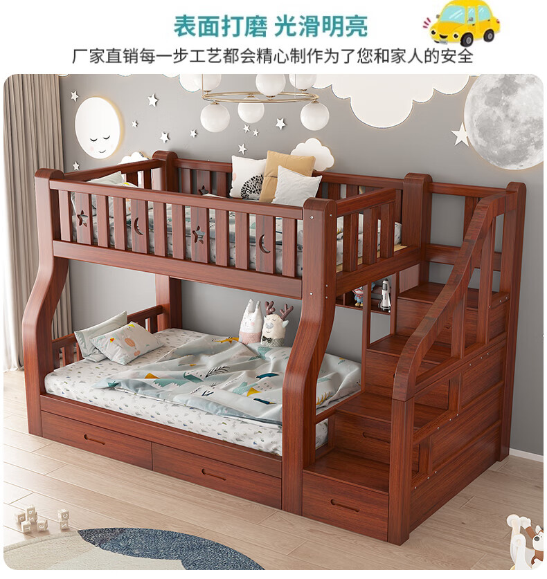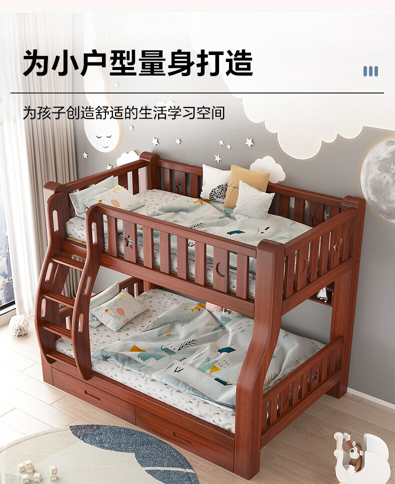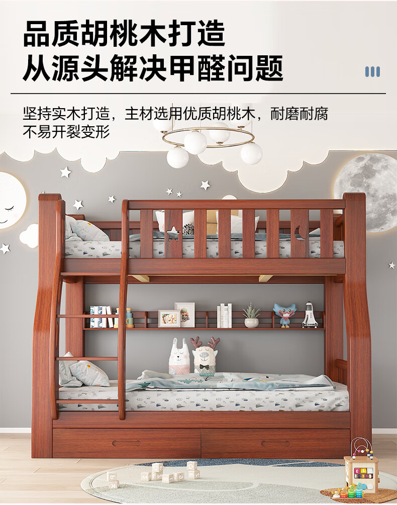 Moriyuki children's furniture bunk bed solid wood walnut double bed for boys and girls small apartment high and low bed double bed ladder style upper 130 lower 150