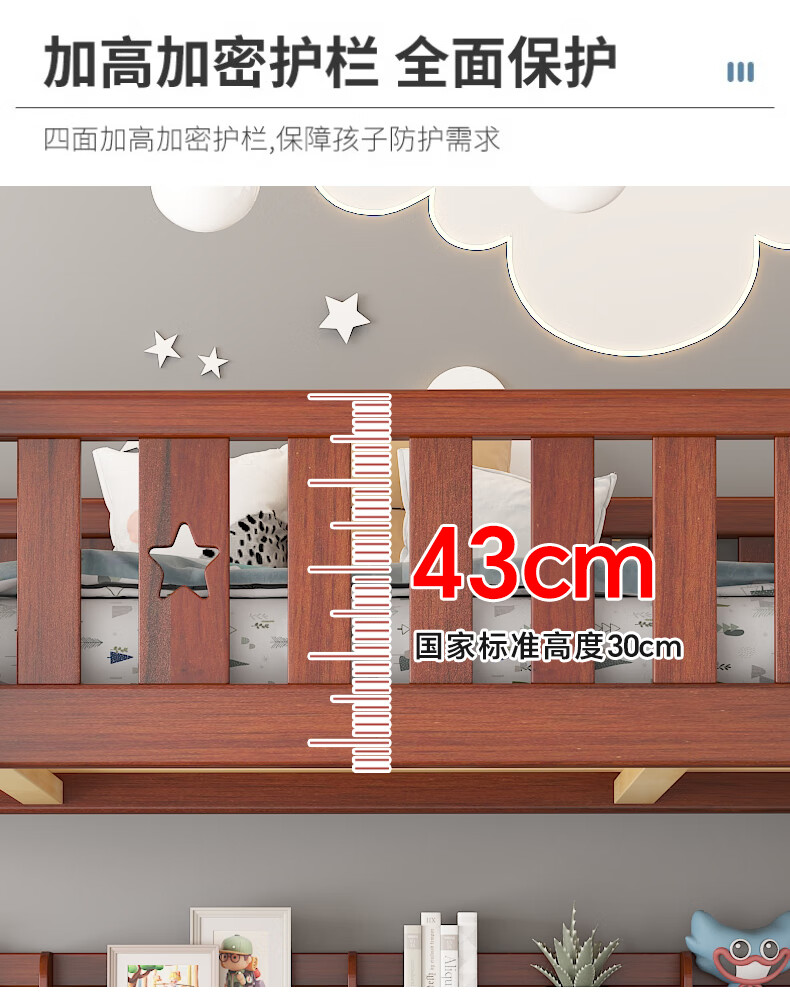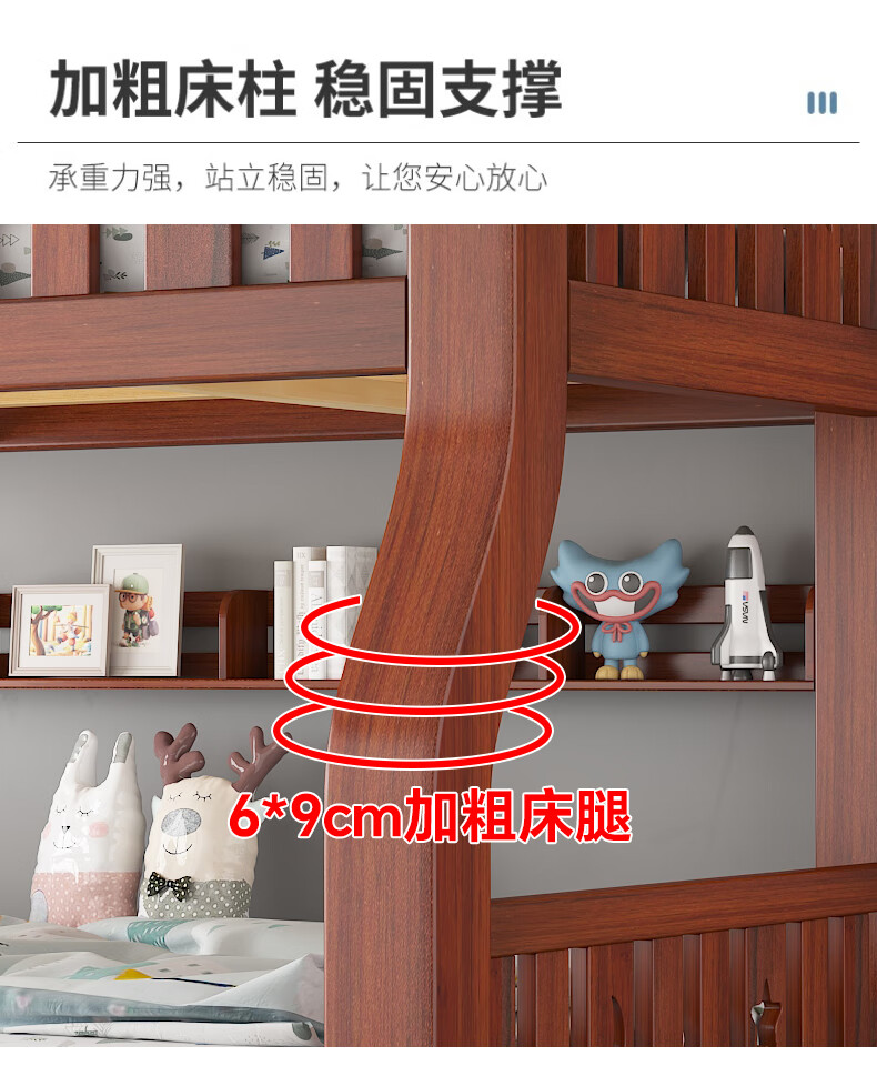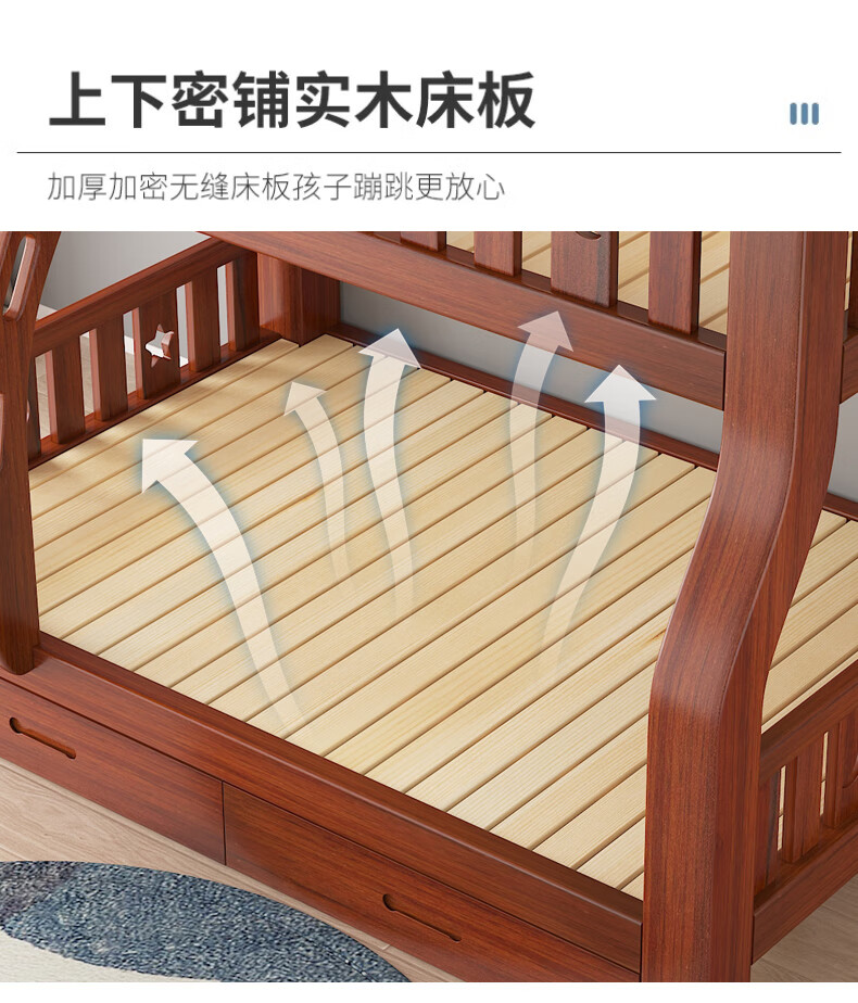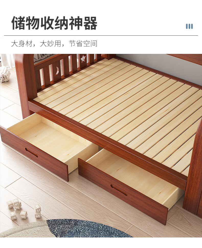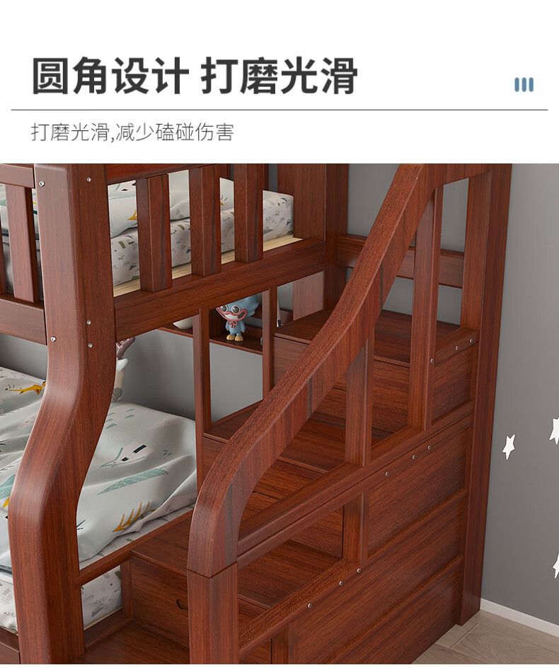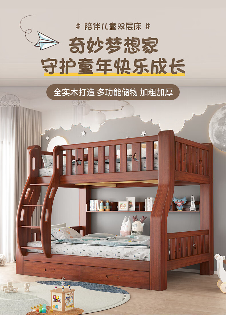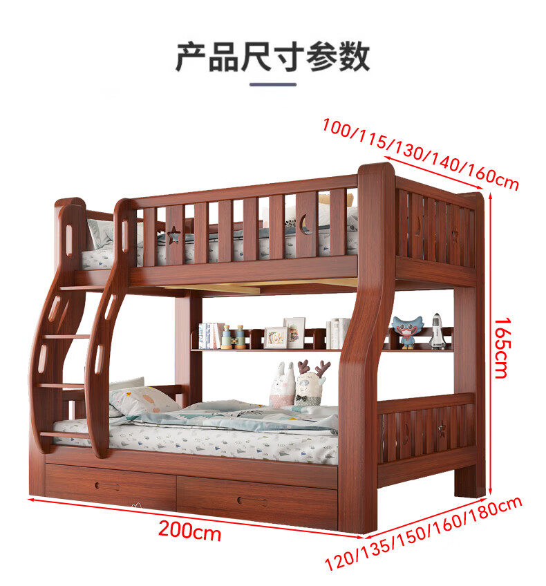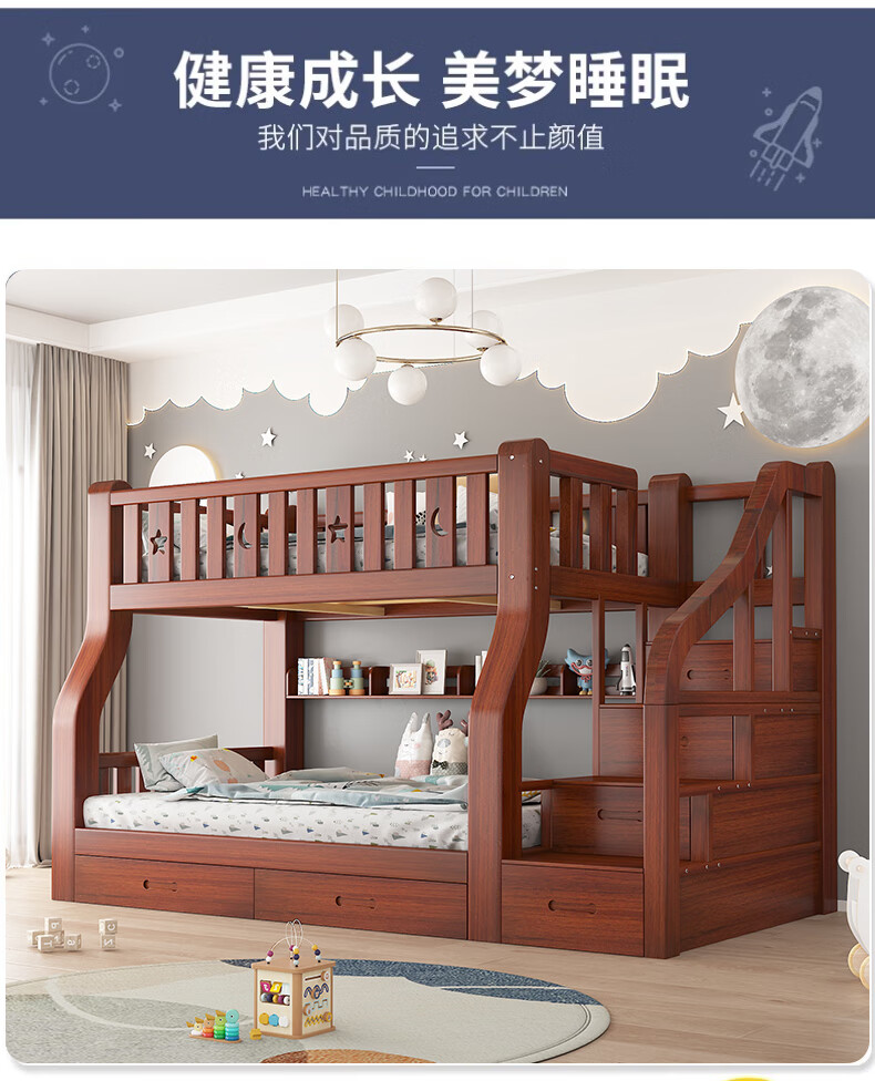 Moriyuki children's furniture bunk bed solid wood walnut double bed for boys and girls small apartment high and low bed double bed ladder style upper 130 lower 150