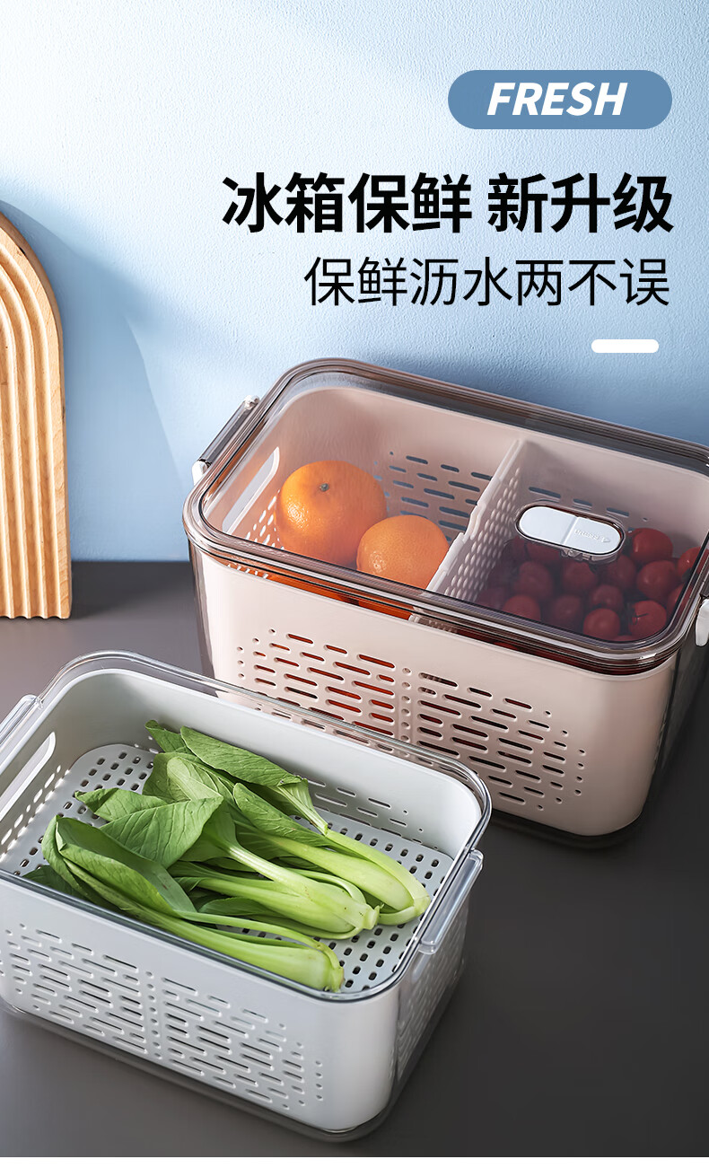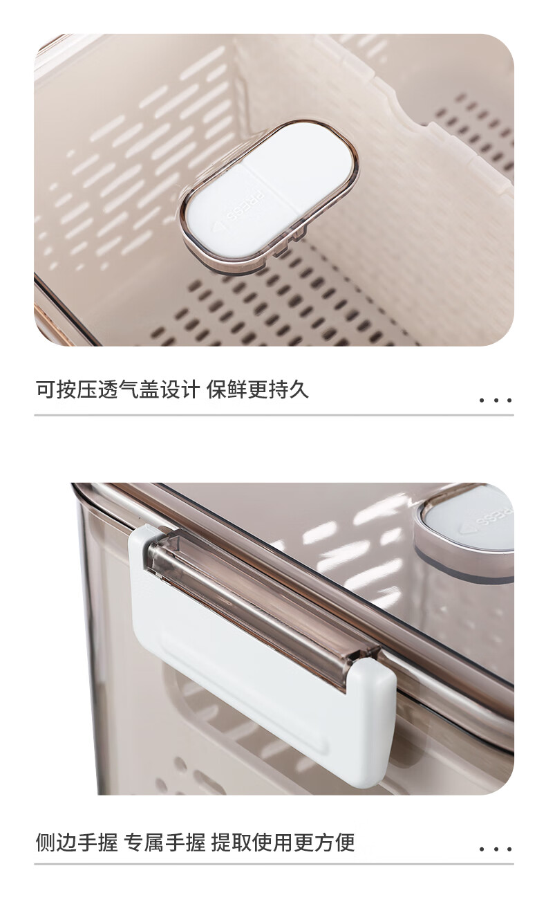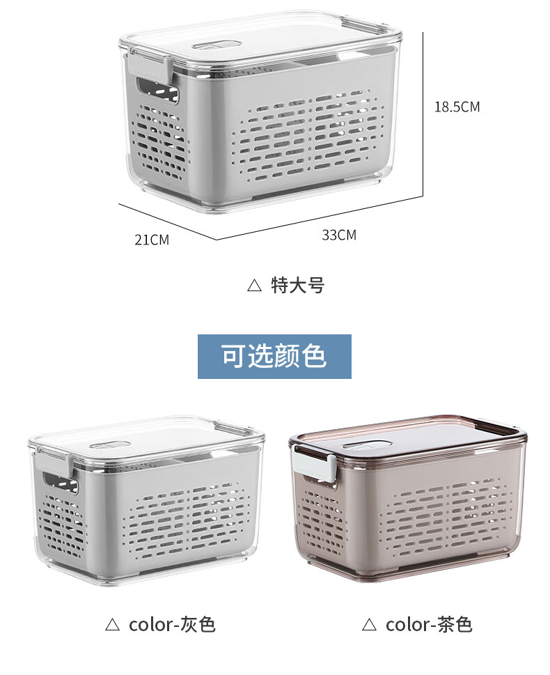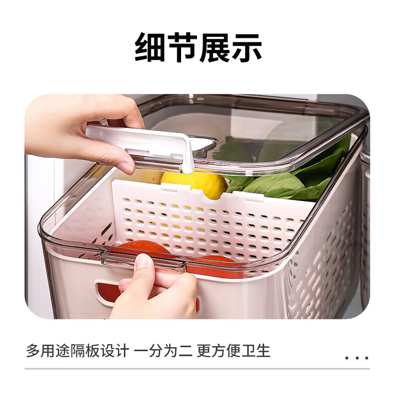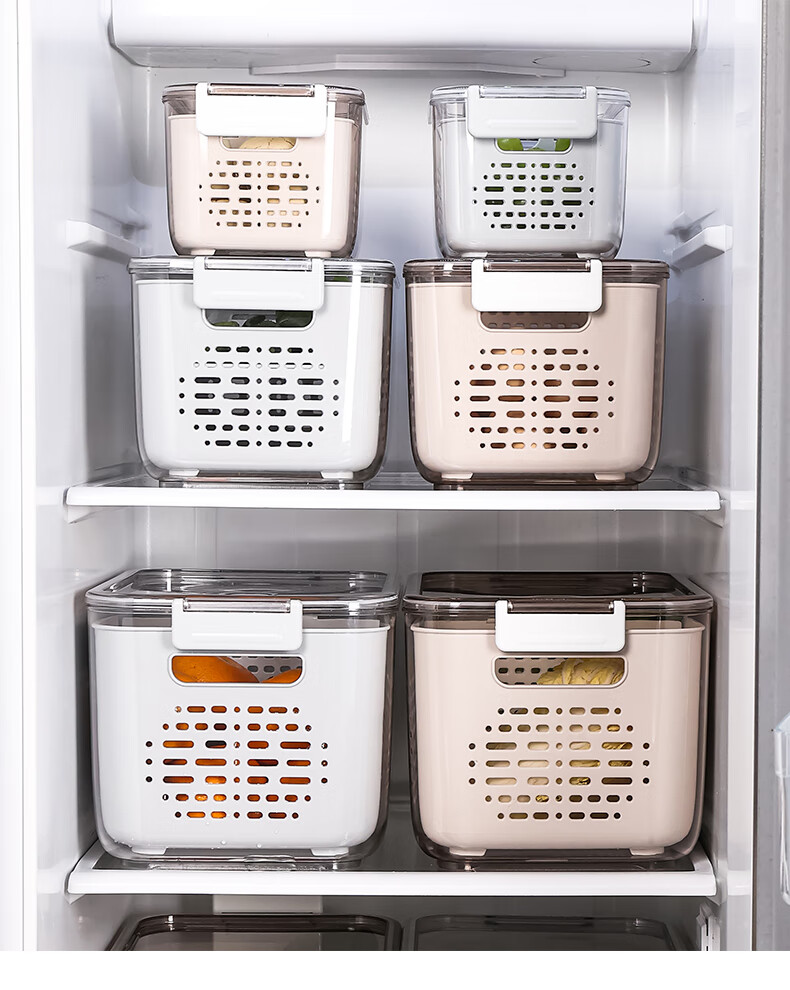 Mangong German quality drain basket with lid refrigerator storage box crisper drawer compartment vegetable and fruit refrigerator transparent brown medium size 1.8L large capacity