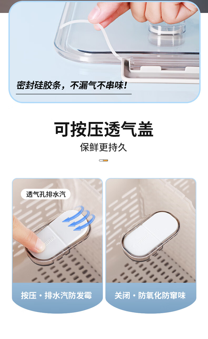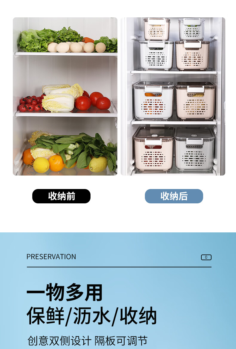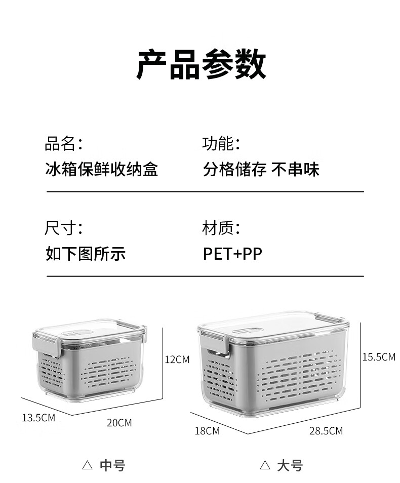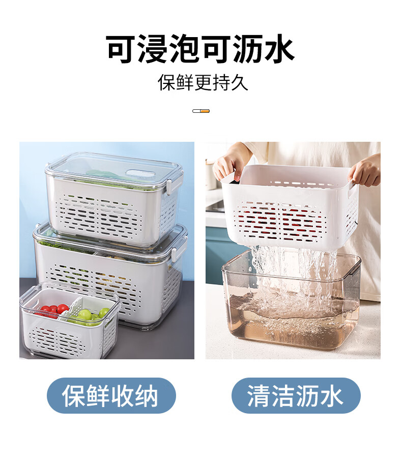 Mangong German quality drain basket with lid refrigerator storage box crisper drawer compartment vegetable and fruit refrigerator transparent brown medium size 1.8L large capacity