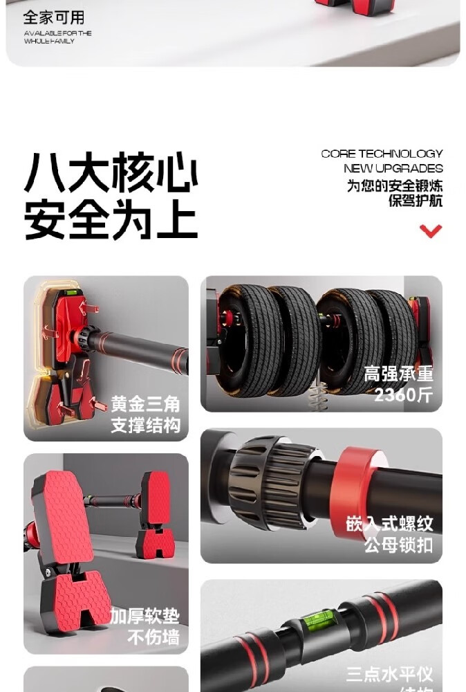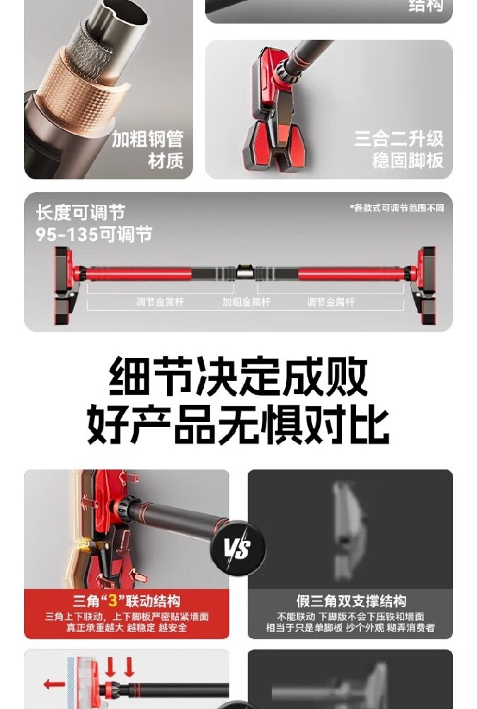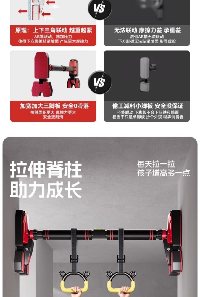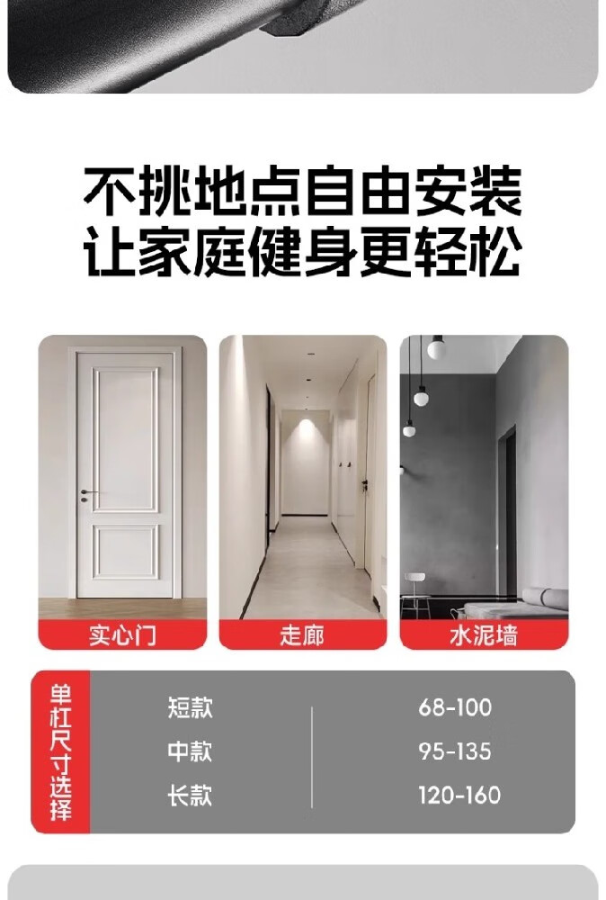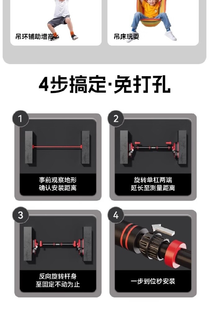 PINJIAN door-mounted horizontal bar for home indoor children's punch-free wall pull-up device hanging ring single pole fitness equipment tripod plate anti-slip model 96-145CM