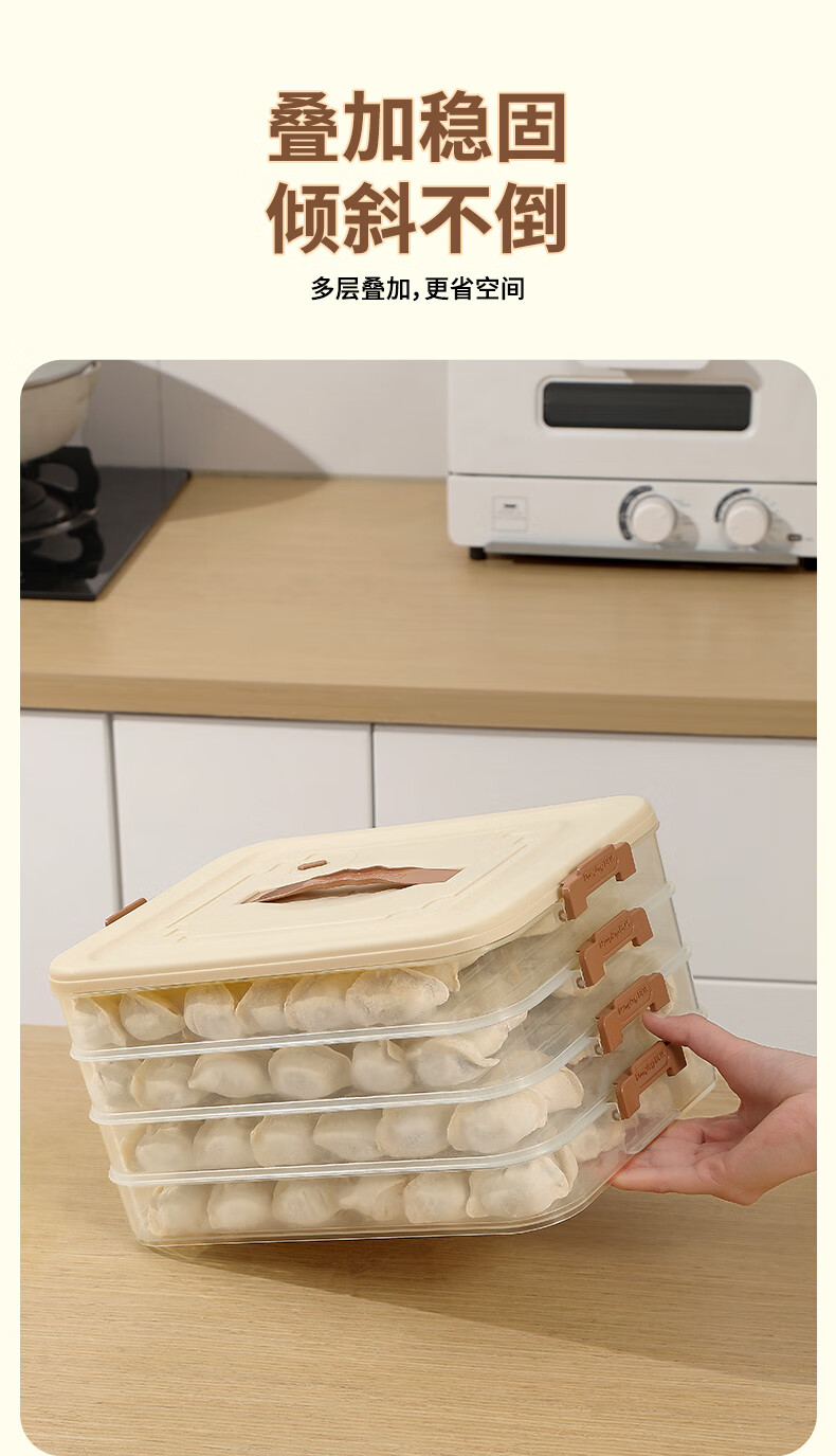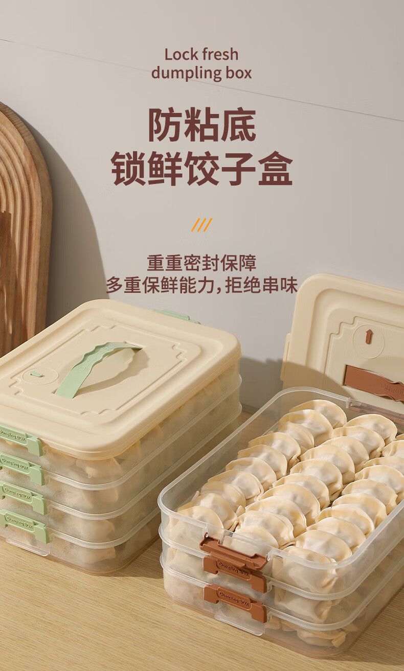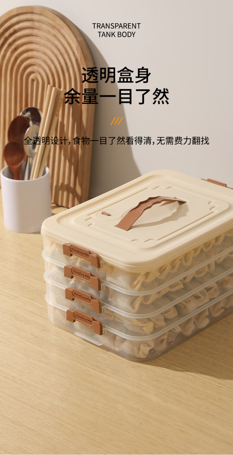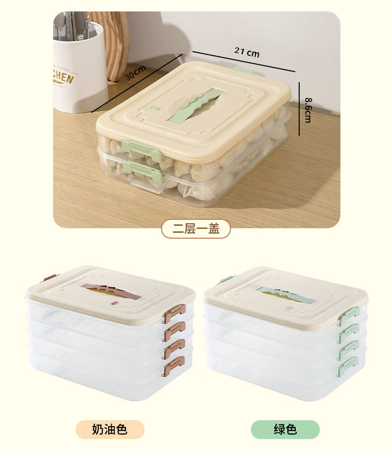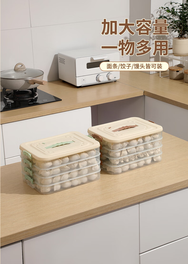 Baichao Dumpling Box Special Frozen Dumpling Box Refrigerator Storage Box Household Large Capacity Quick Frozen Chaos Frozen Fresh Box Multi-layer Material Sealed Fresh Green Four Layers One Cover Can Hold 320 Pieces Larger and Thicker