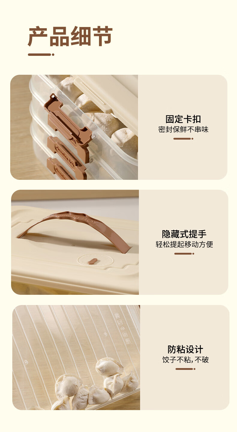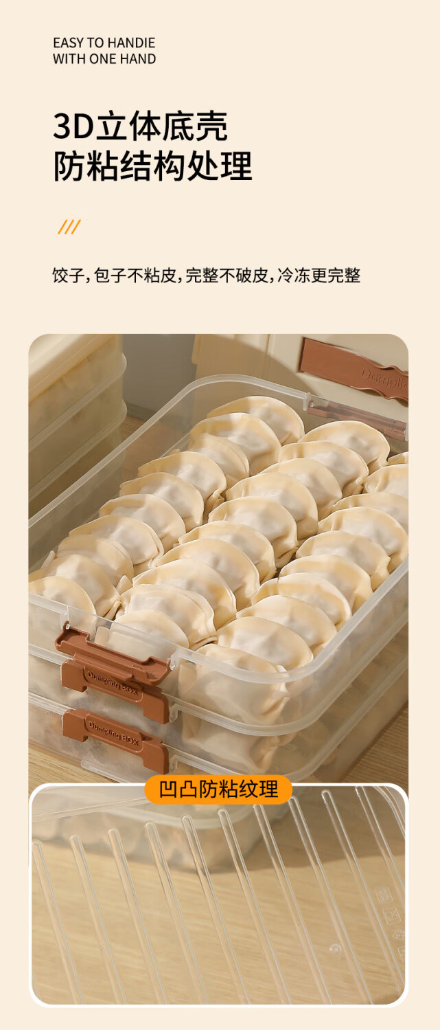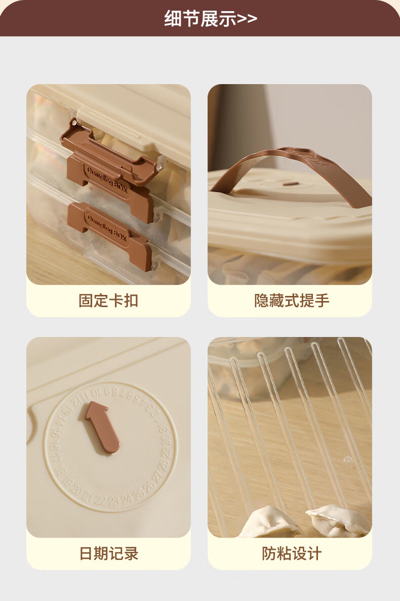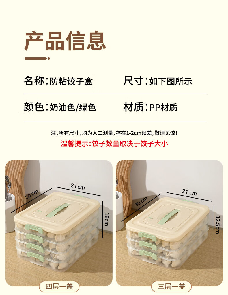 Baichao Dumpling Box Special Frozen Dumpling Box Refrigerator Storage Box Household Large Capacity Quick Frozen Chaos Frozen Fresh Box Multi-layer Material Sealed Fresh Green Four Layers One Cover Can Hold 320 Pieces Larger and Thicker