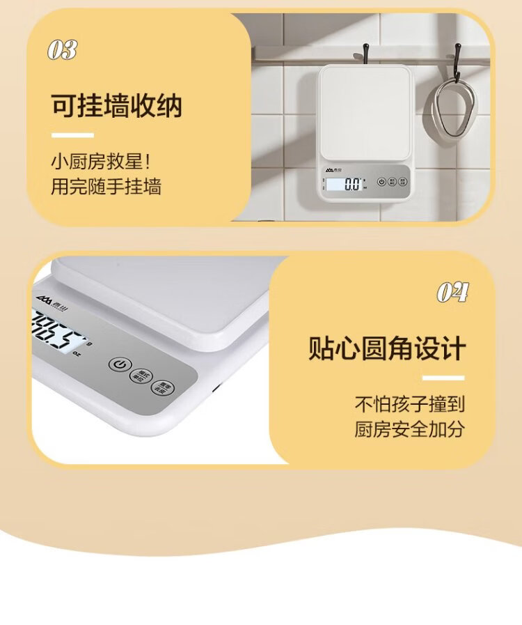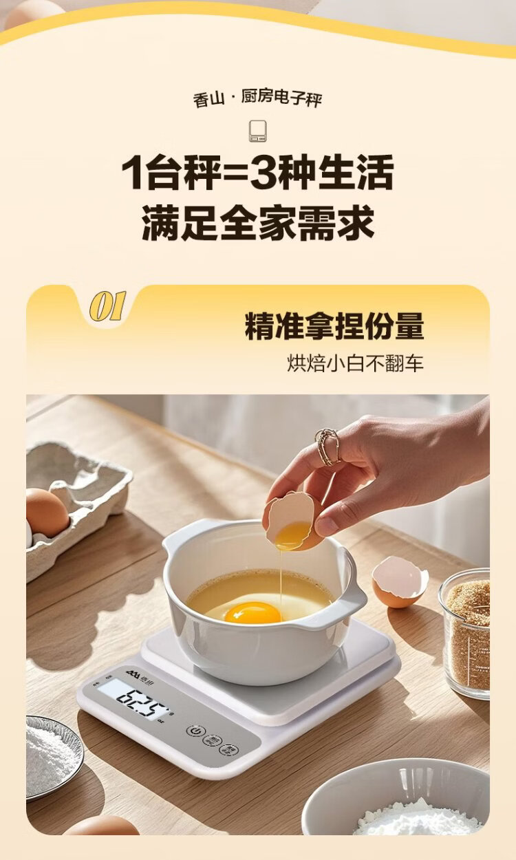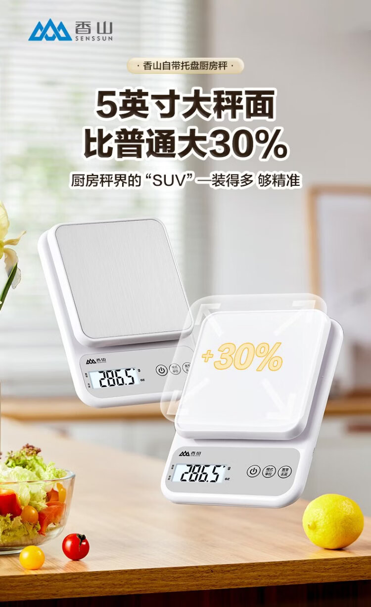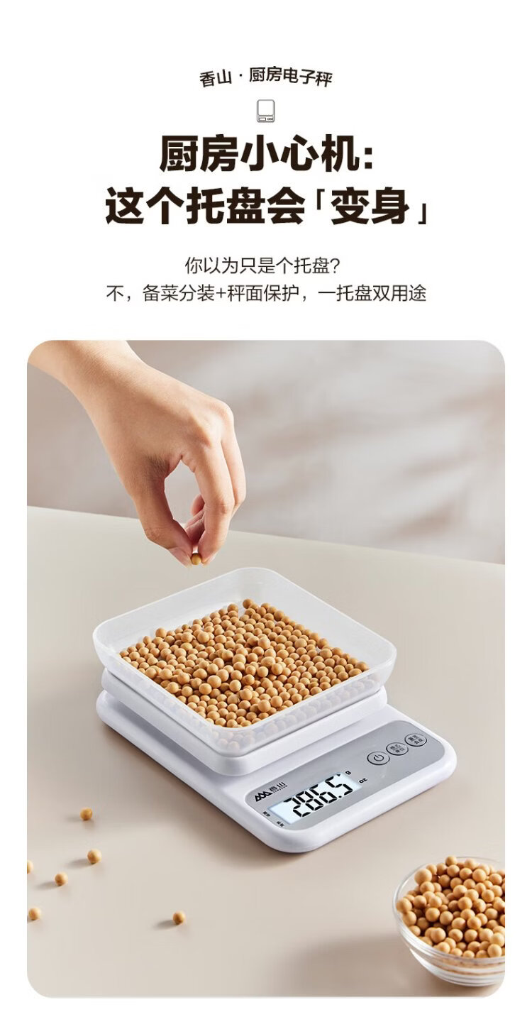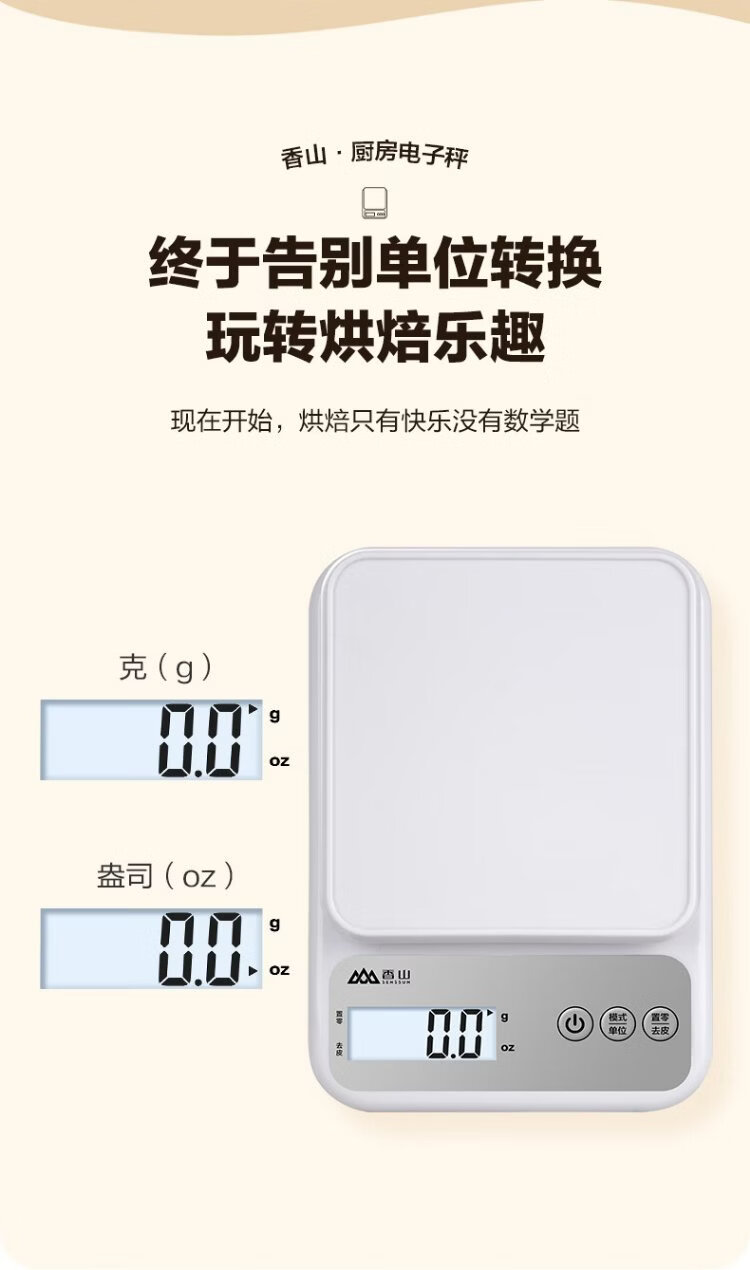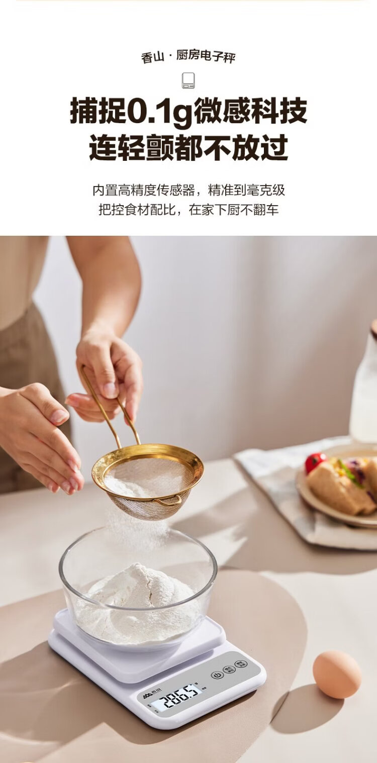 Xiangshan electronic scale, kitchen scale, gram scale, high-precision gram weight scale, household food scale, vegetable scale, tea baking cake gram scale, coffee scale, fruit scale, jewelry scale, plastic plate-battery model, measuring range 3kg-0.1g
