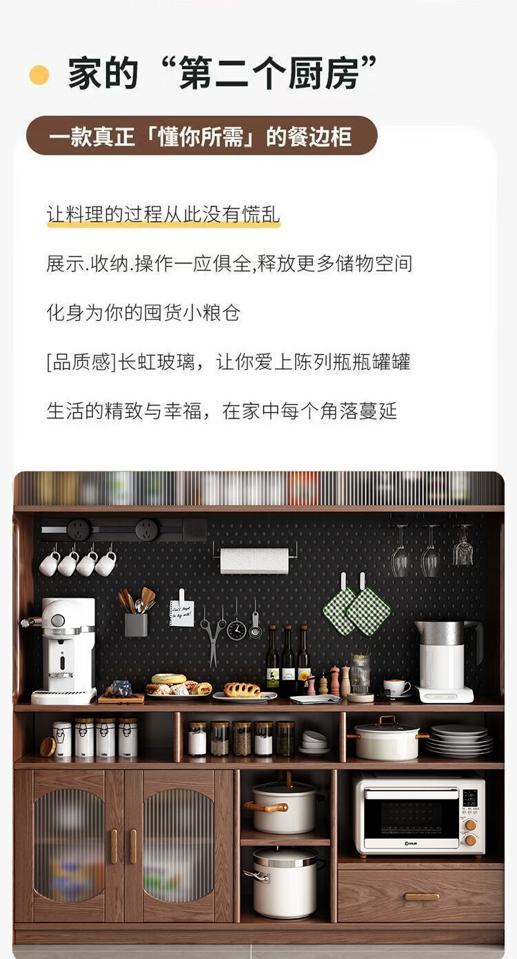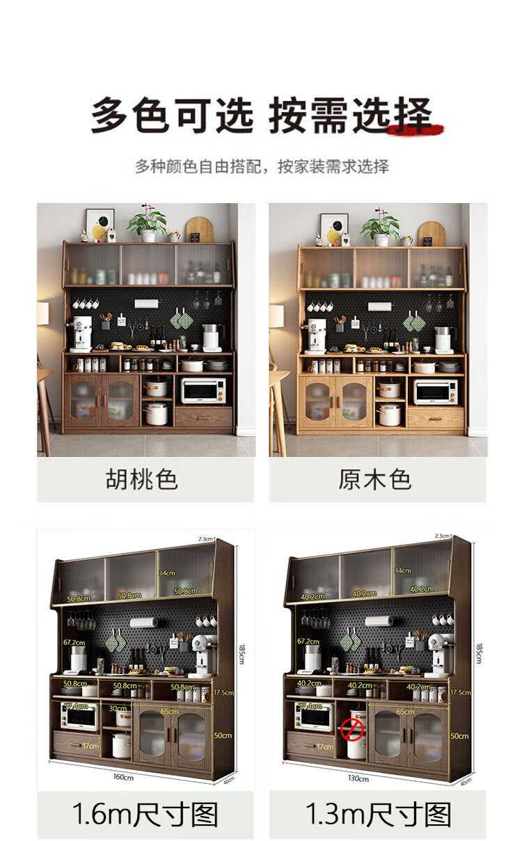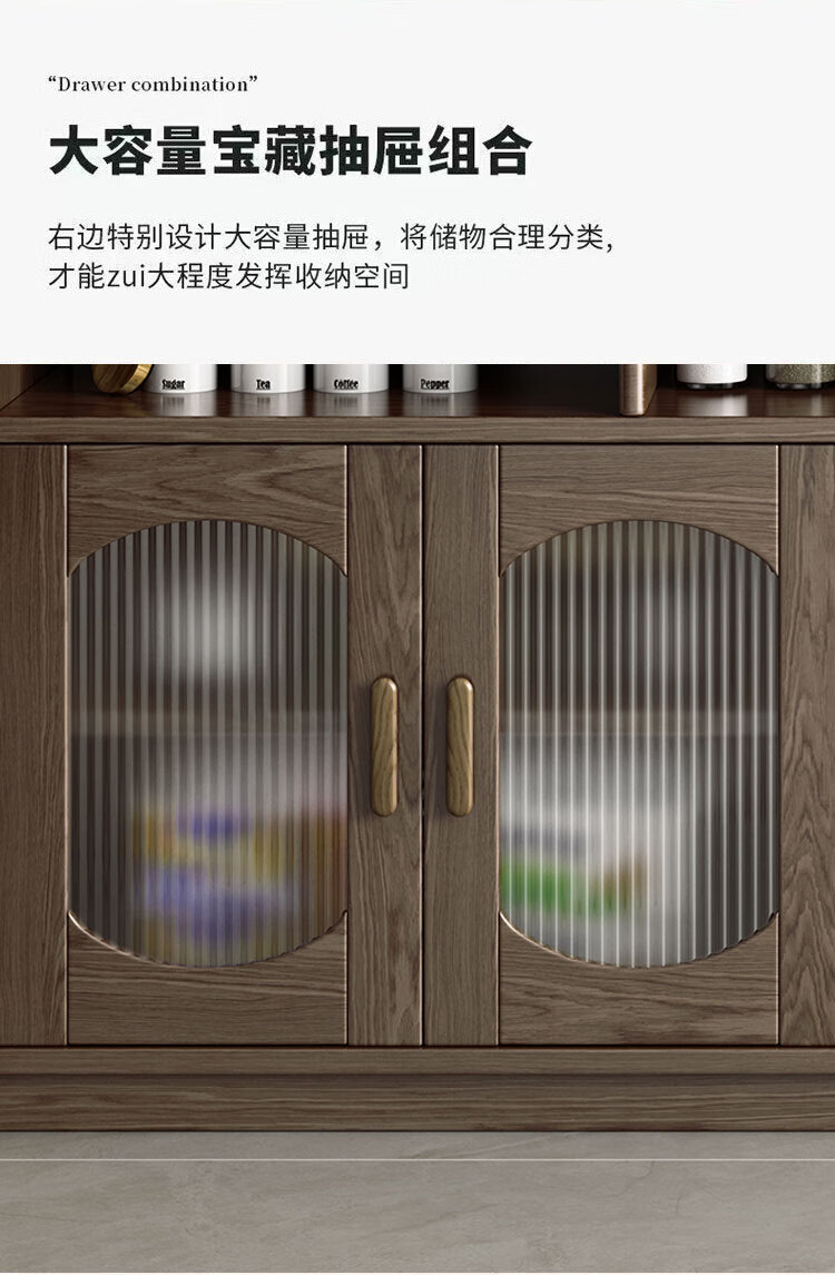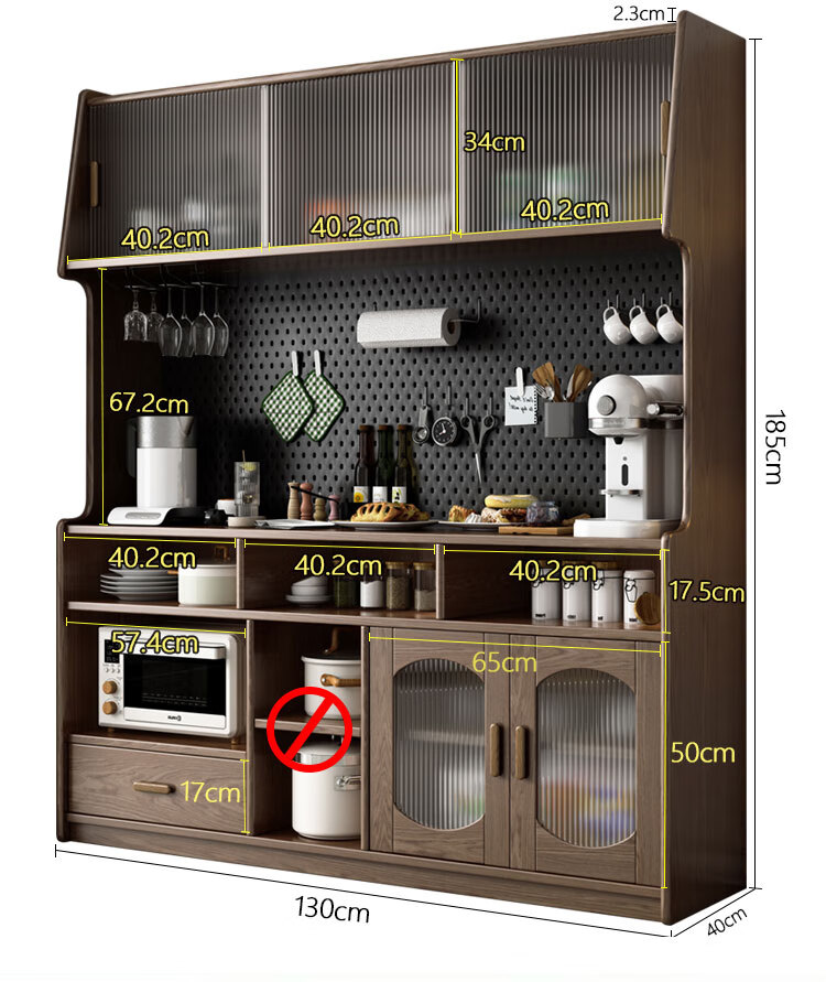 Solid wood sideboard against the wall integrated storage cabinet living room kitchen multi-functional storage cabinet cabinet wine cabinet large capacity walnut color solid wood sideboard 130cm long 40cm wide 185cm high (installation included)