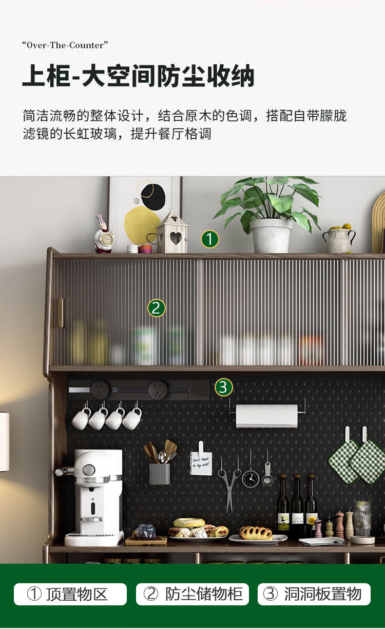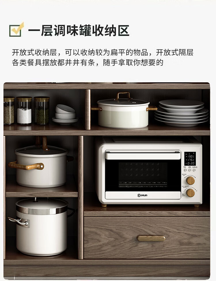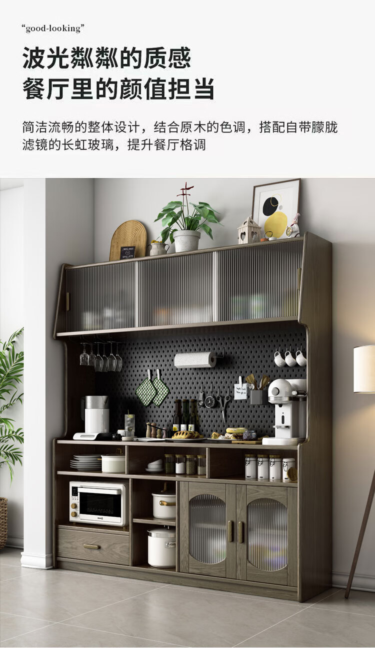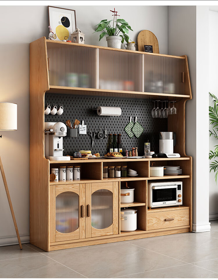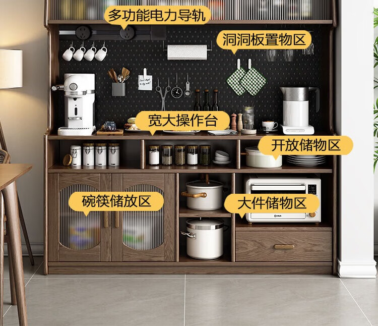 Solid wood sideboard against the wall integrated storage cabinet living room kitchen multi-functional storage cabinet cabinet wine cabinet large capacity walnut color solid wood sideboard 130cm long 40cm wide 185cm high (installation included)
