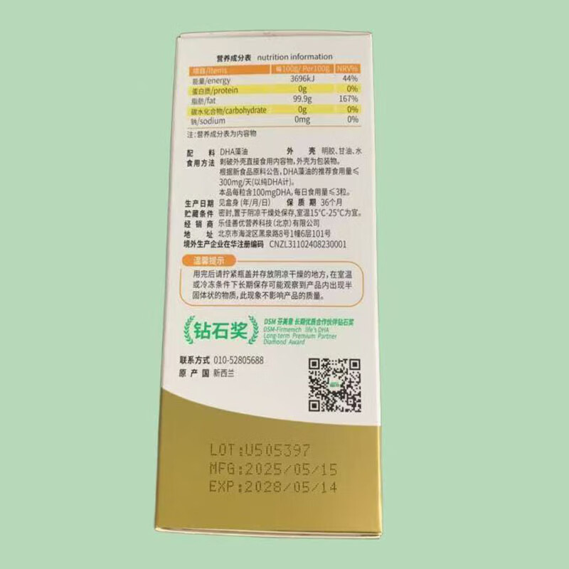 Lejiashanyou DHA Algae Oil Soft Capsules 80 capsules Baby and Children DHA Algae Oil Original Imported 0 Years Old and Over Two Bottles 160 Capsules Stocking Pack Official Authentic Pharmacy Direct Sales