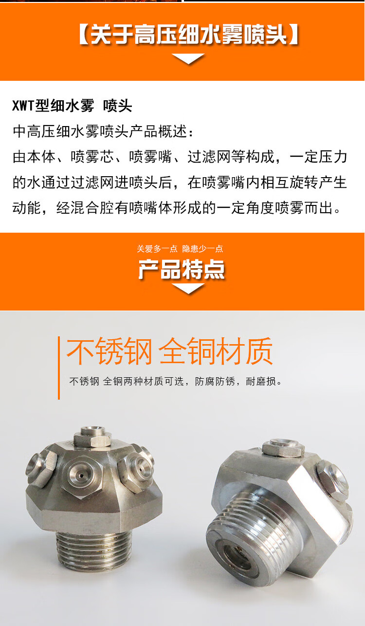 Wen Yijia XWT type cooling, dust removal and firefighting medium and high pressure fine water mist nozzle, atomizing nozzle, centrifugal umbrella type water, copper material R1/2 (DN15) 4 points