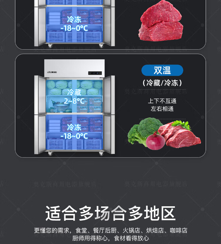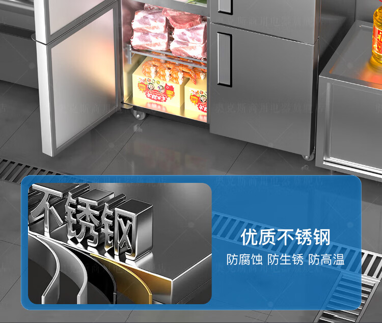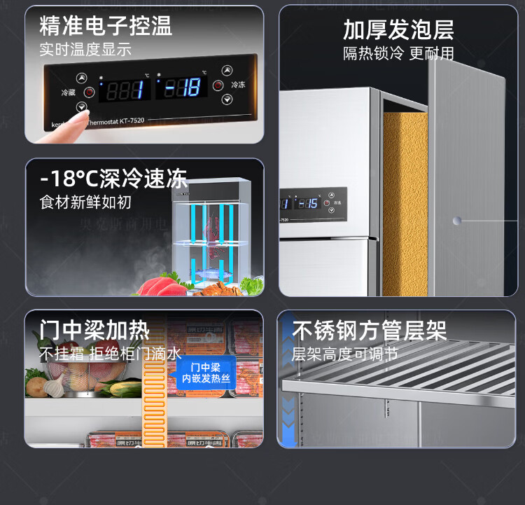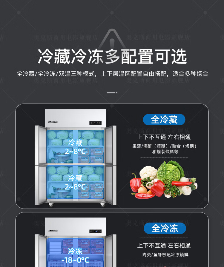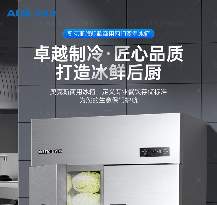 AUX four-door refrigerator commercial refrigeration and freezing dual-temperature freezer six-door large-capacity refrigerator catering kitchen hotel vertical stainless steel fresh-keeping cabinet four-door refrigerator refrigeration display cabinet economical four-door | copper tube refrigeration upper freezing and lower refrigeration-15