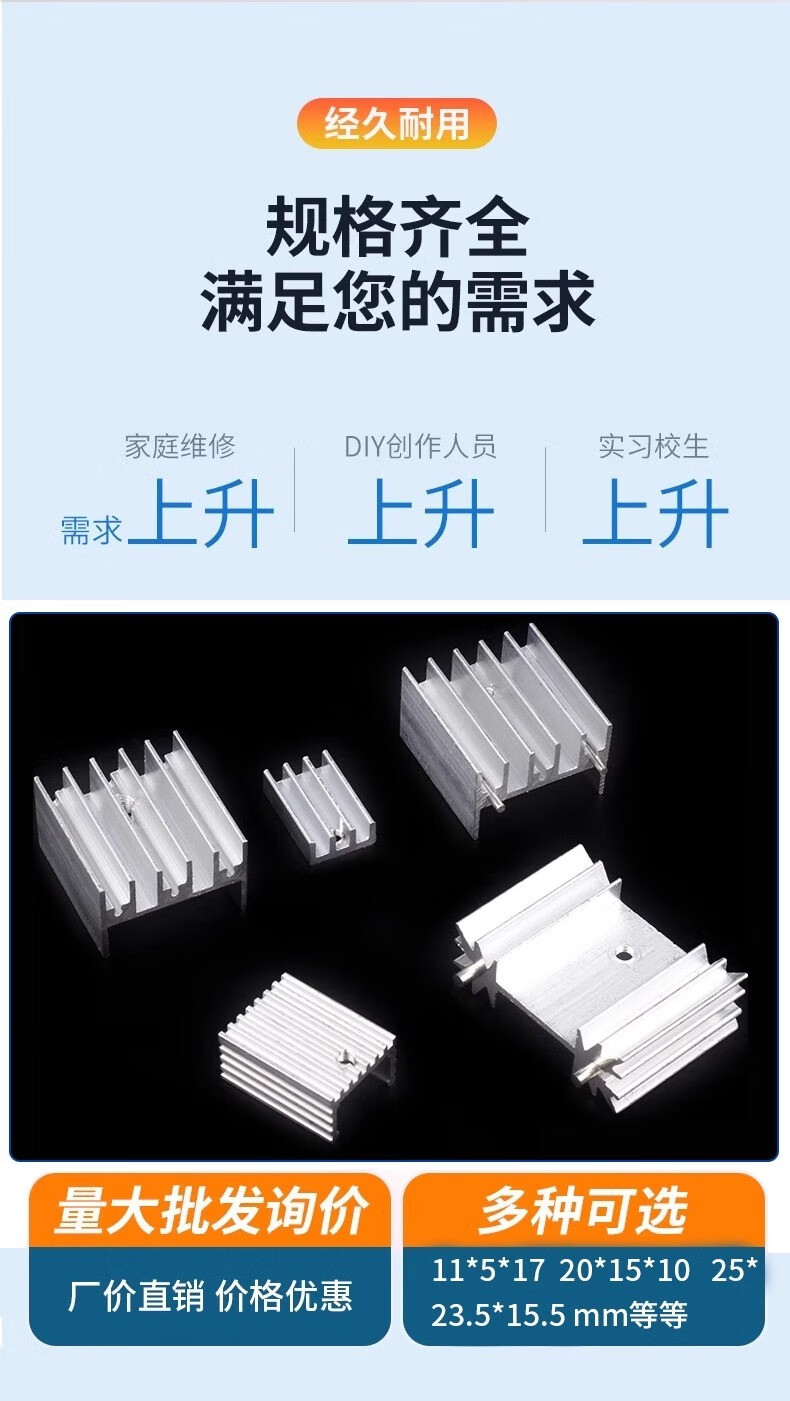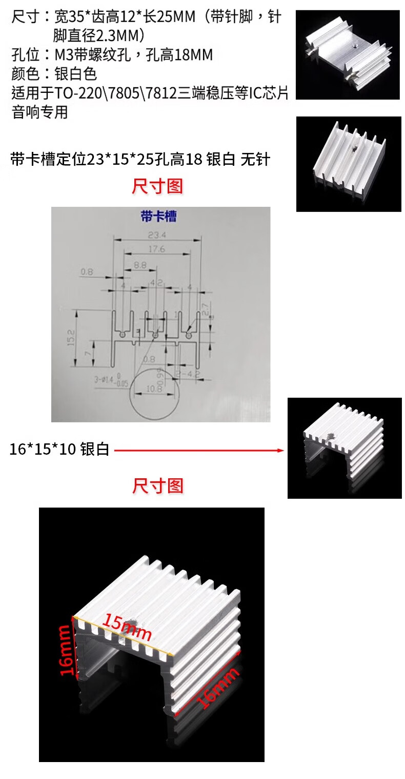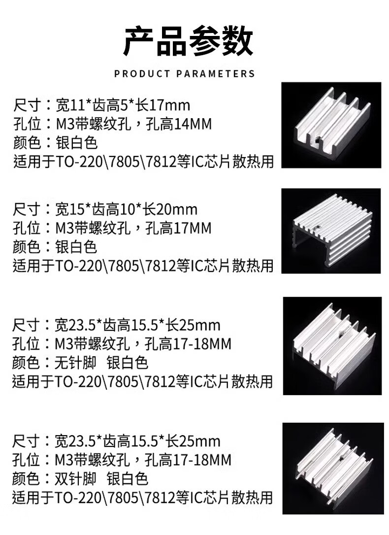 Aluminum heat sink TO-220 transistor MOS voltage regulator tube special for electronic heat sink 25*23.5*15.5 11*5*17 silver white (10 pieces)