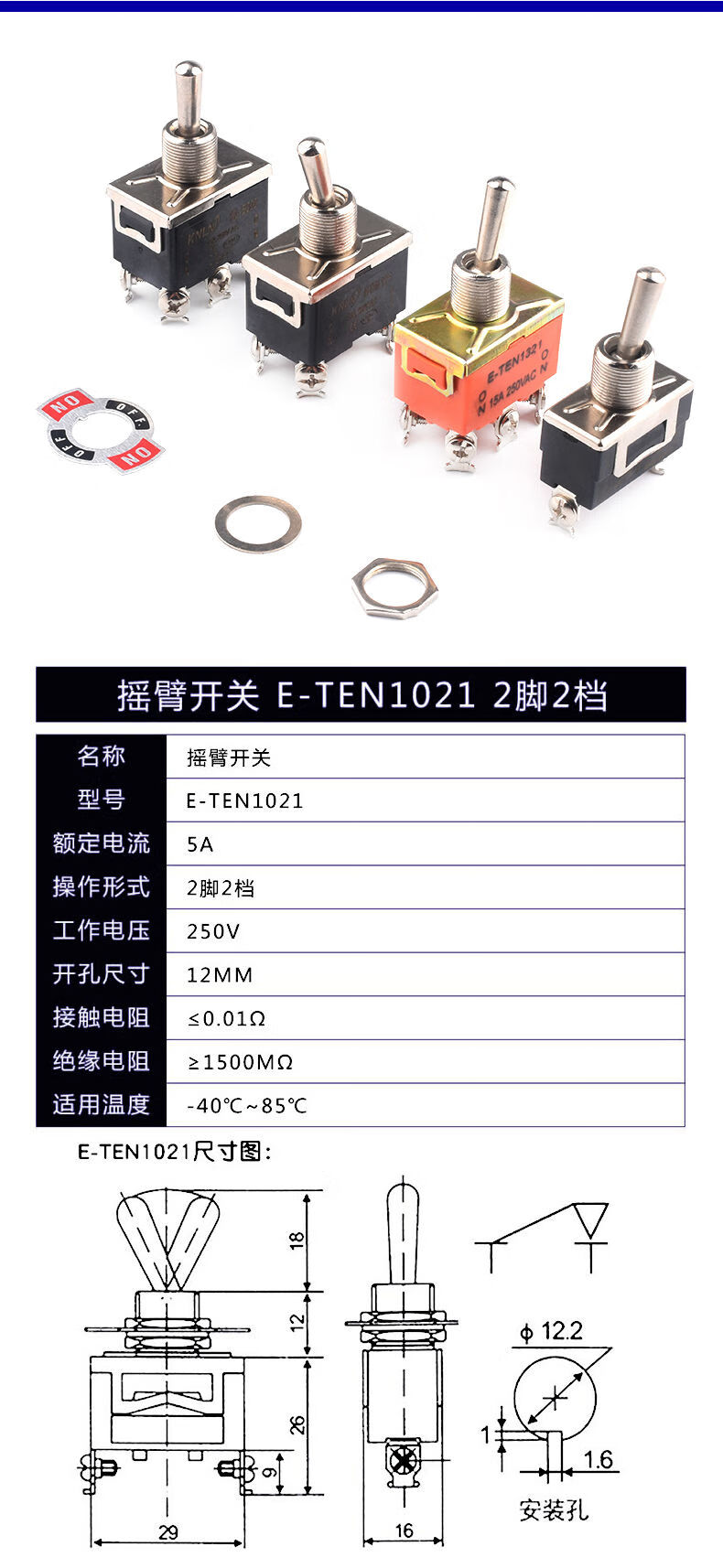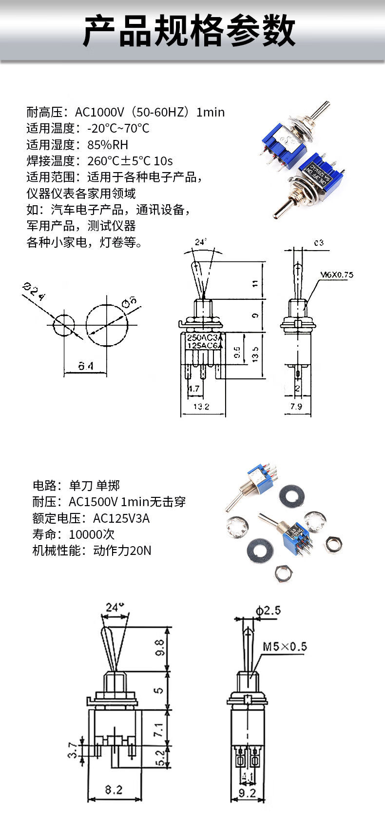 SMTS/MTS-102 103 202 203 toggle switch 3/6 feet 2 gears three gears 5mm shaking rocker rocker red MTS-203 6 feet 3 gears