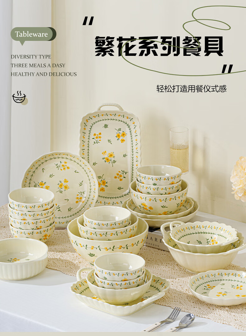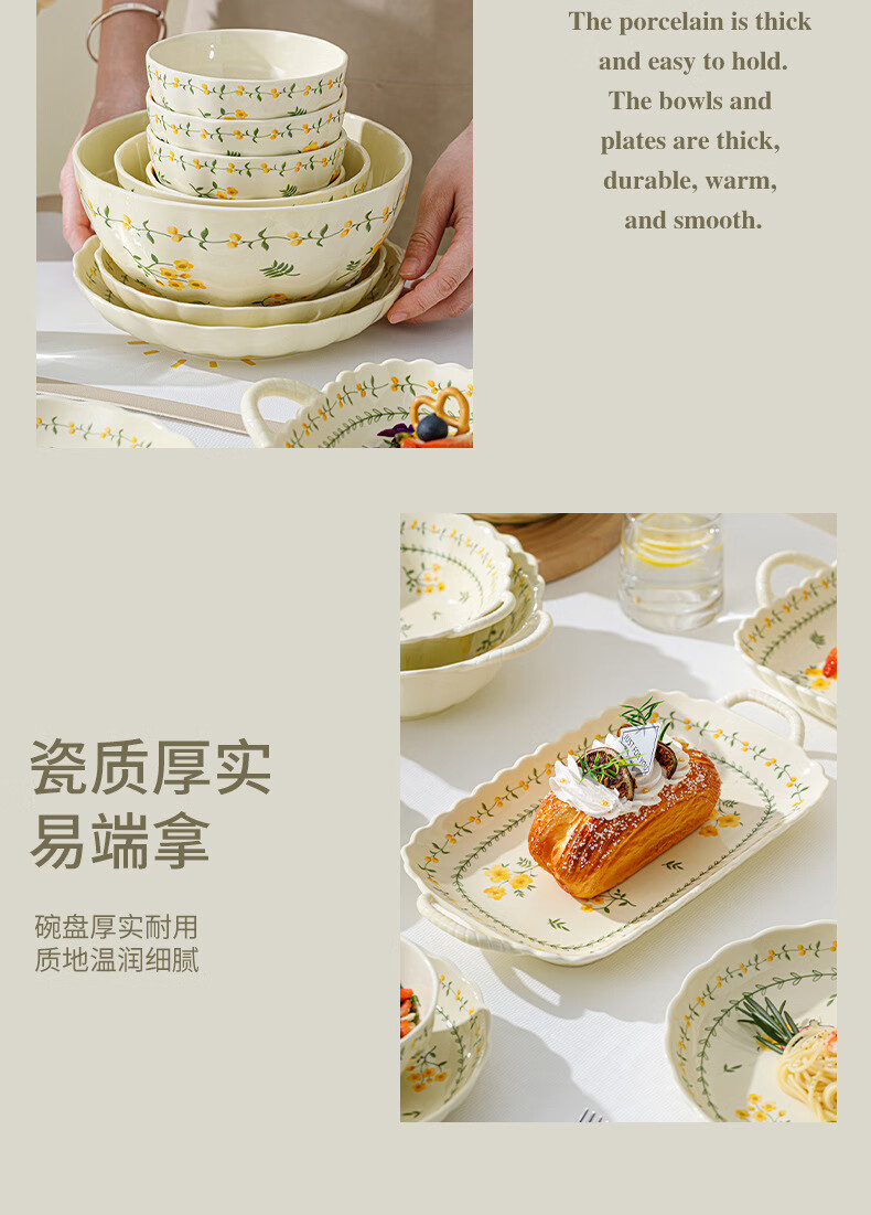 Garson Fresh Pastoral Style Underglaze Colored Bowl and Plate Set Ceramic Tableware Home Ceramic Bowl and Plate Tableware Set for Housewarming as a Housewarming Gift Chunyi Meng-4.7-inch Rice Bowl 1 Pack