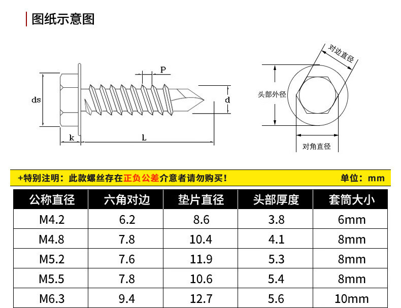 Shantou Lincun external hexagonal drill tail screw color steel tile dovetail screw self-tapping self-drilling screw tapping iron sheet steel plate M4.2M4.8 M4.2*20 100 pieces free M8 sleeve