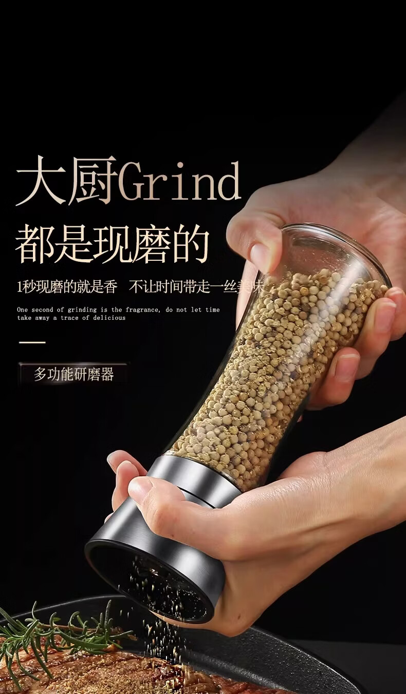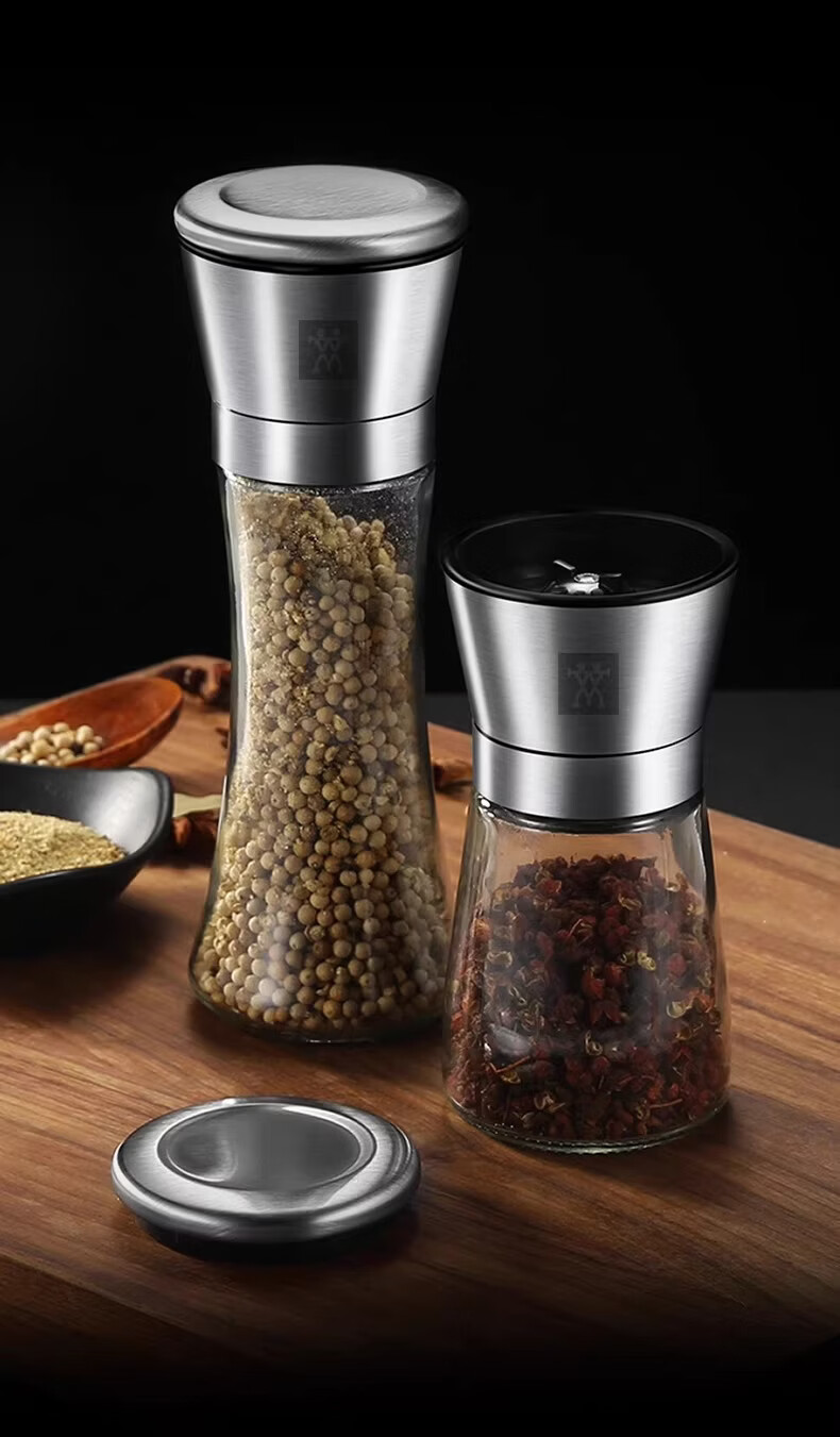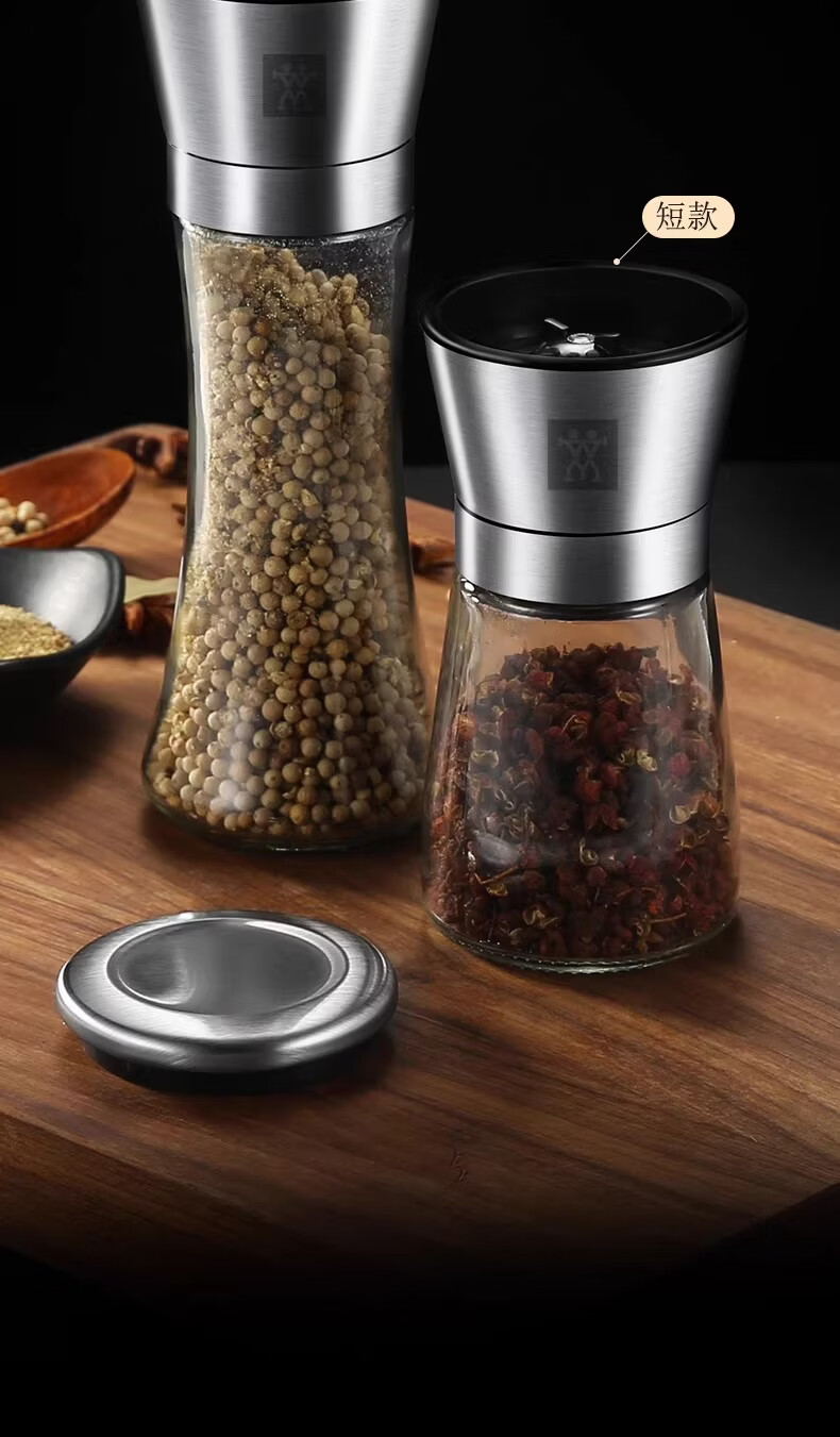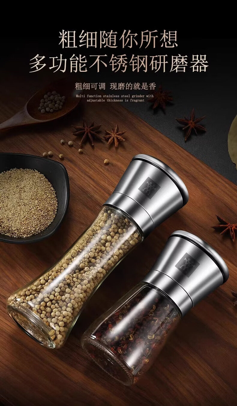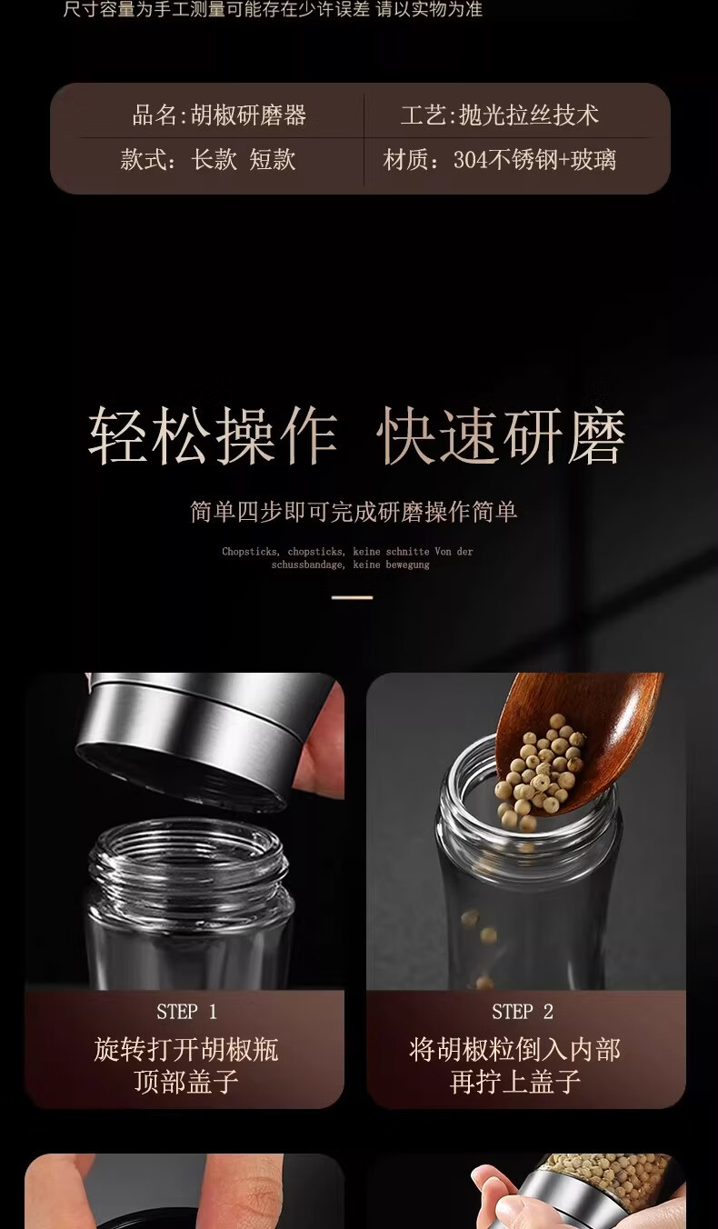 German Liren 304 stainless steel grinder kitchen household freshly ground sea salt and black pepper grinding bottle seasoning bottle jar double short grinder 2 pieces