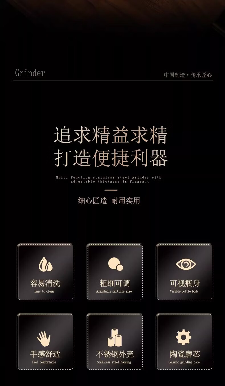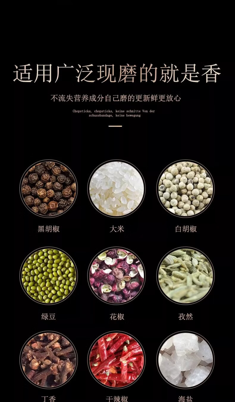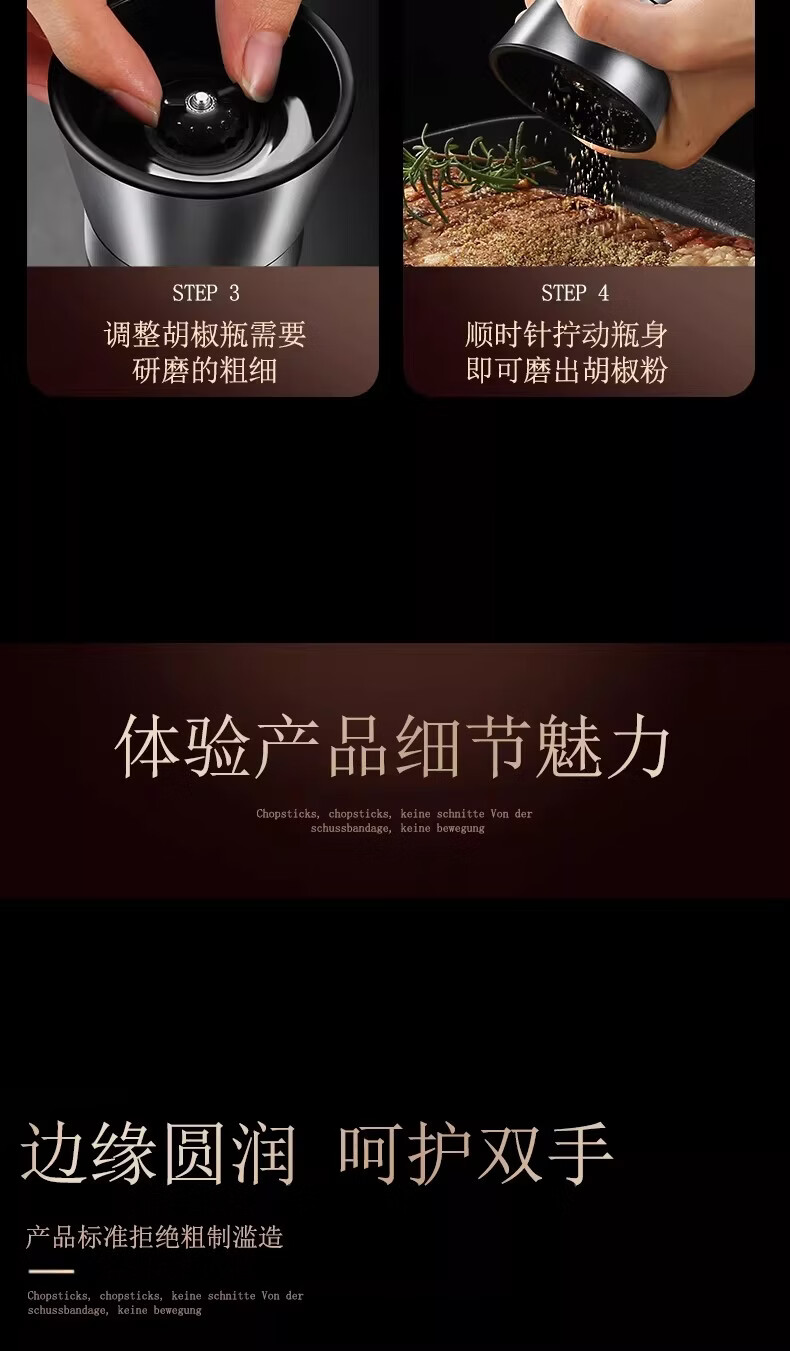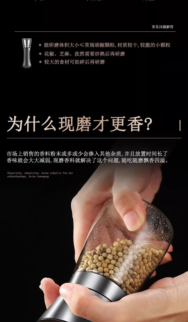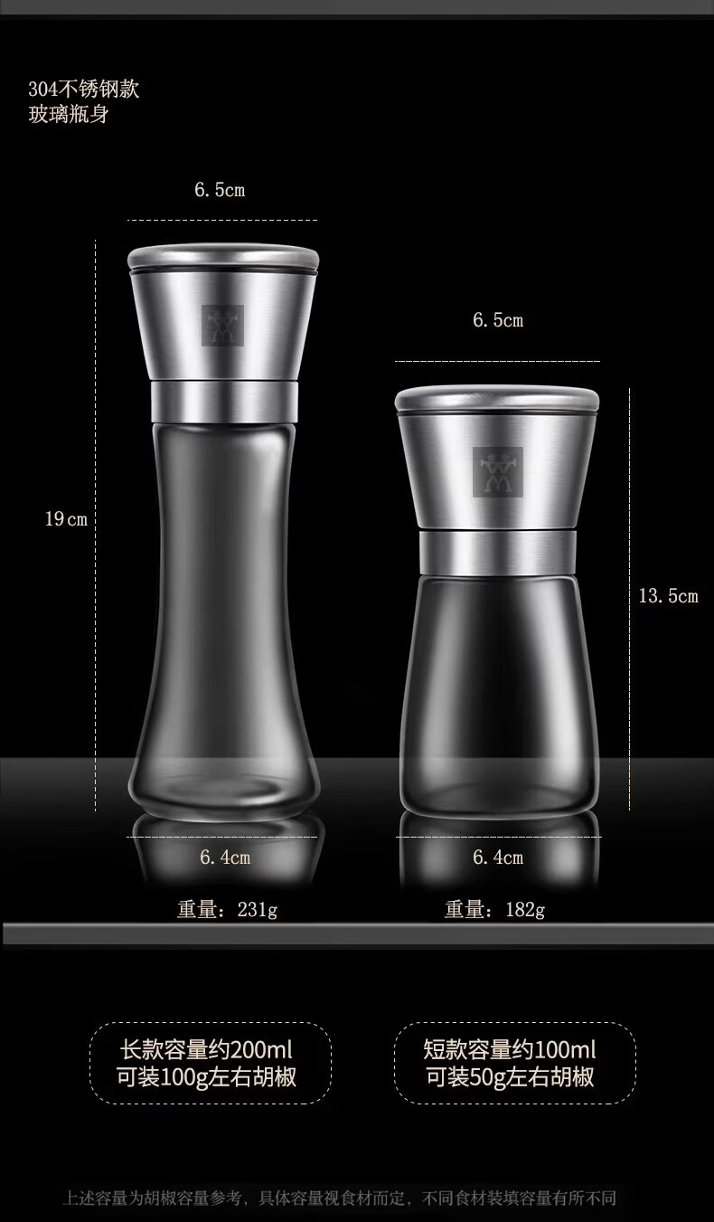 German Liren 304 stainless steel grinder kitchen household freshly ground sea salt and black pepper grinding bottle seasoning bottle jar double short grinder 2 pieces
