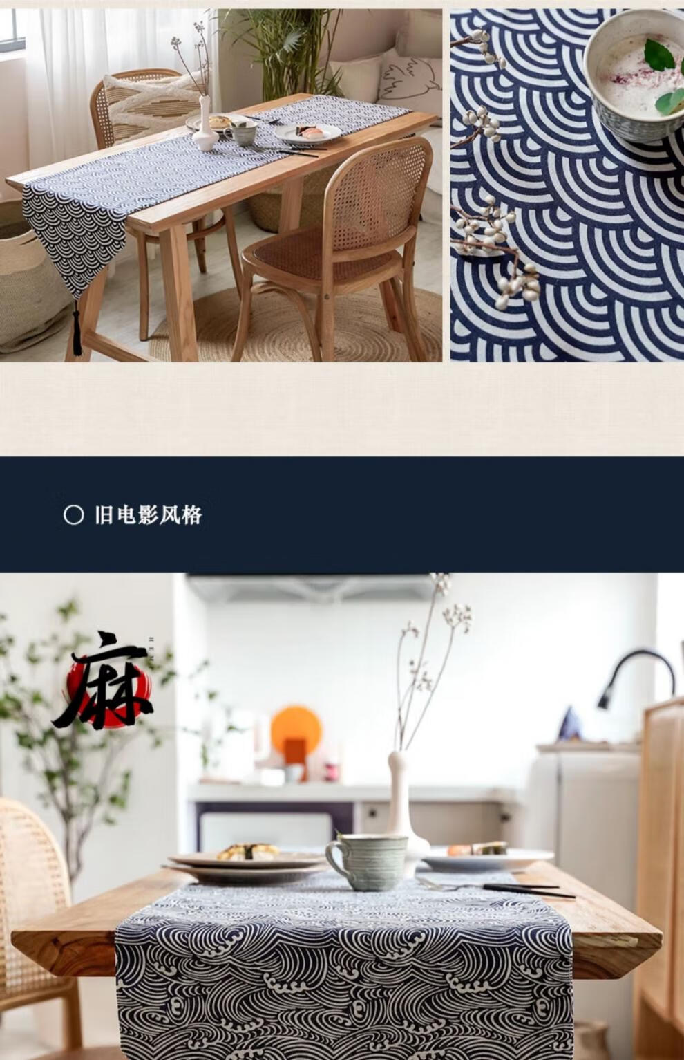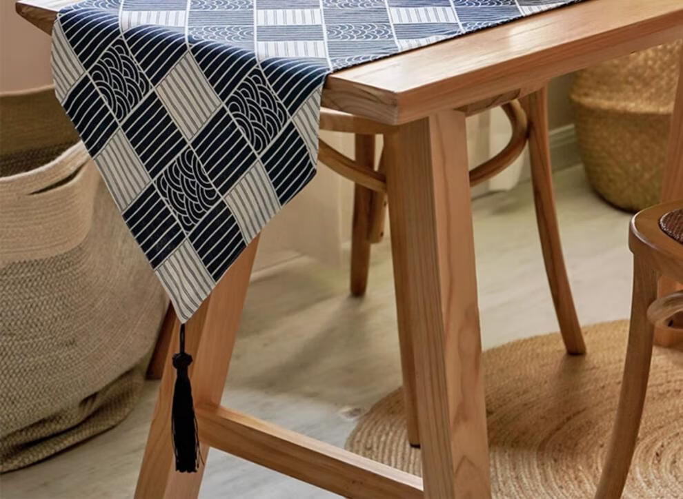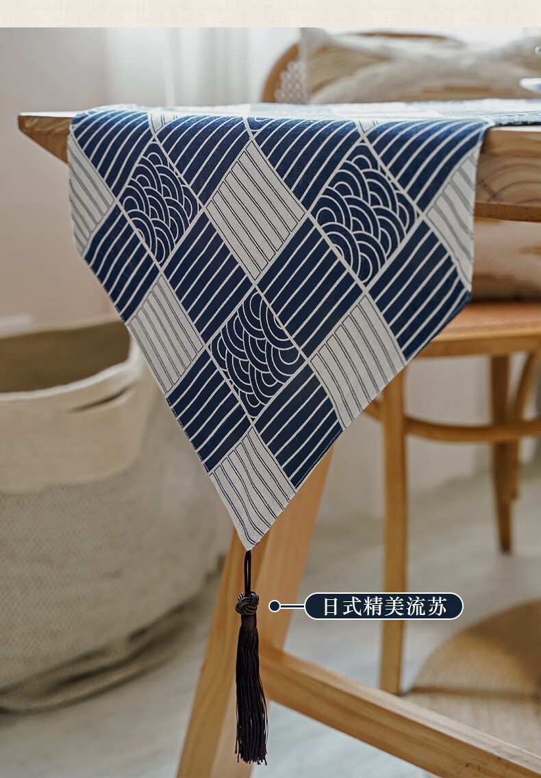 Jinko Japanese table runner Japanese Japanese style cotton and linen tablecloth modern simple TV cabinet coffee table sideboard tea flag table Japanese style plaid table runner double layer 33*180cm suitable for 120~140 long tables
