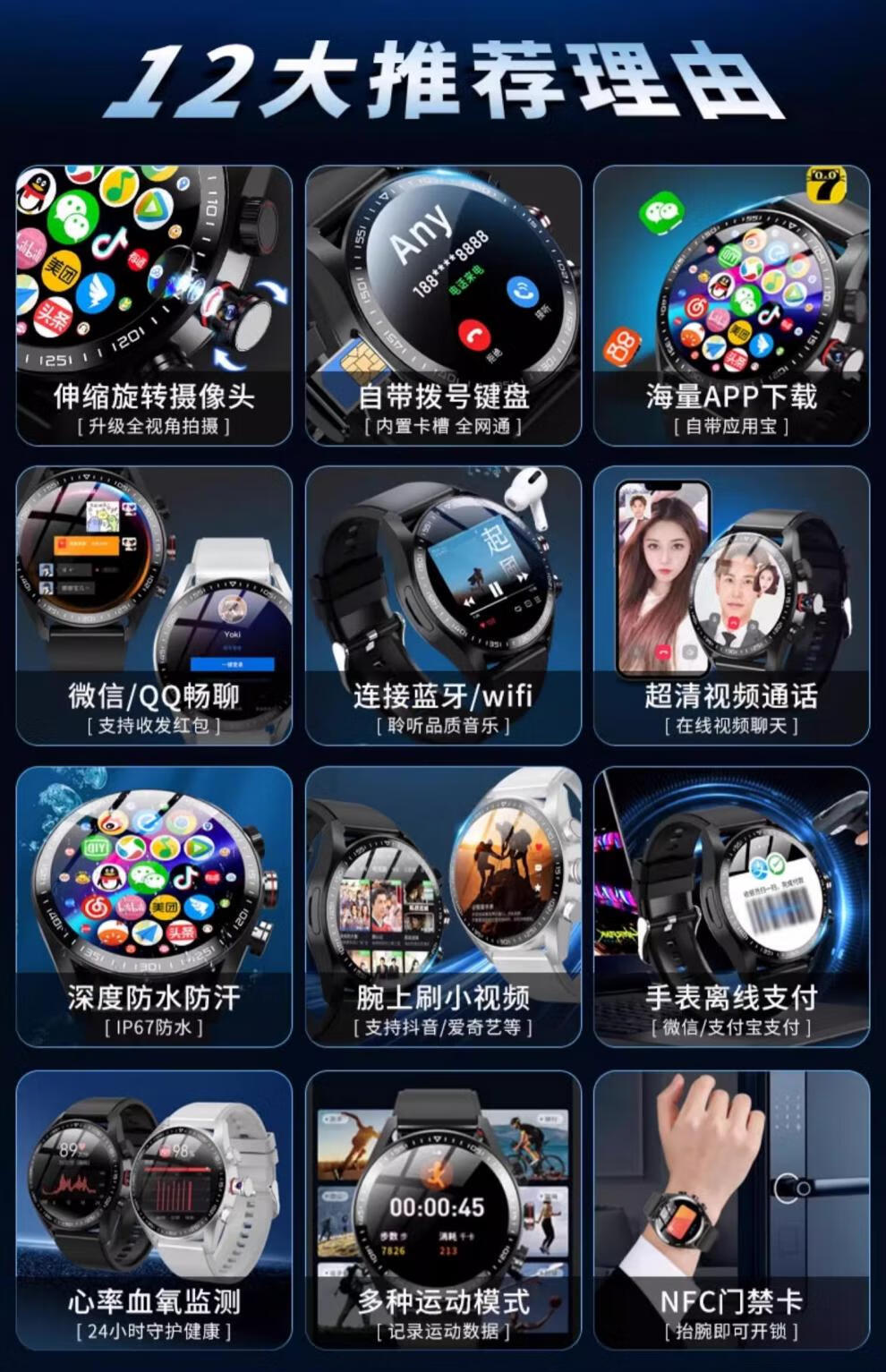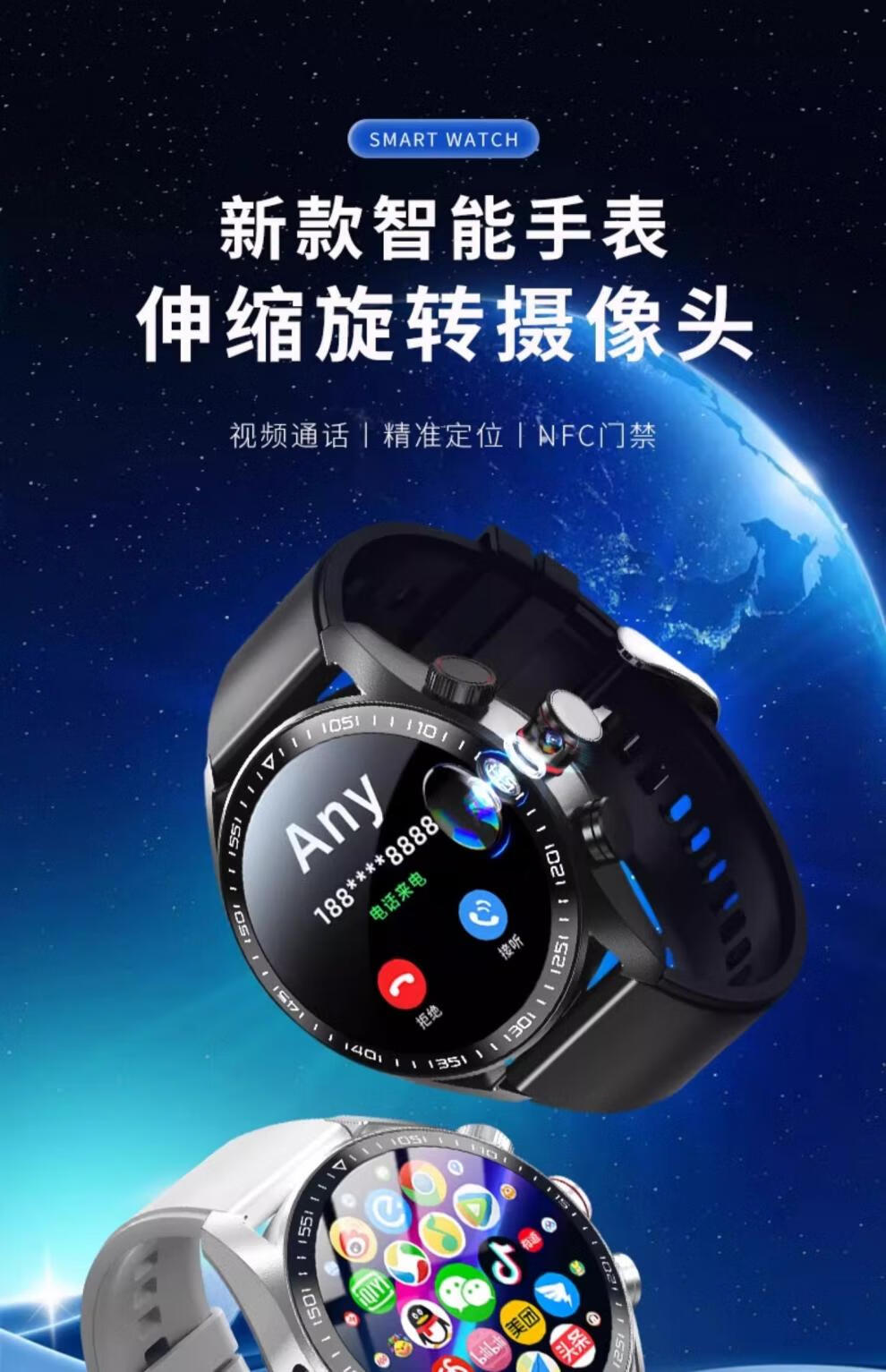 HKMW Huaqiangbei smart watch is suitable for the new large-screen smart watch, which can be inserted into the card WiFi Internet APP to download NFC for men, women, adults and students to call Huaqiangbei smart watch. Top version - black steel belt 16+256G 3.99AMOL GPS + cellular network