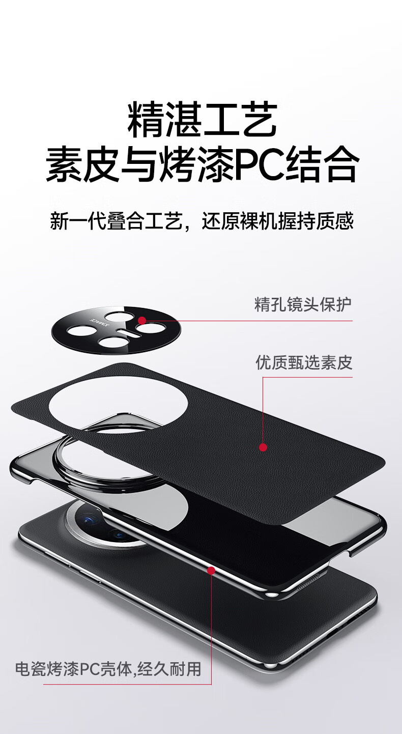 Shibelo is suitable for Huawei mate70pro mobile phone case, high-quality plain leather, bare metal feel, mate70 protective cover, lens protection, light and anti-fall, RS Extraordinary Master, simple business model, Mate70RS Extraordinary Master, obsidian black, plain leather case