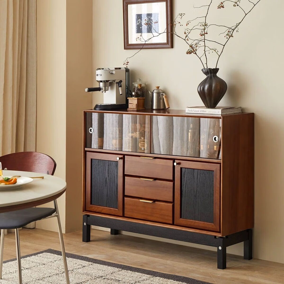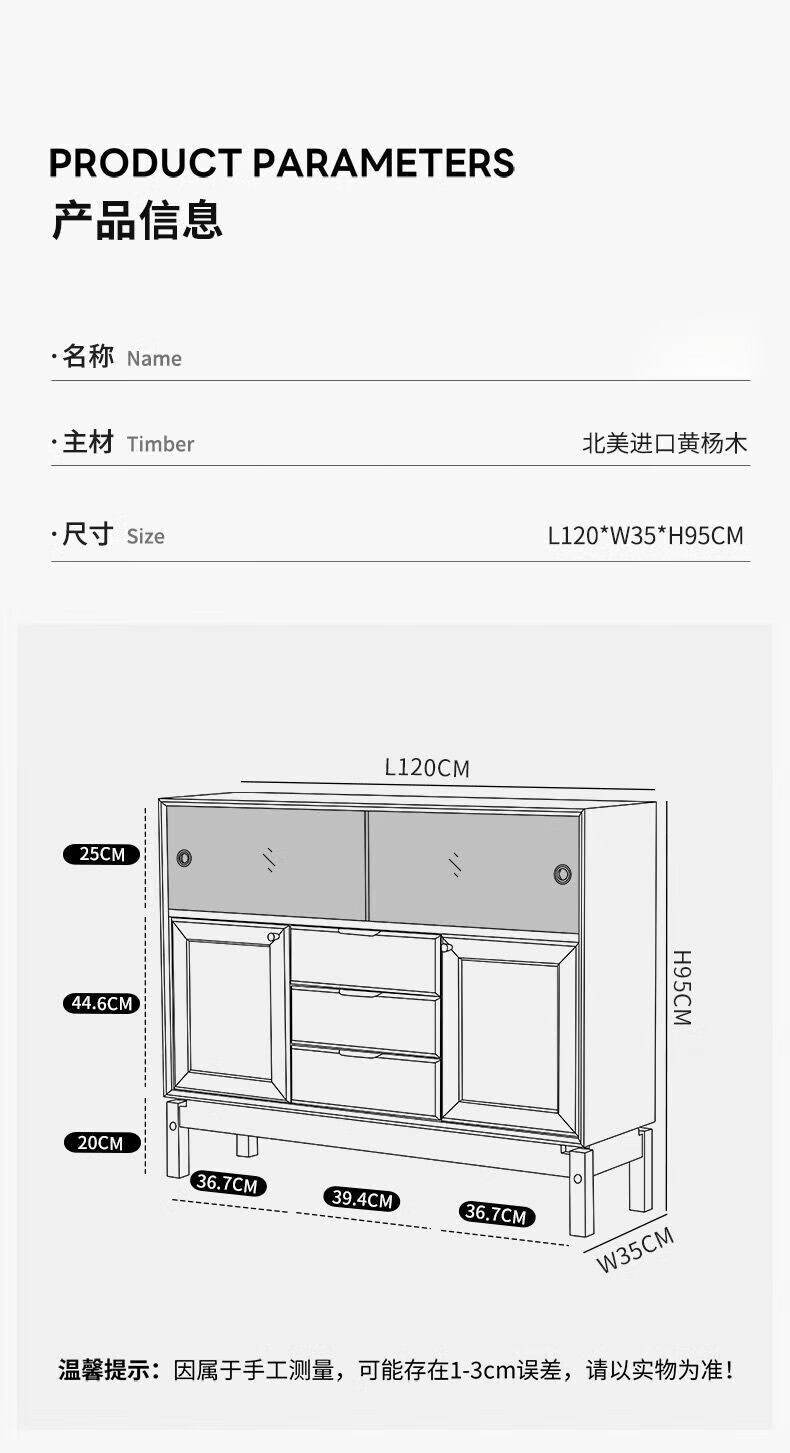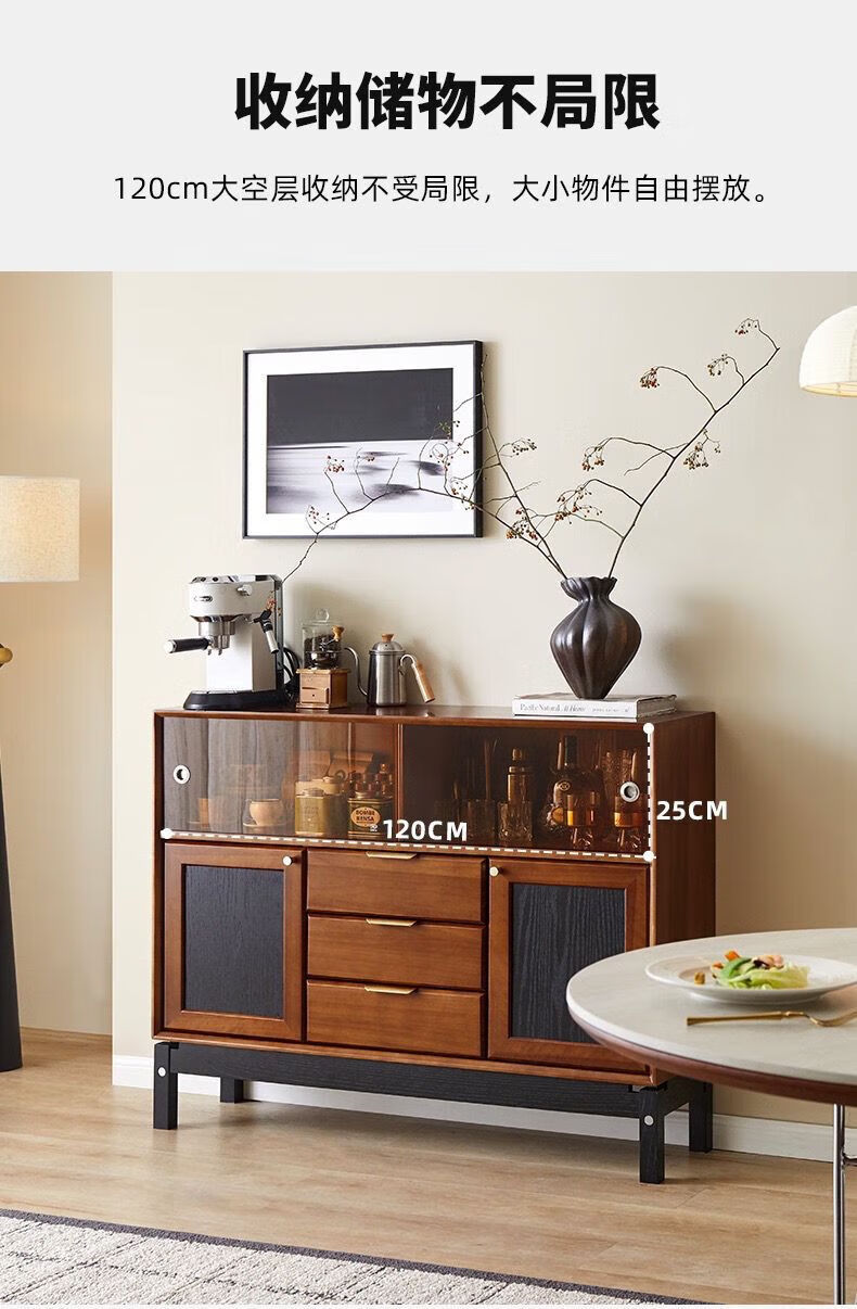 Dingsha mid-century solid wood sideboard small apartment living room wall storage cabinet storage cabinet home retro dining table sideboard sideboard pine wood 100-40-95