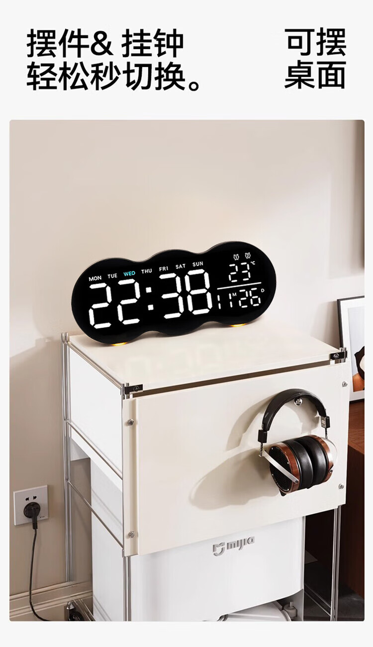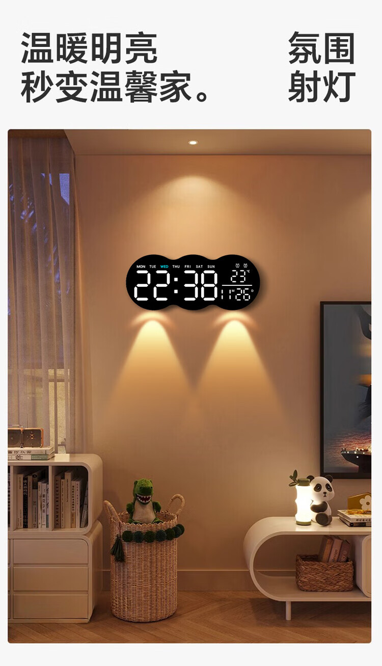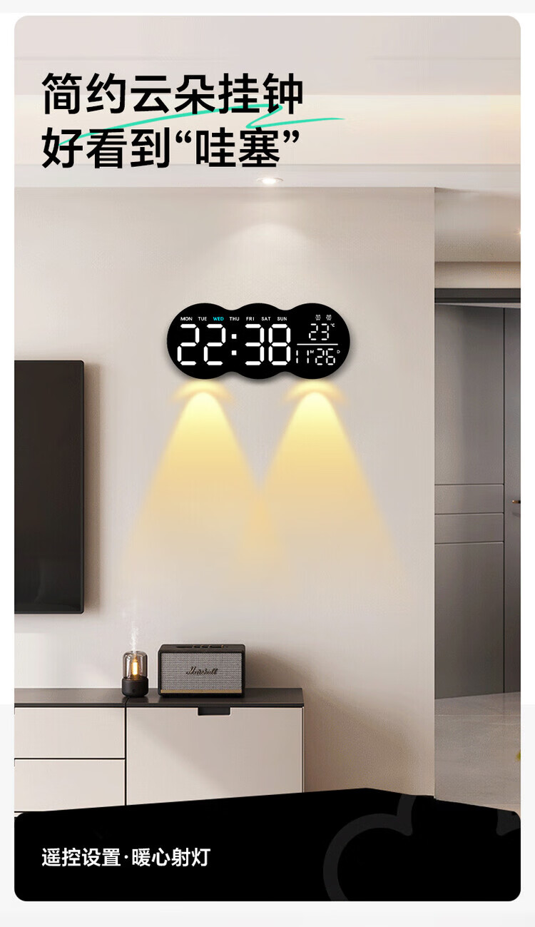 Allied wall clock living room 2025 new home high-end creative Internet celebrity silent bedroom clock hanging on the wall without punching nails (white atmosphere light-Yunduo) plug-in model can be hung and placed without punching