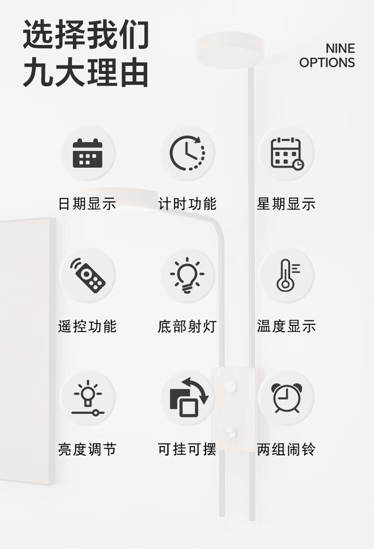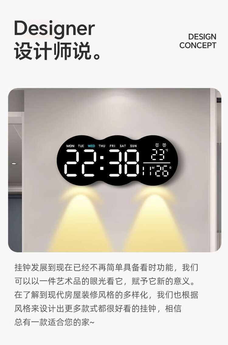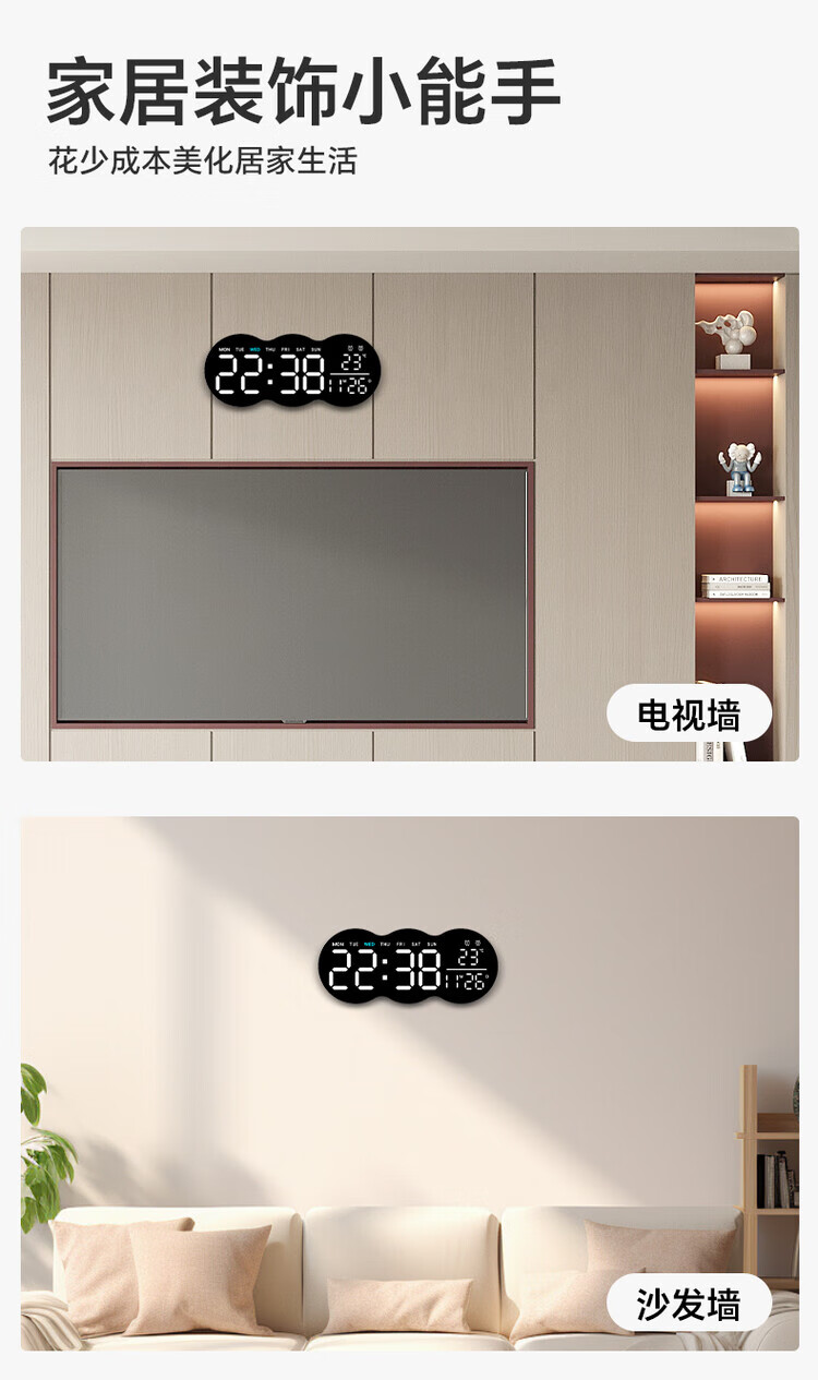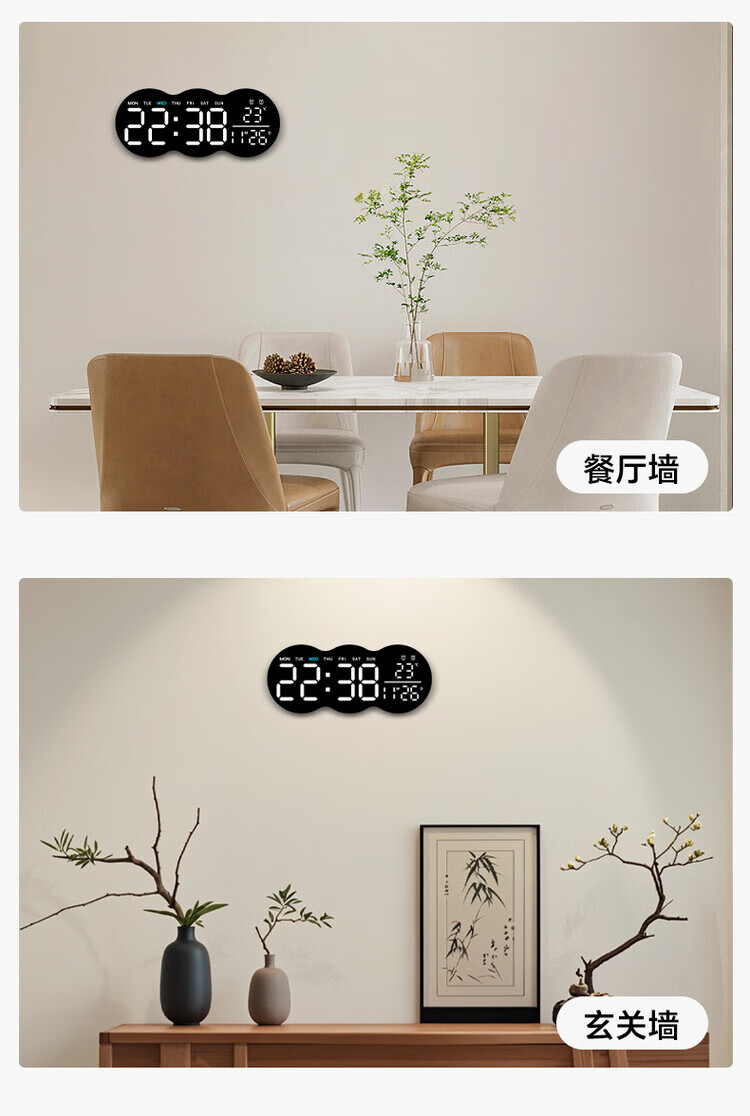 Allied wall clock living room 2025 new home high-end creative Internet celebrity silent bedroom clock hanging on the wall without punching nails (white atmosphere light-Yunduo) plug-in model can be hung and placed without punching