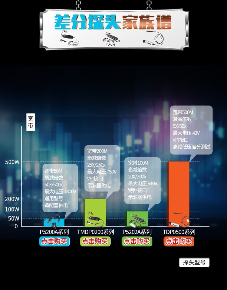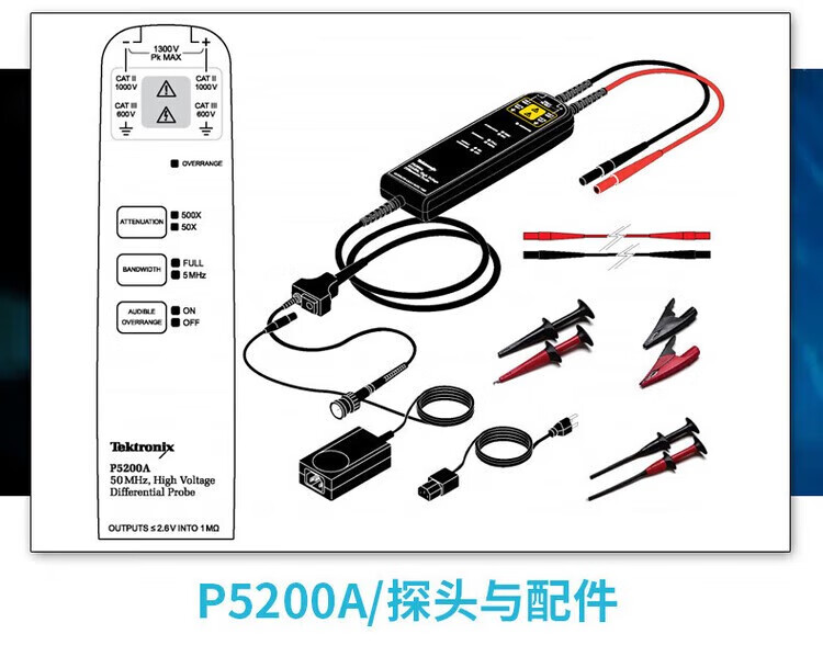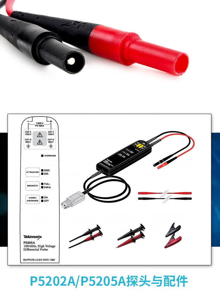 TEKTRONIX Tektronix probe P5205A P5202A P5210A oscilloscope high voltage differential probe BNC P5205A (50/500X 100MHz)