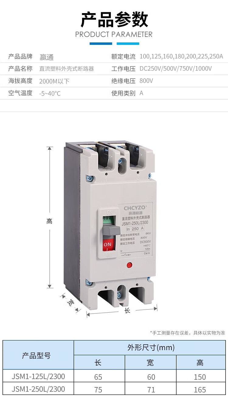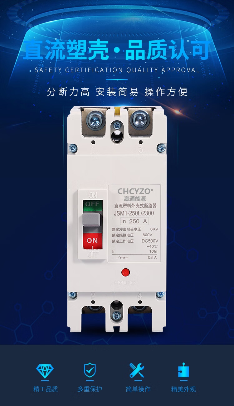 DC air switch 2P125A200A250A UPS plastic case air switch DC500V photovoltaic 500A 3P