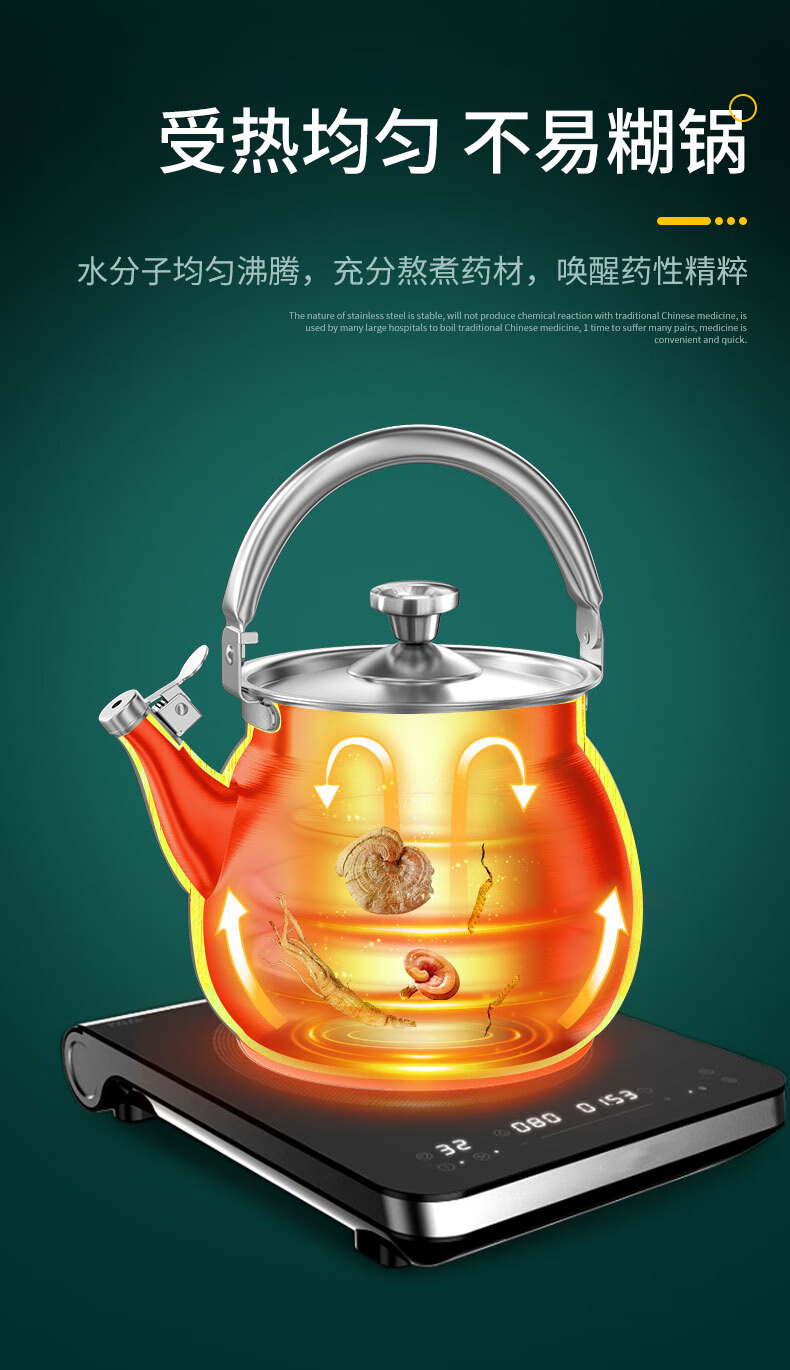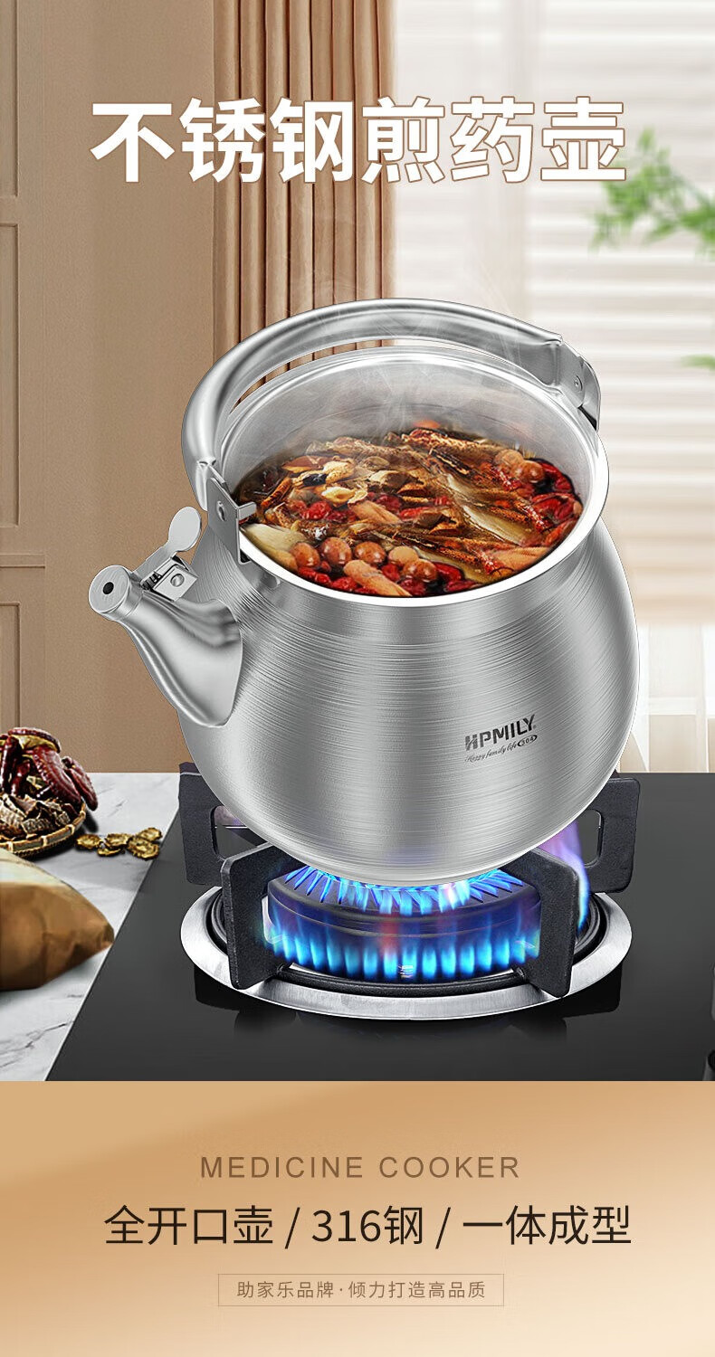 Zhujiale stainless steel Chinese medicine frying pan household Chinese medicine jar boiled medicine gas gas stove special boiled Chinese medicine special pot decoction medicine pot decoction pot upgraded 316 steel liner 5.5L