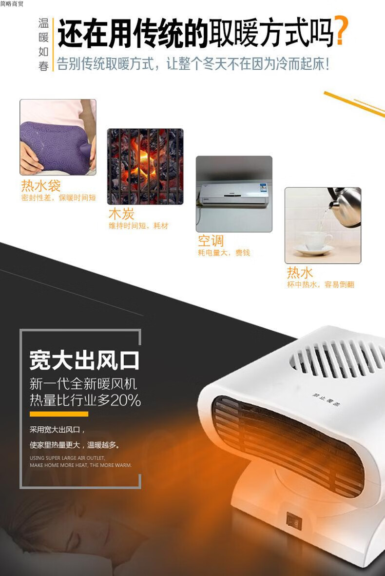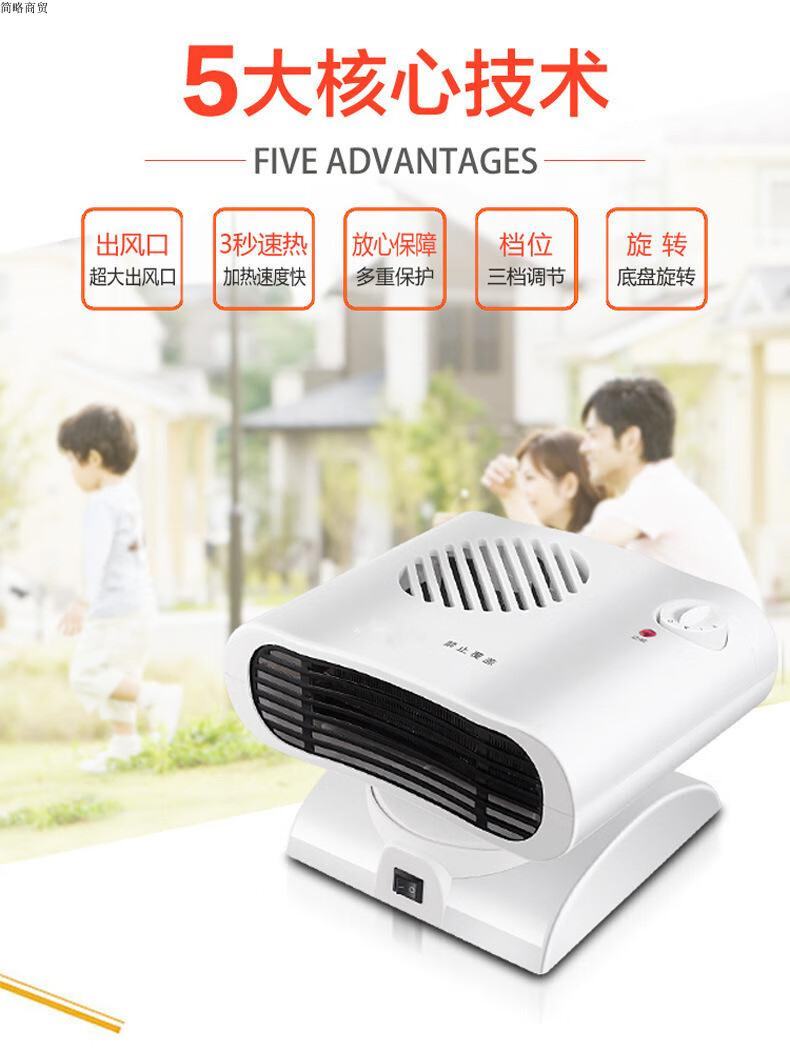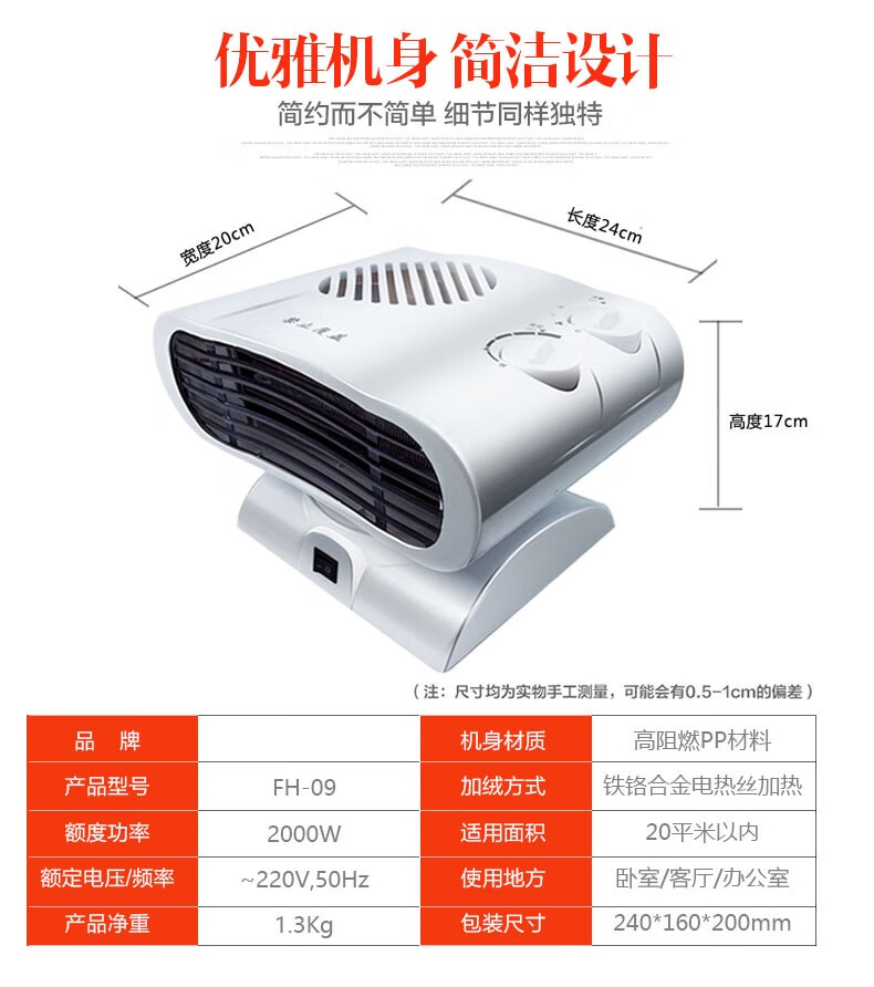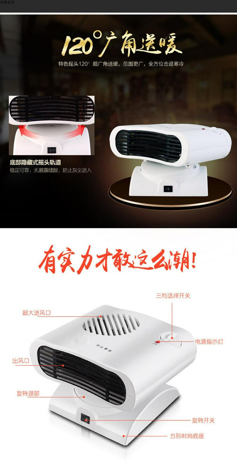 Oshipu heater household mini heater shaking head electric heater heating and cooling dual-use small air conditioning dormitory electric heater white shaking head without temperature control metal air outlet 0mm*0 column