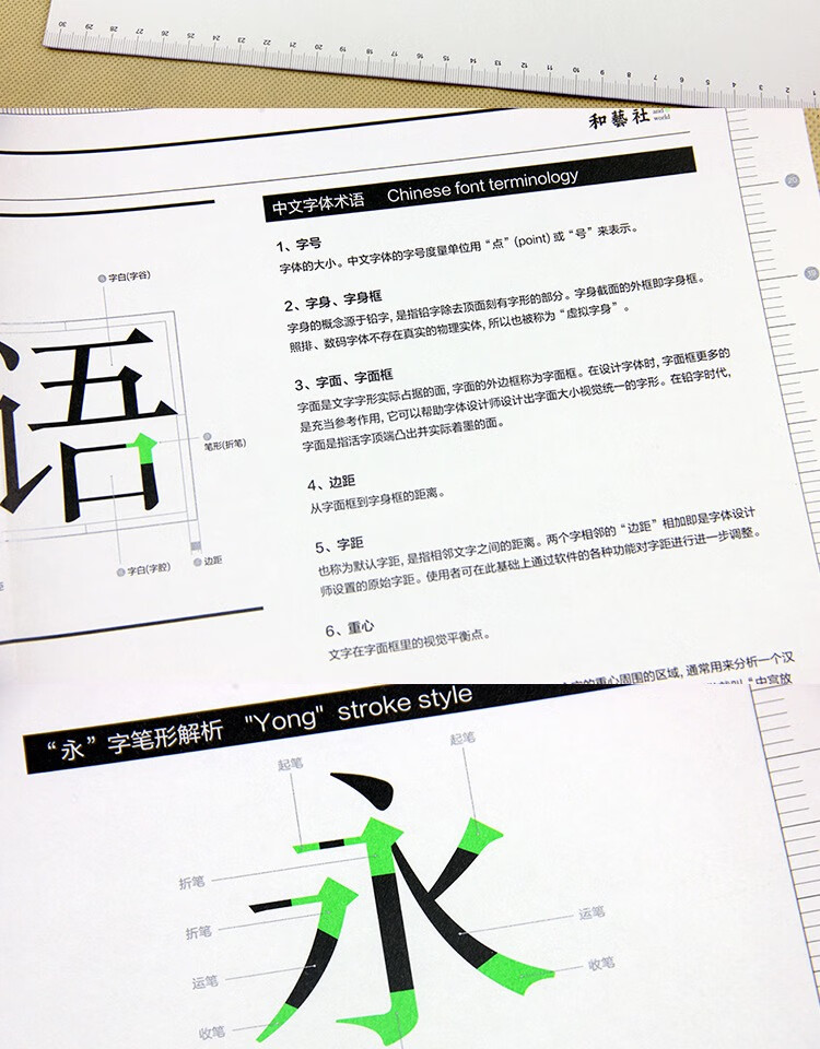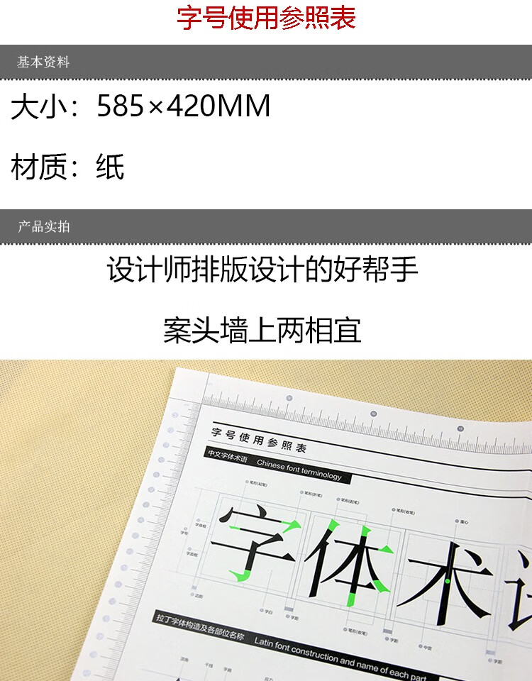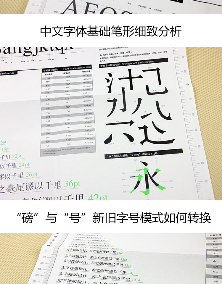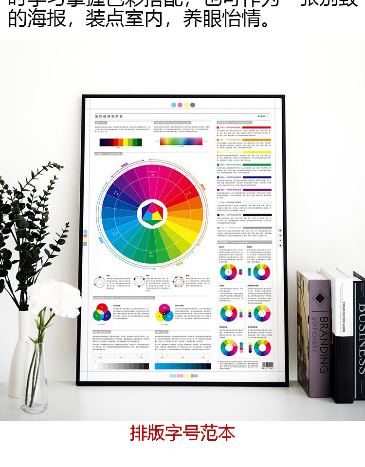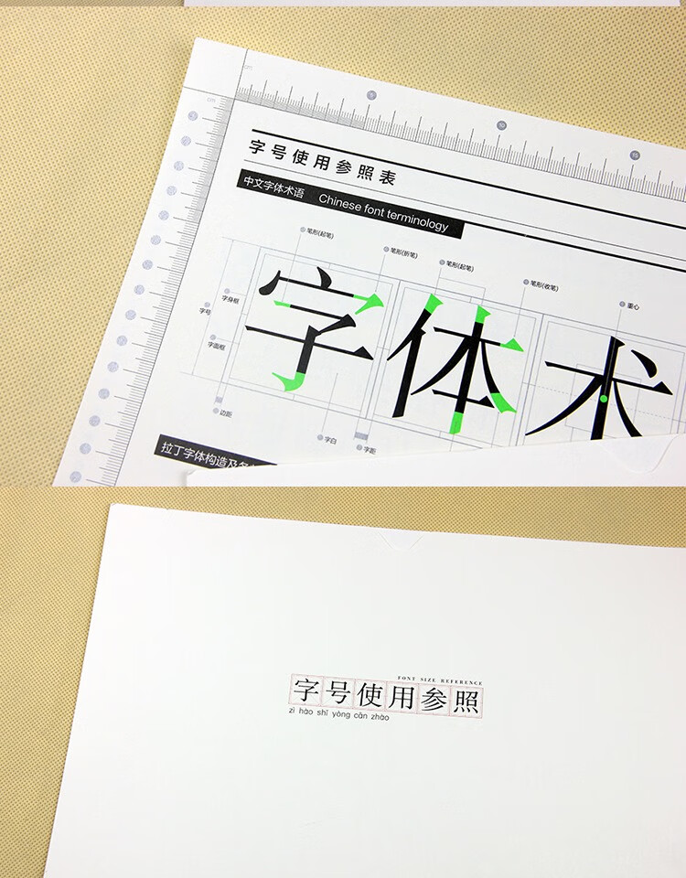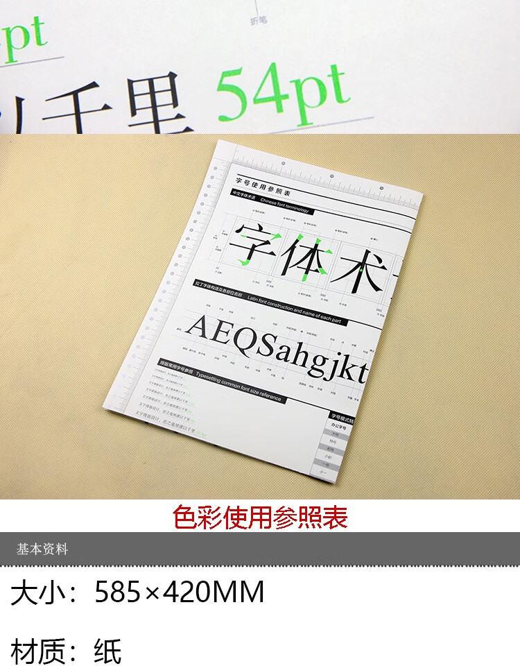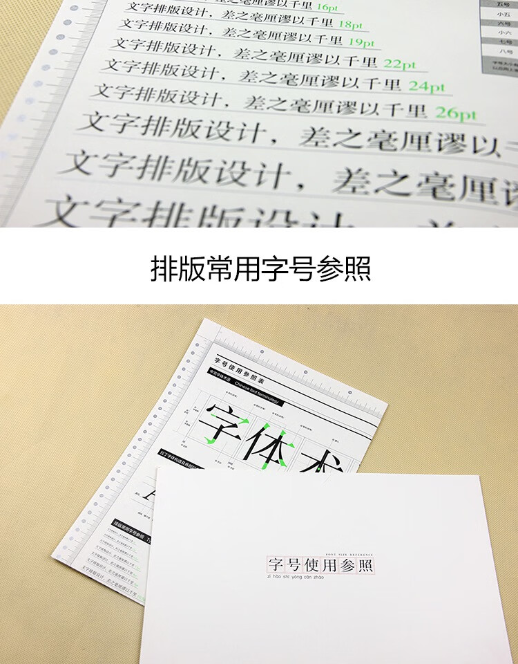 Typesetting font size template, design measurement tool, font size usage reference table, color usage reference table, four copies, default