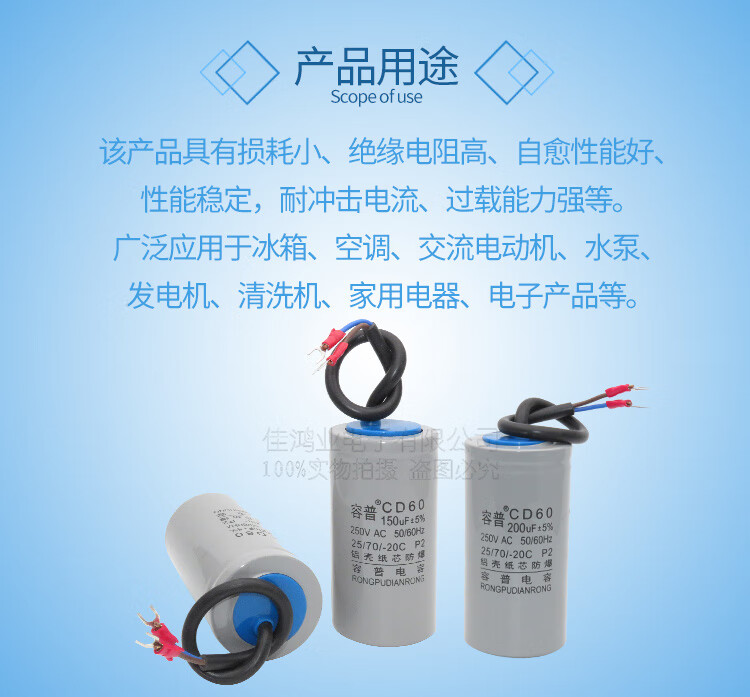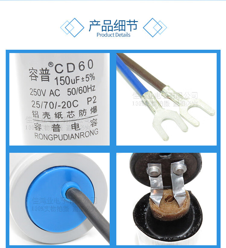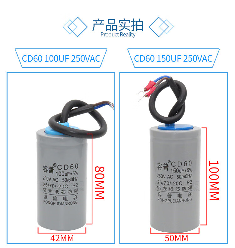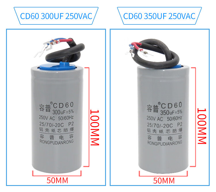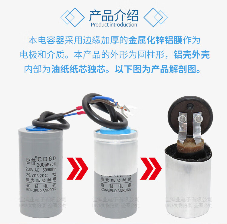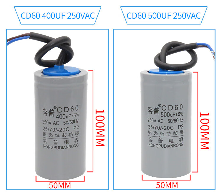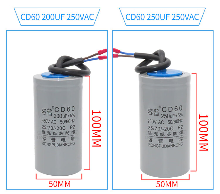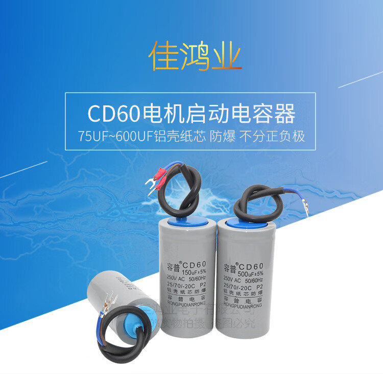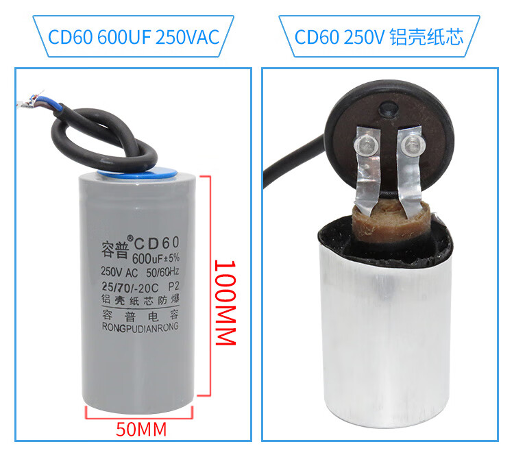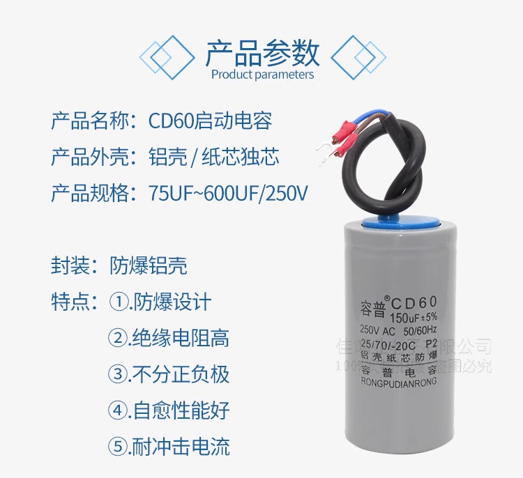 CD60 motor starting capacitor 150/200/300/400/500/600UF 250V aluminum shell paper core 75UF 250V aluminum shell paper core