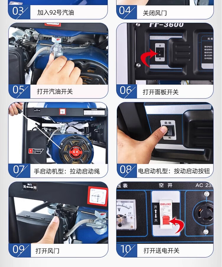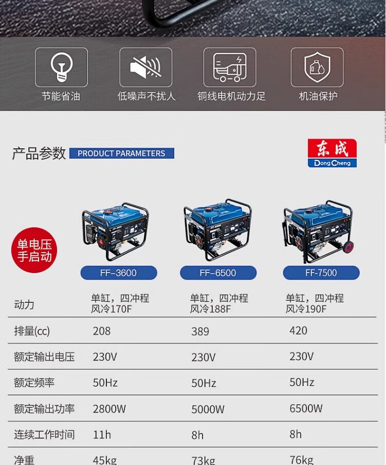 Dongcheng gasoline generator household small Dongcheng generator single-phase power 3/5/8kw outdoor emergency FF-3600 220V 2.8KW